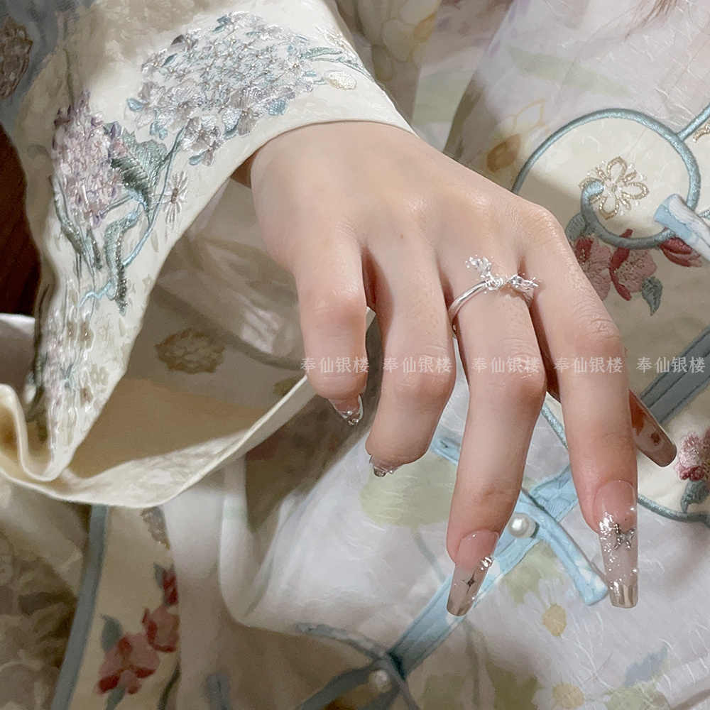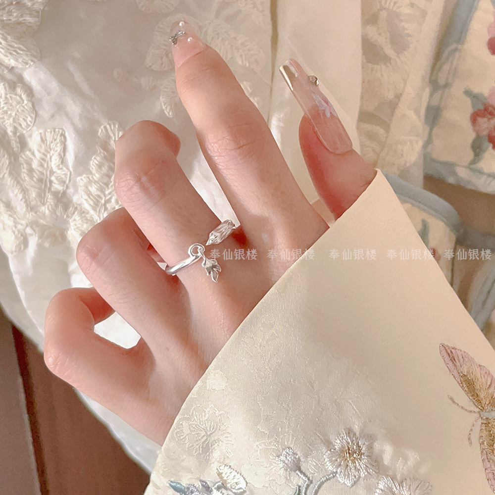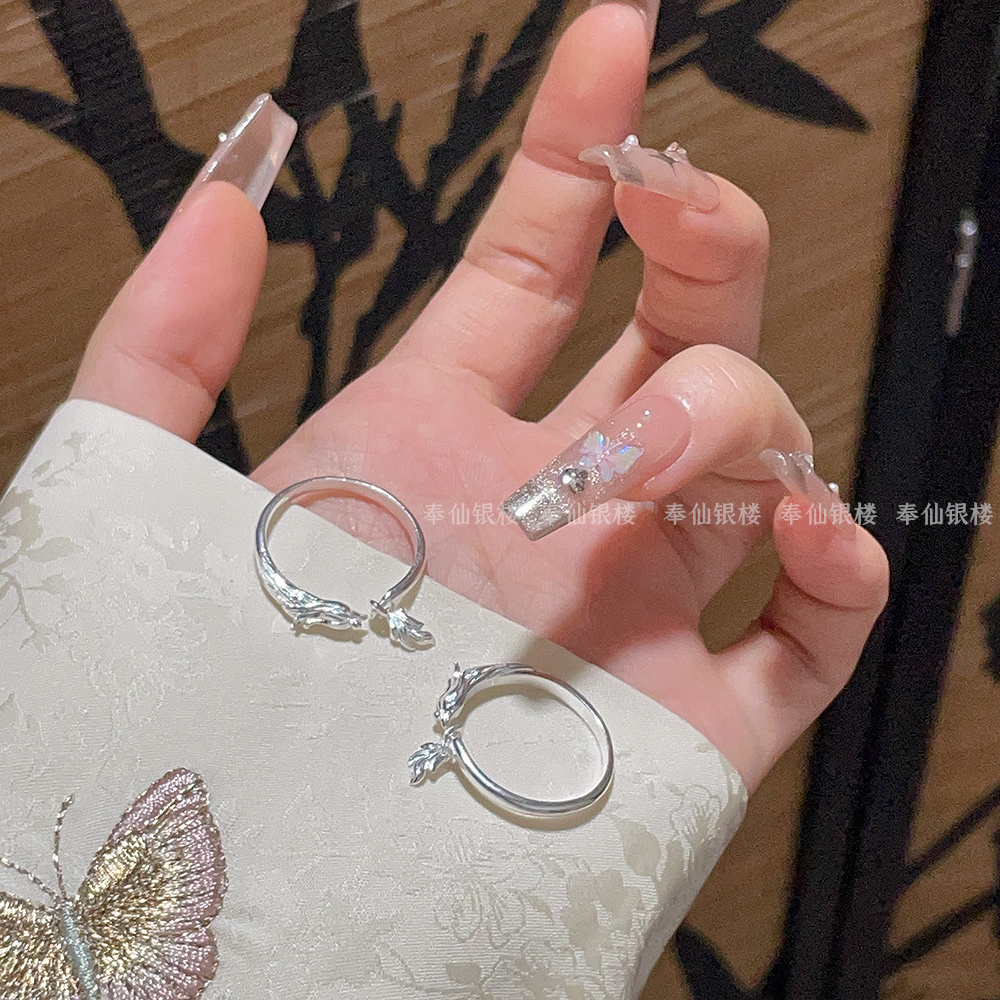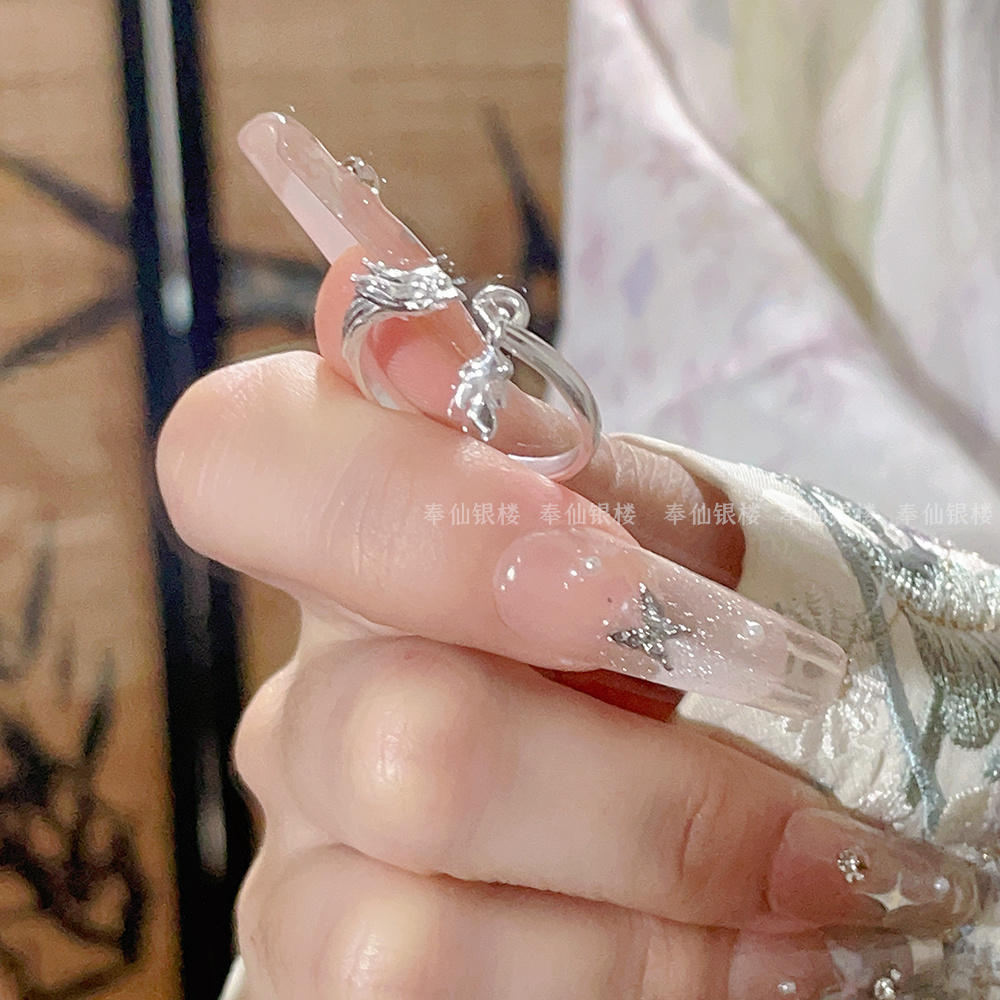 999.9 Pure Silver Phoenix Ring Women's New Chinese Style Open Ring Adjustable