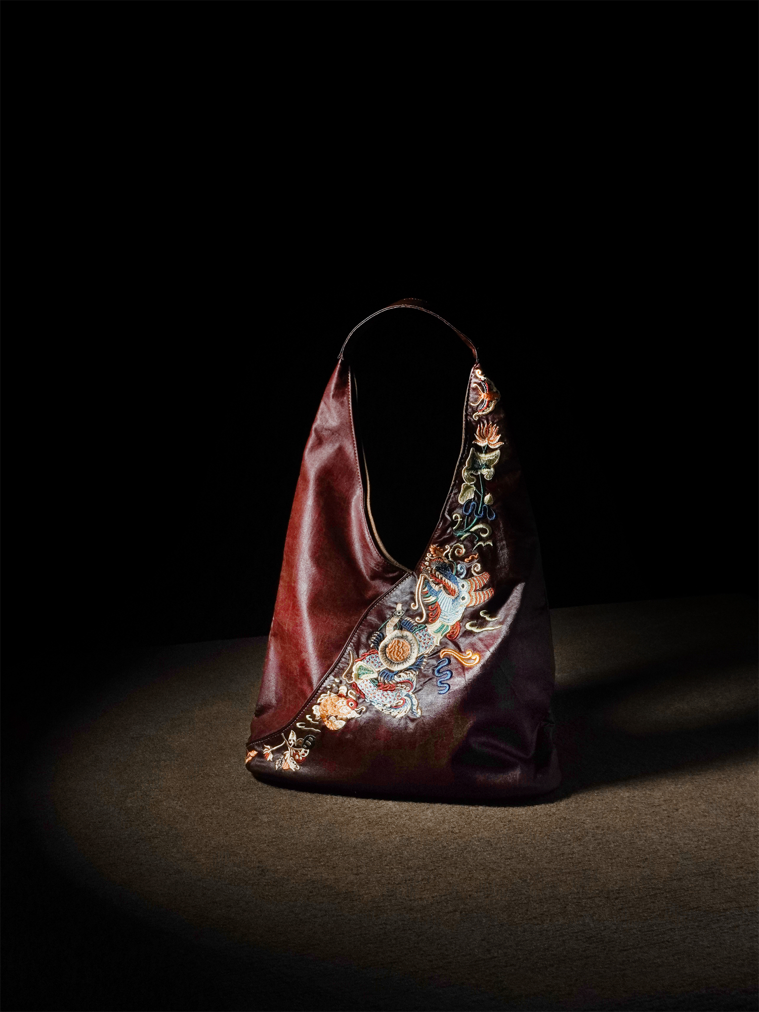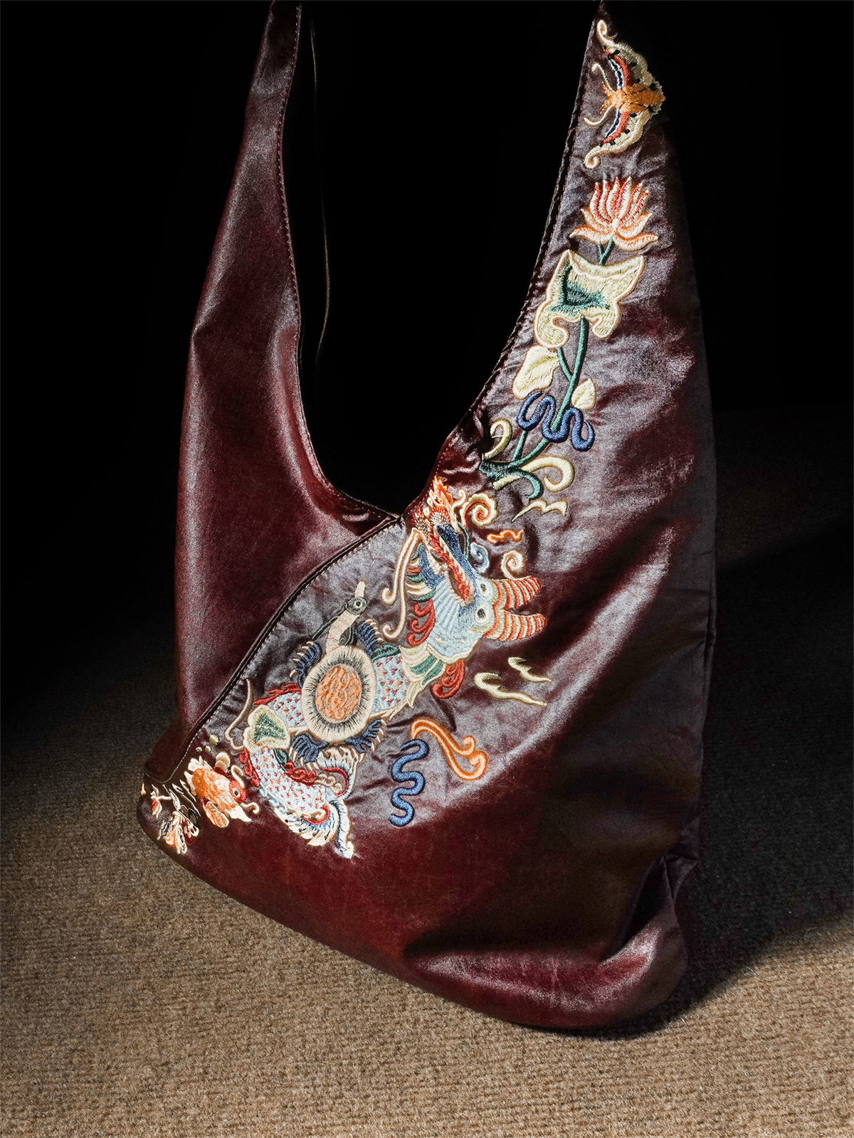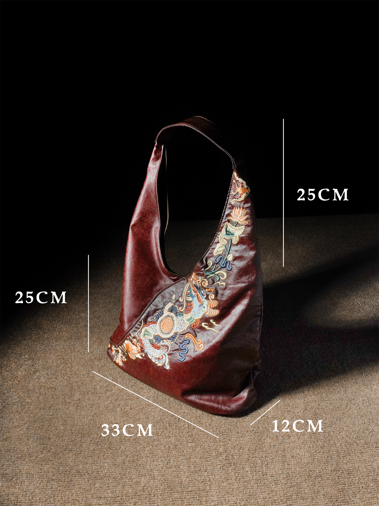 Chinese red gauze underarm bag, large-capacity embroidered soft women's bag