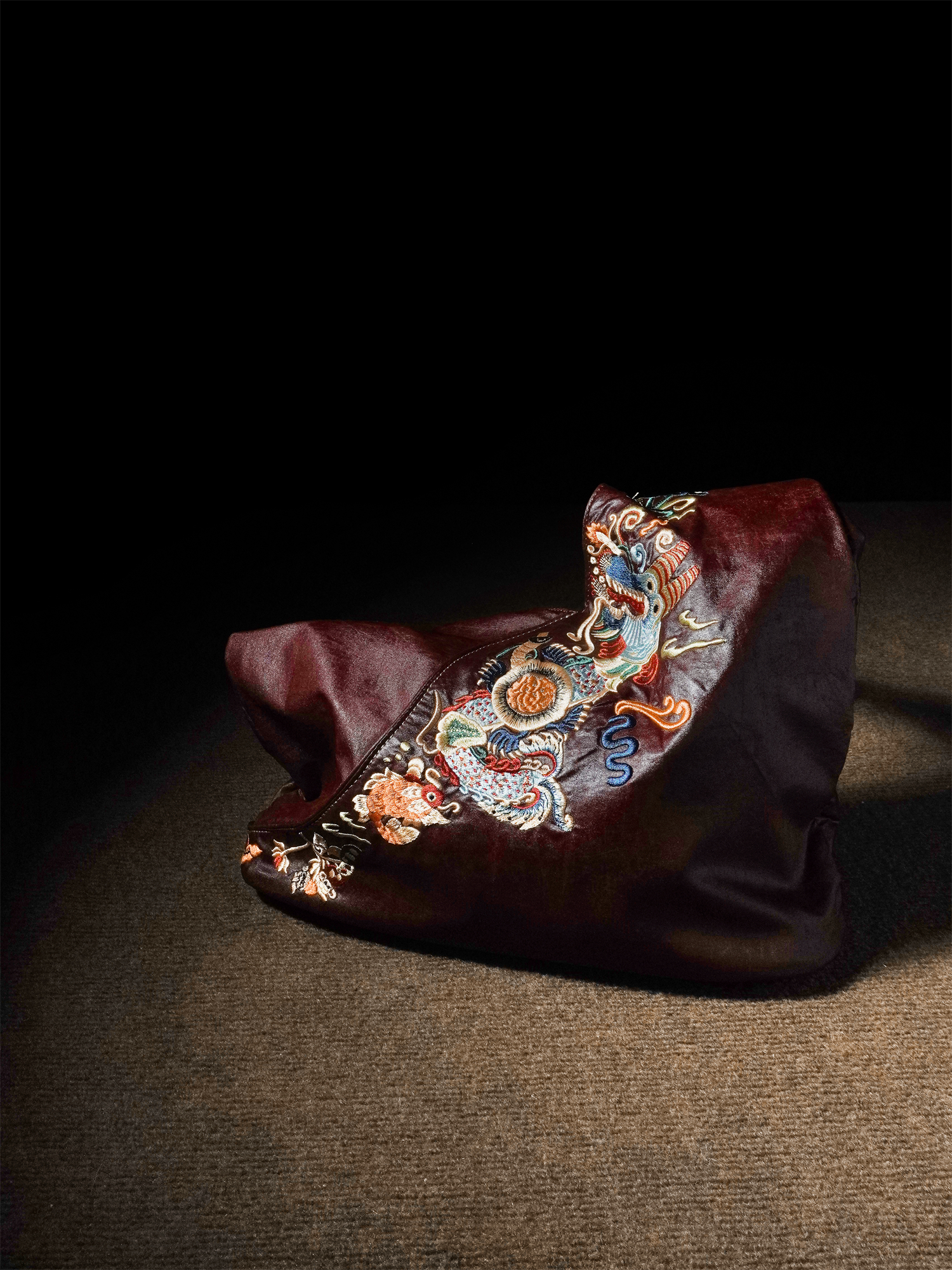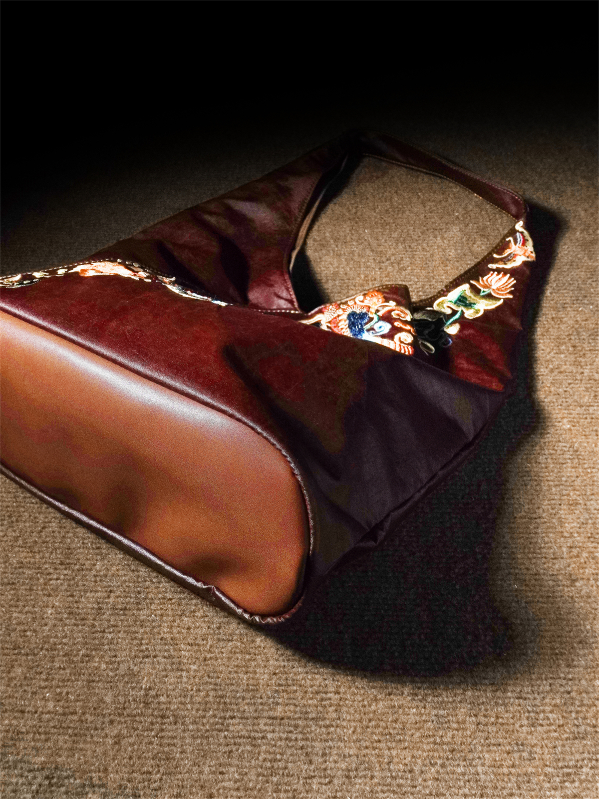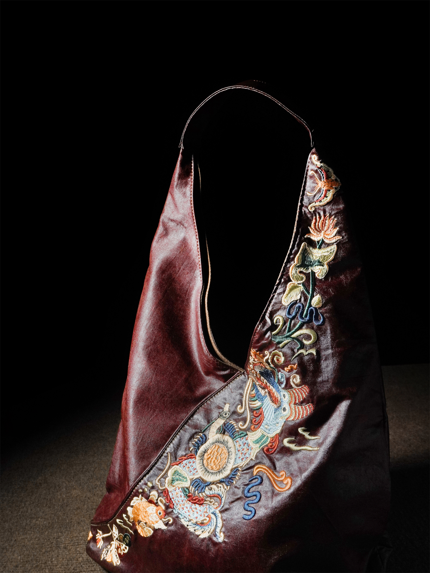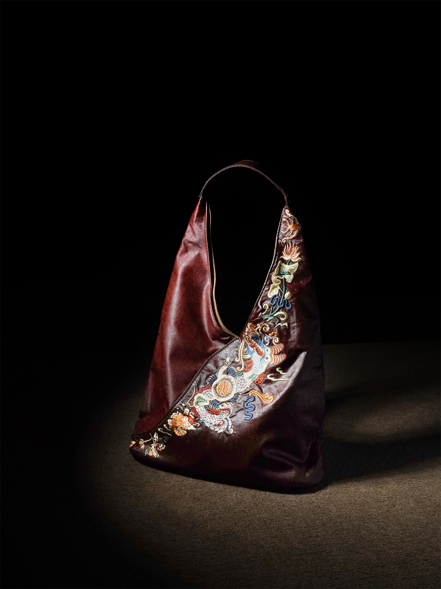 Chinese red gauze underarm bag, large-capacity embroidered soft women's bag