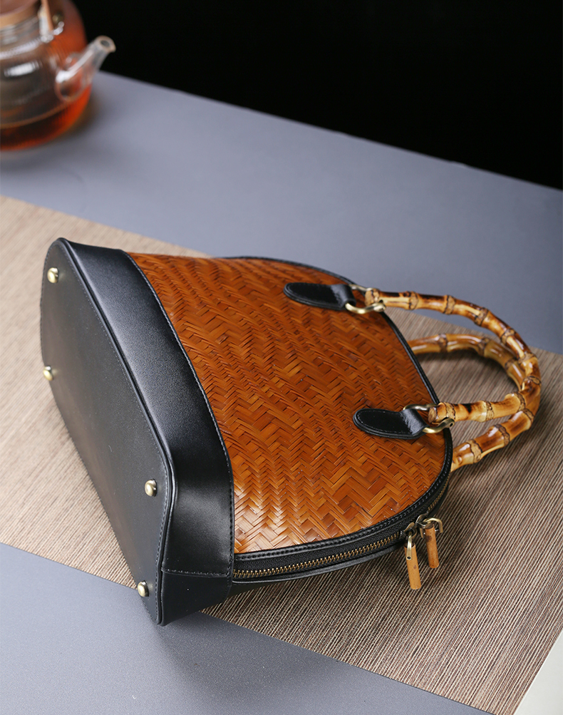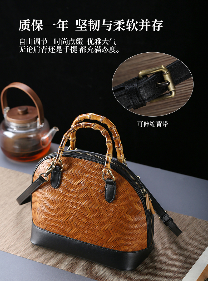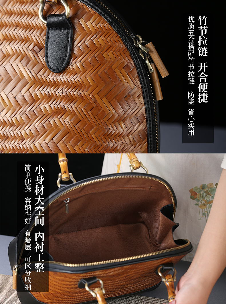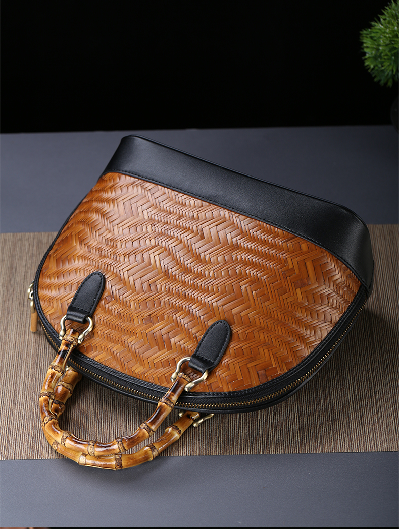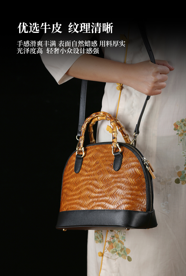 Handmade bamboo woven bags, cowhide messenger bags, handbags, artistic woven women's bags