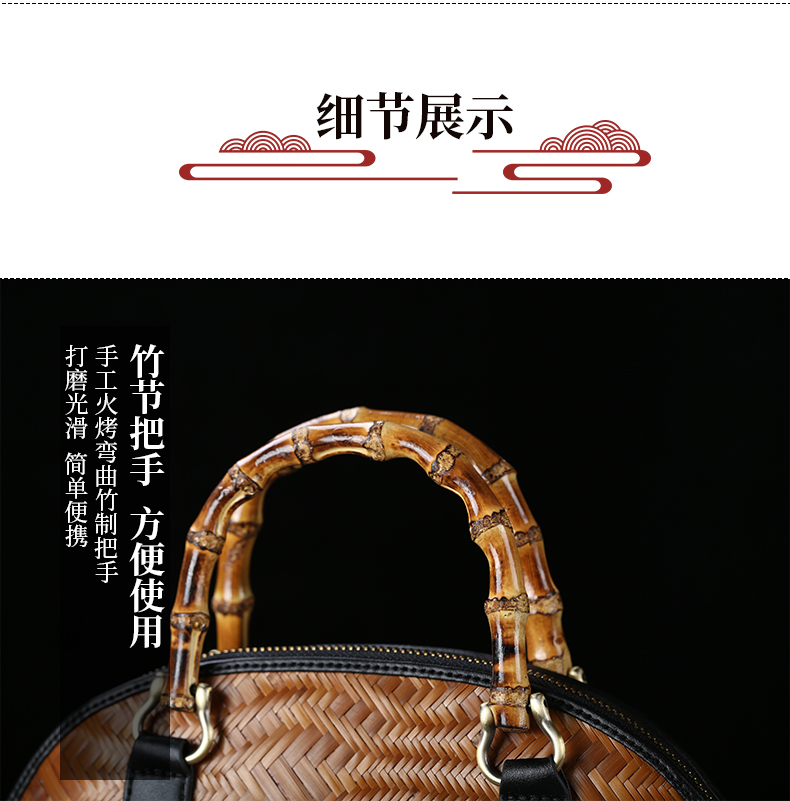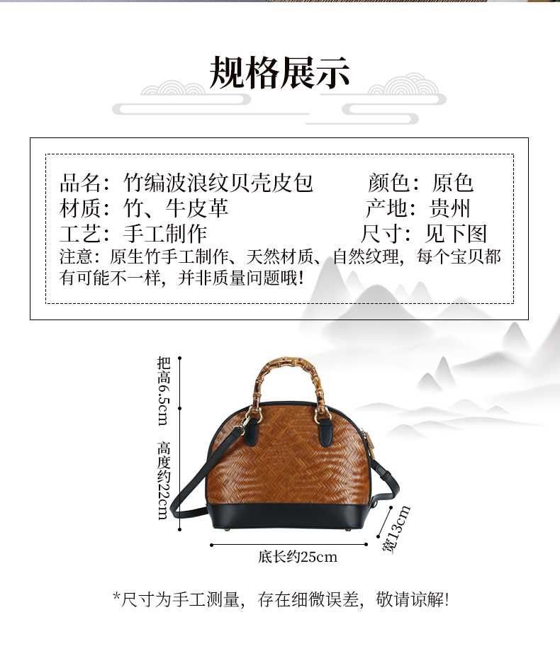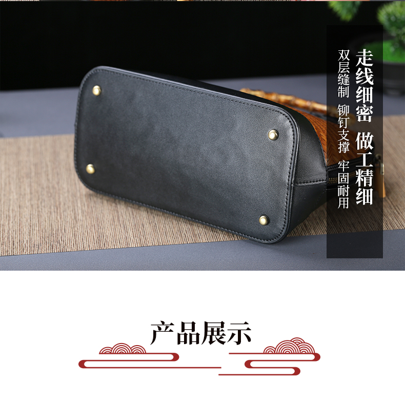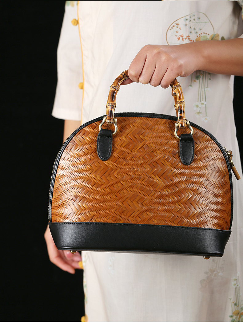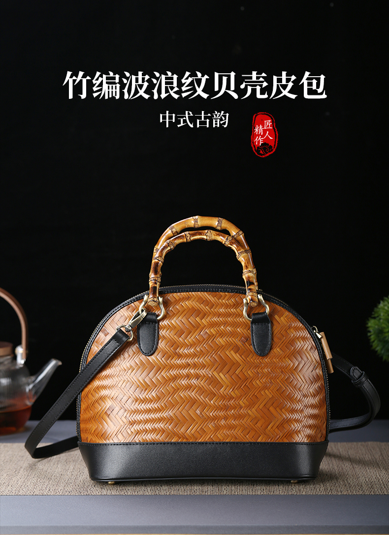 Handmade bamboo woven bags, cowhide messenger bags, handbags, artistic woven women's bags