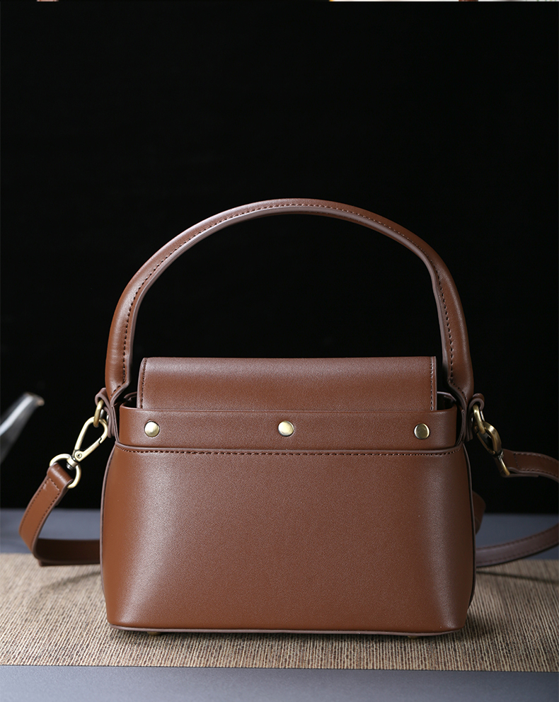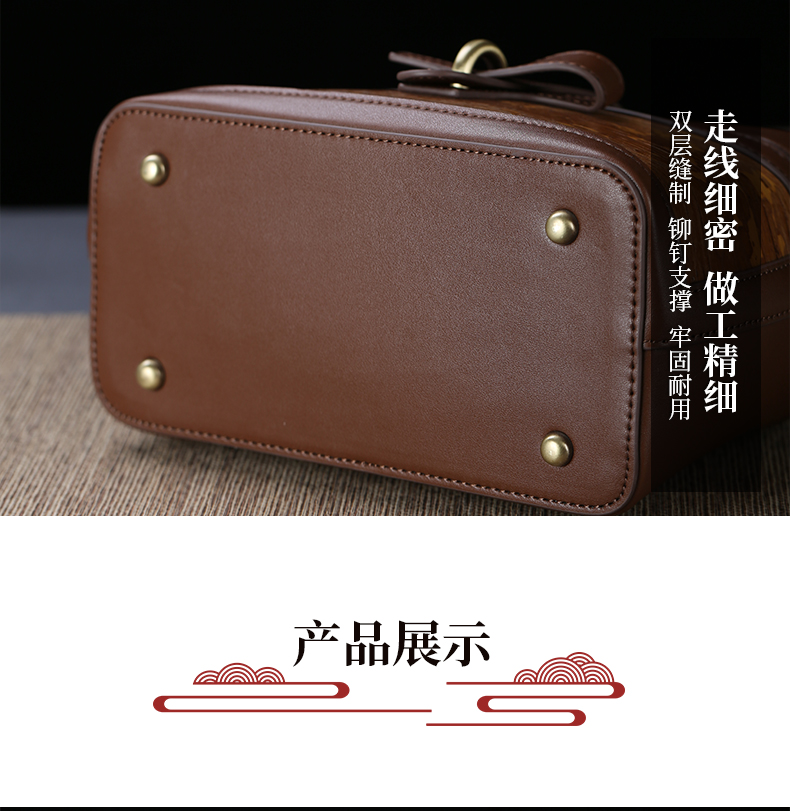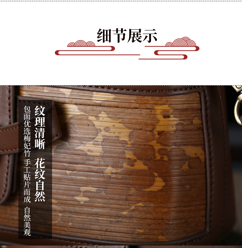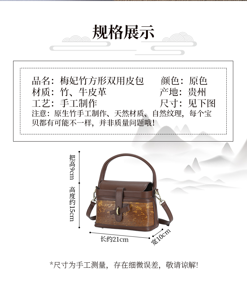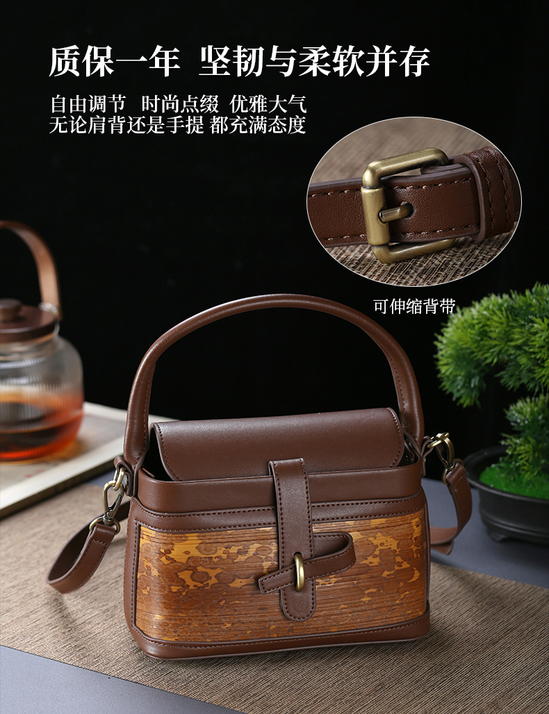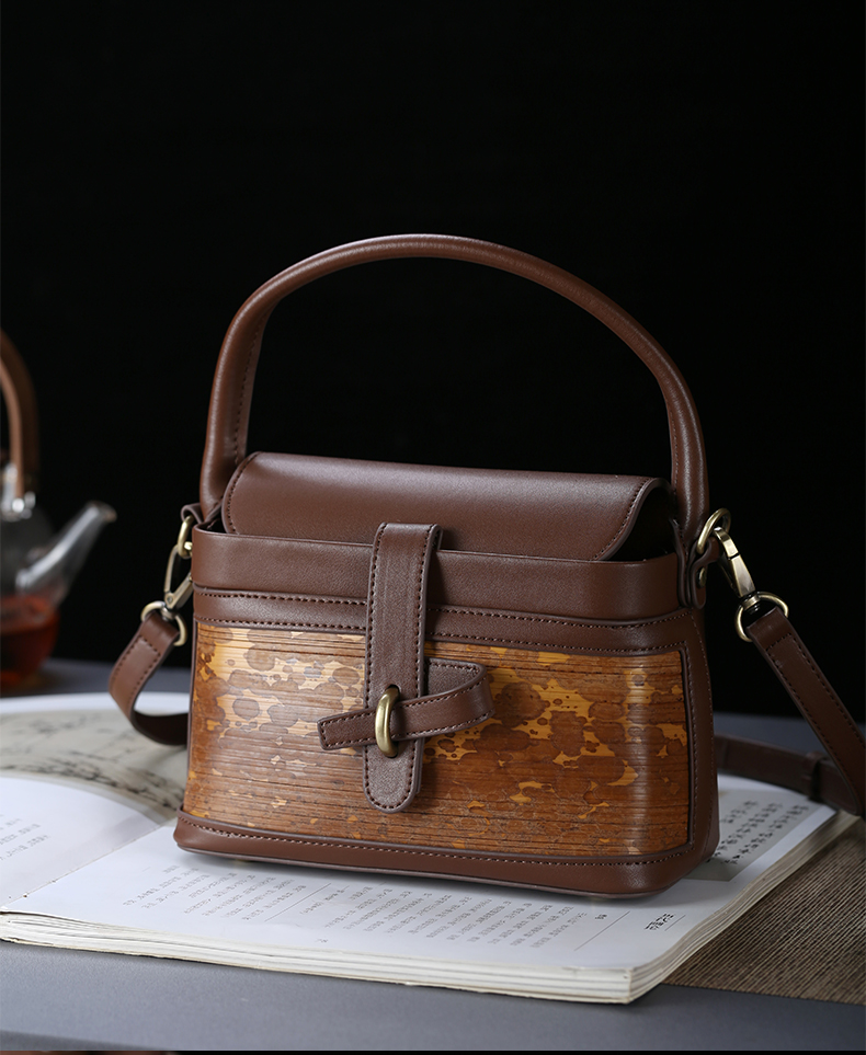 Handmade Meifei bamboo square cowhide, single-handle, crossbody bamboo bag