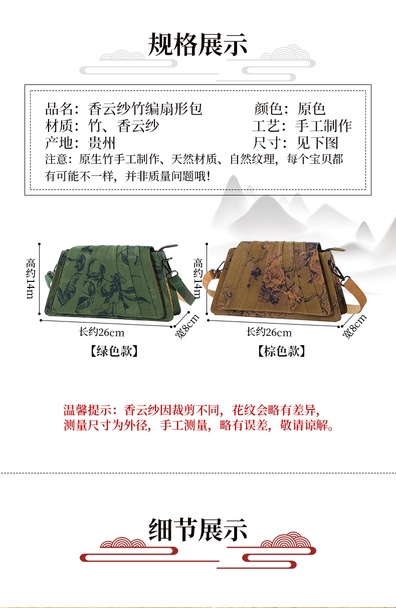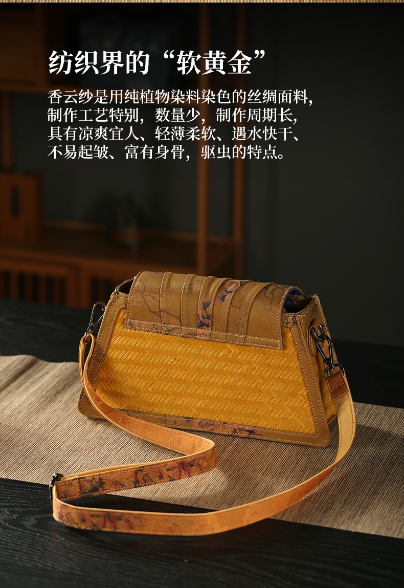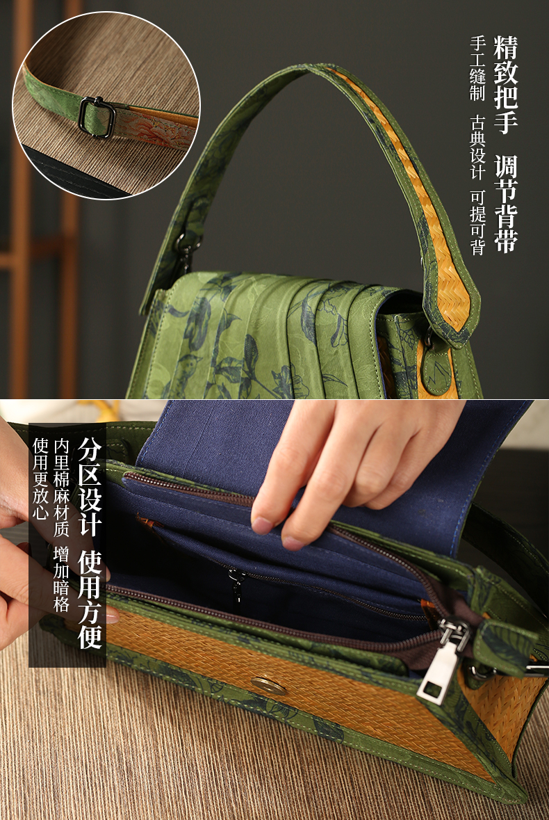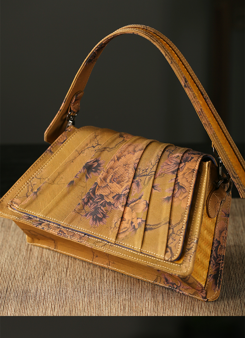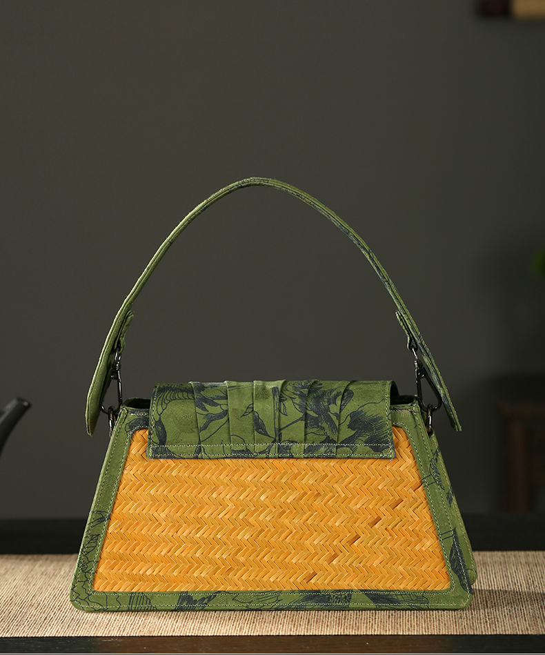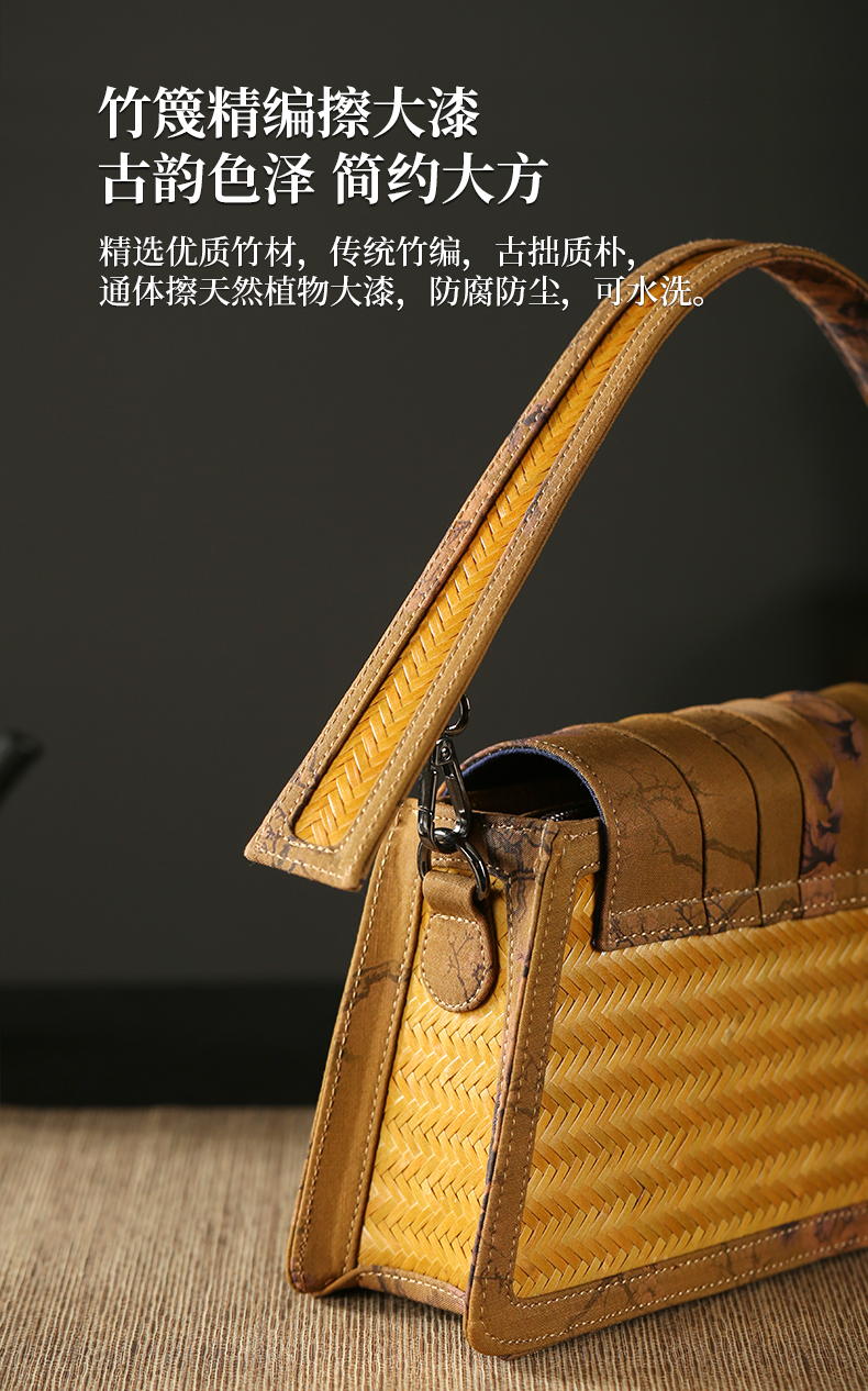 Handmade Xiangyunsha bamboo woven bag, woven women's handbag