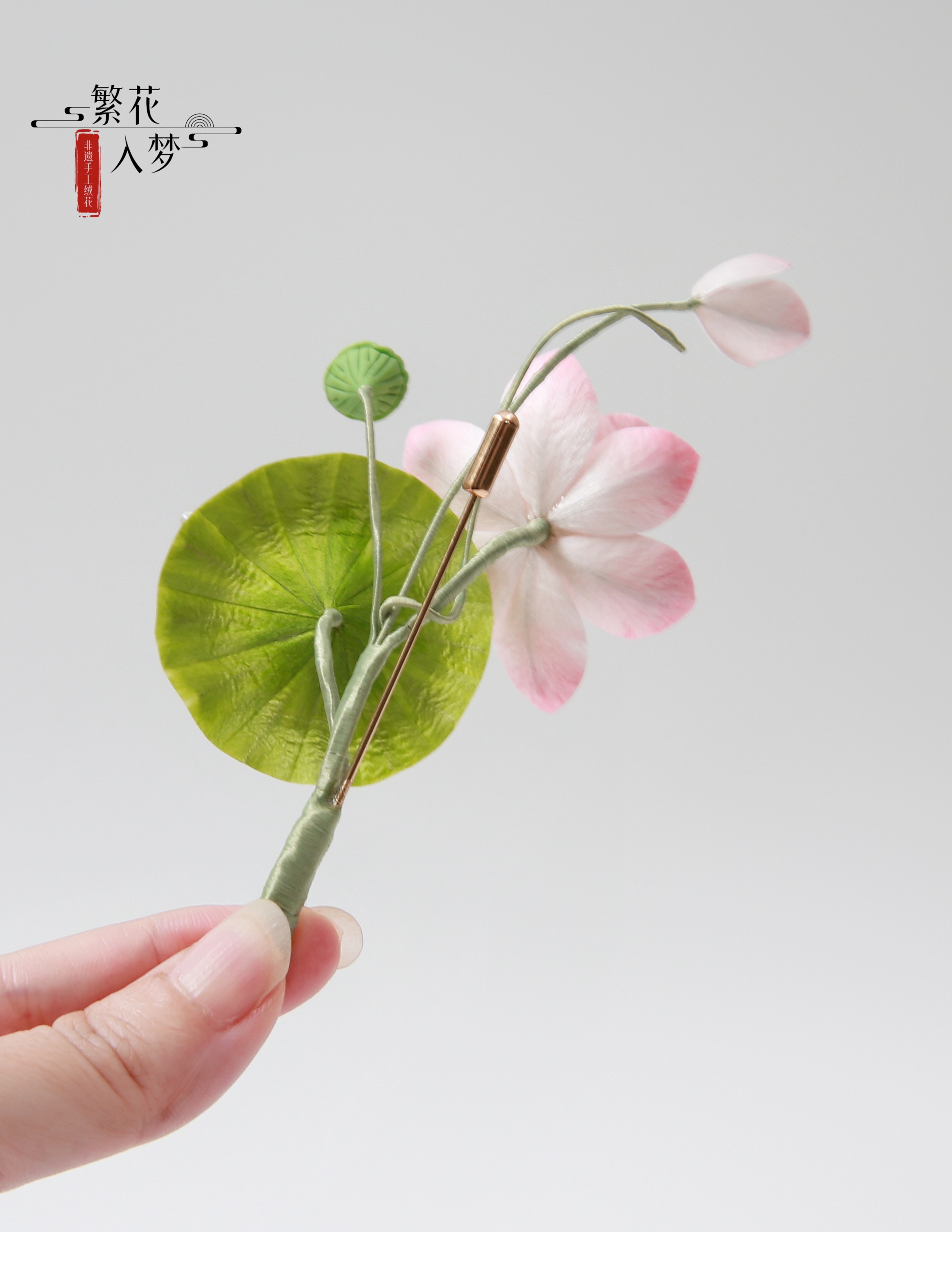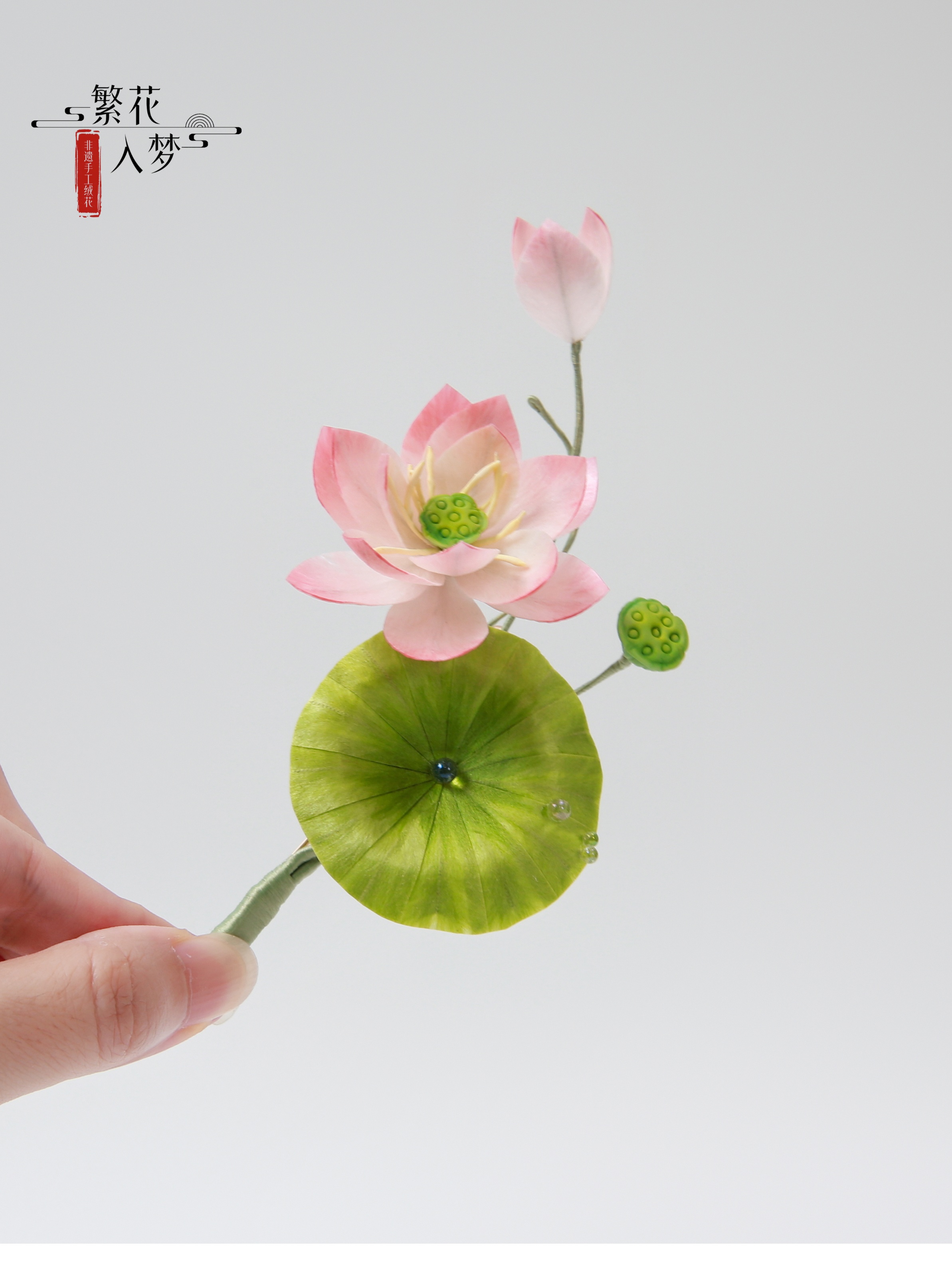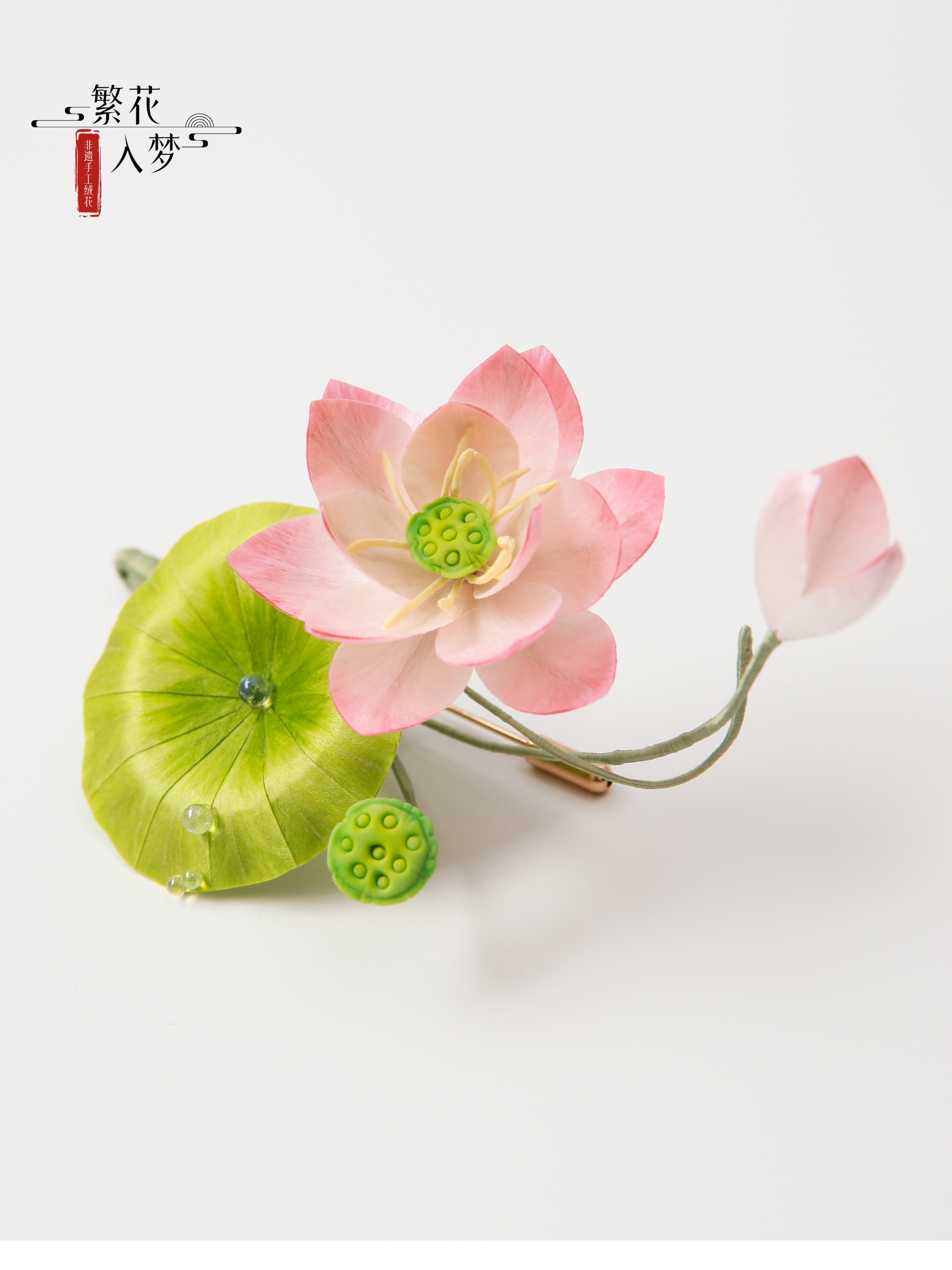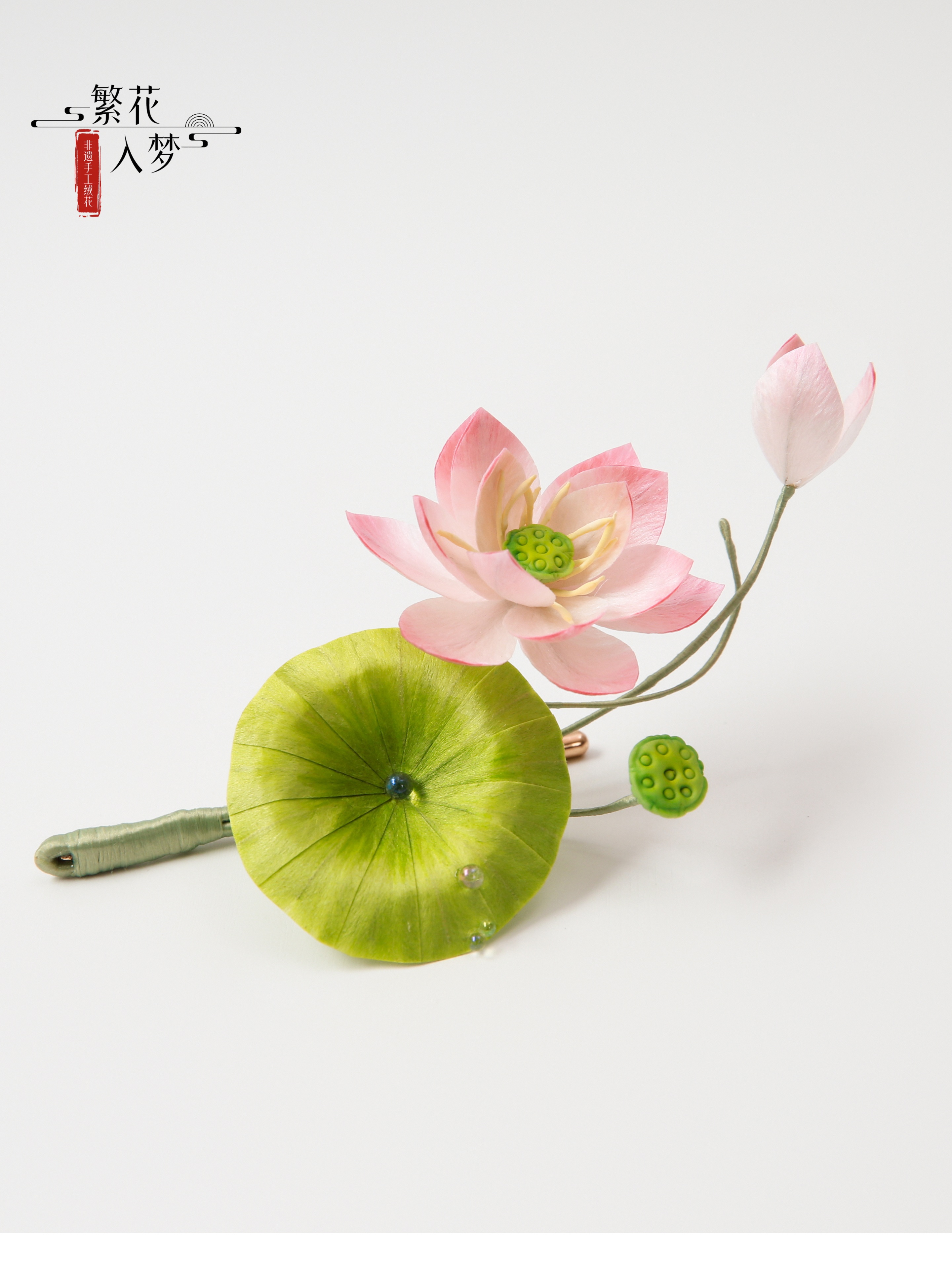 Intangible cultural heritage velvet flower, pure handmade silk lotus brooch, hairpin