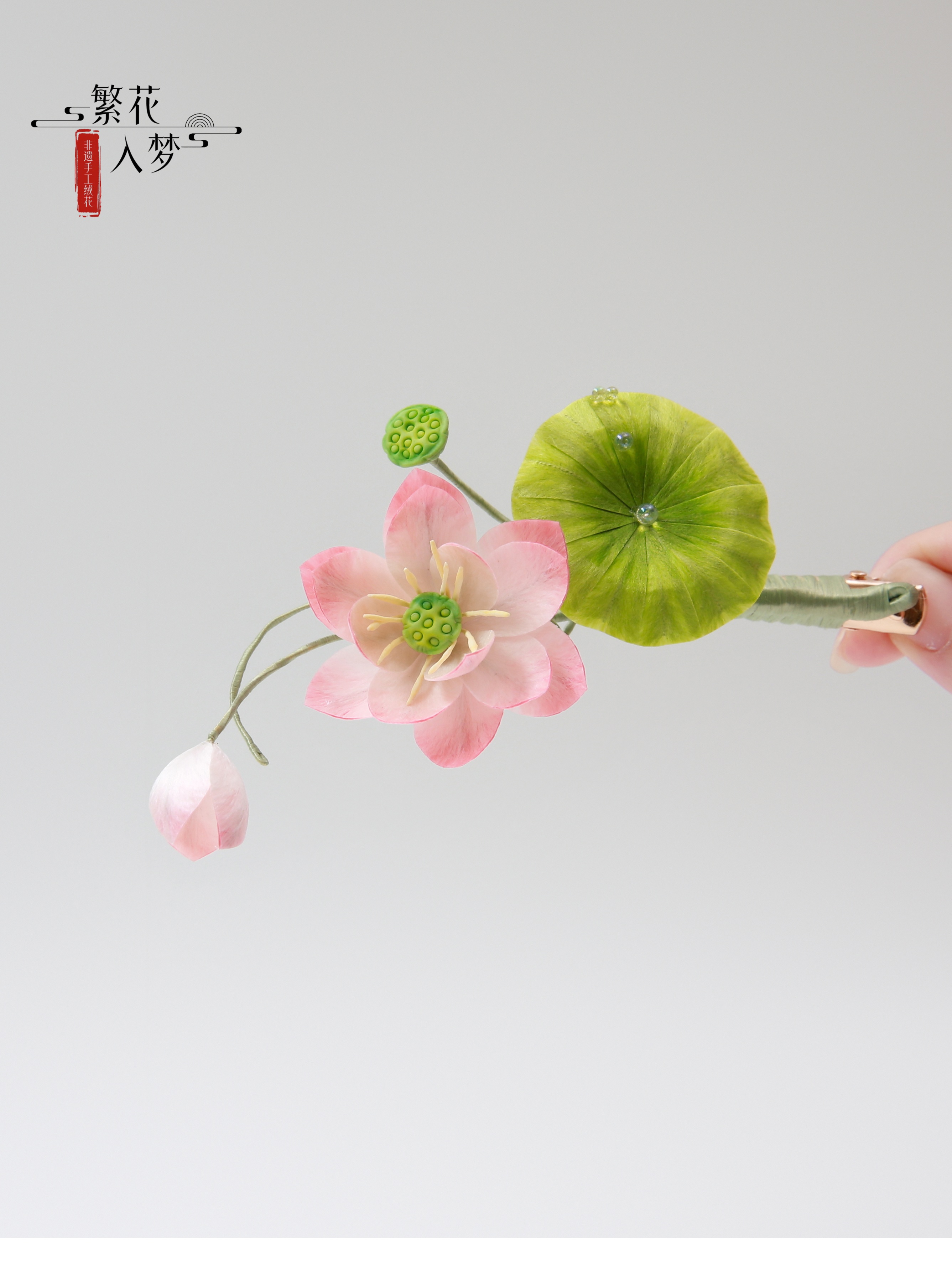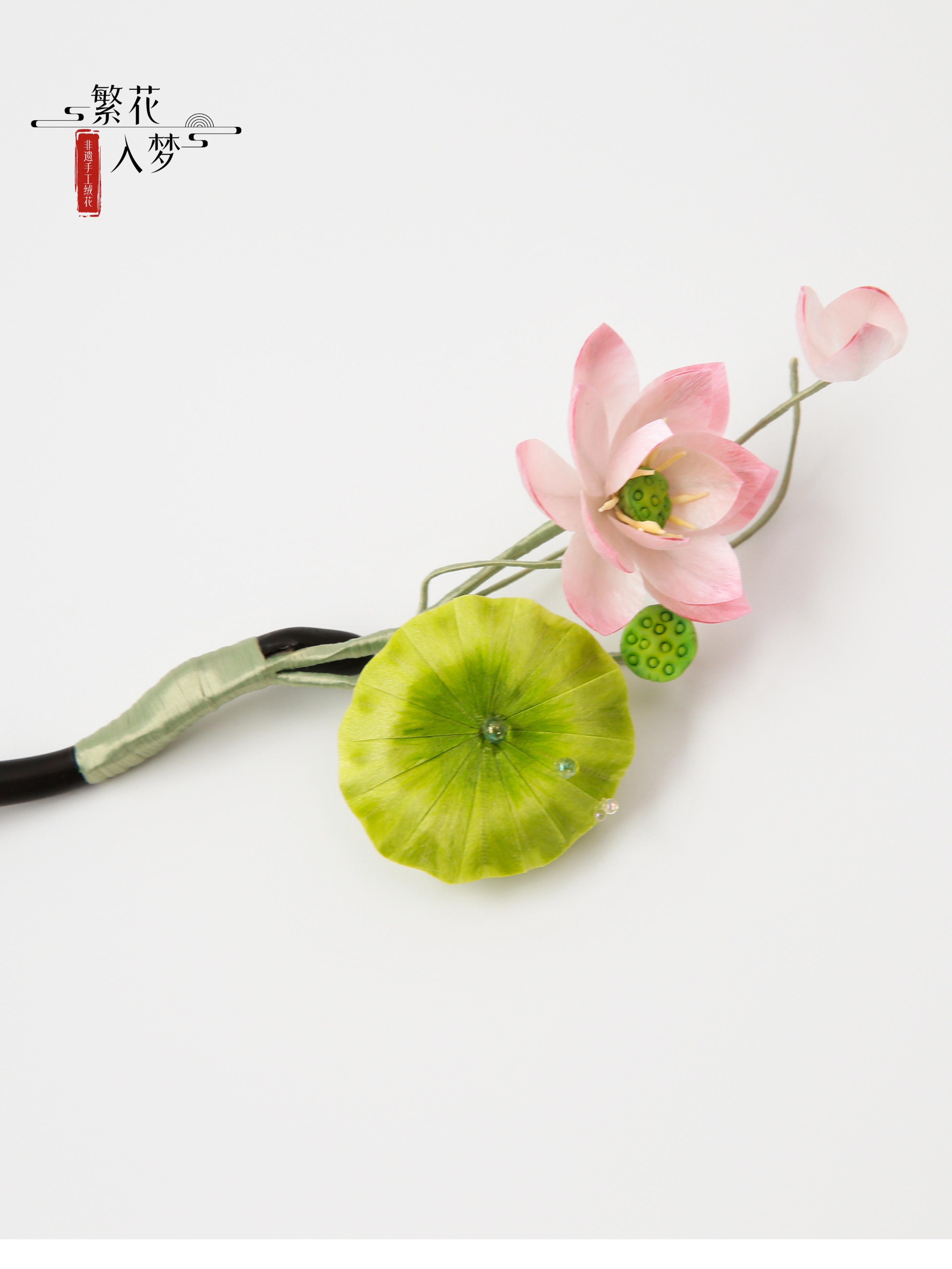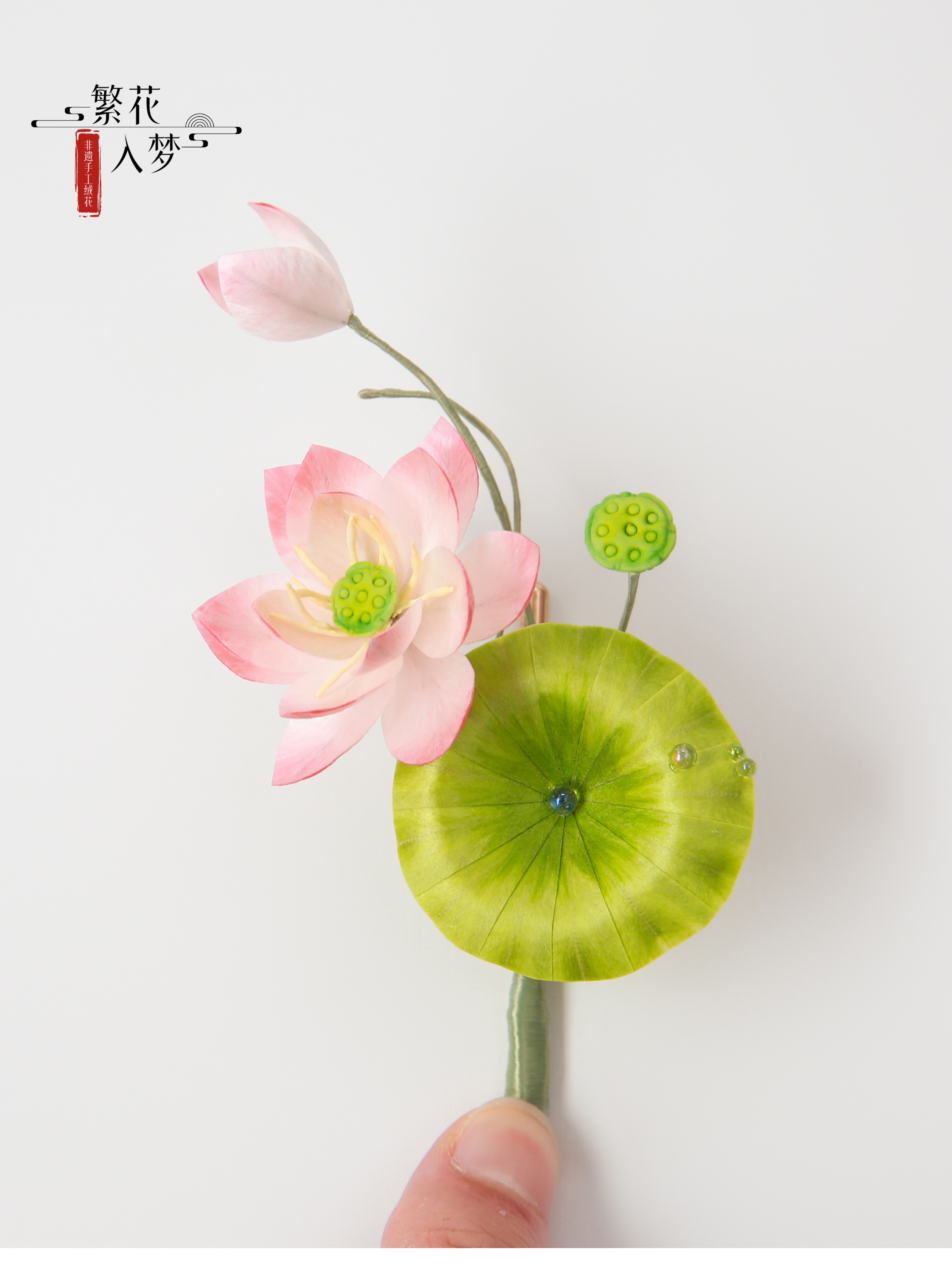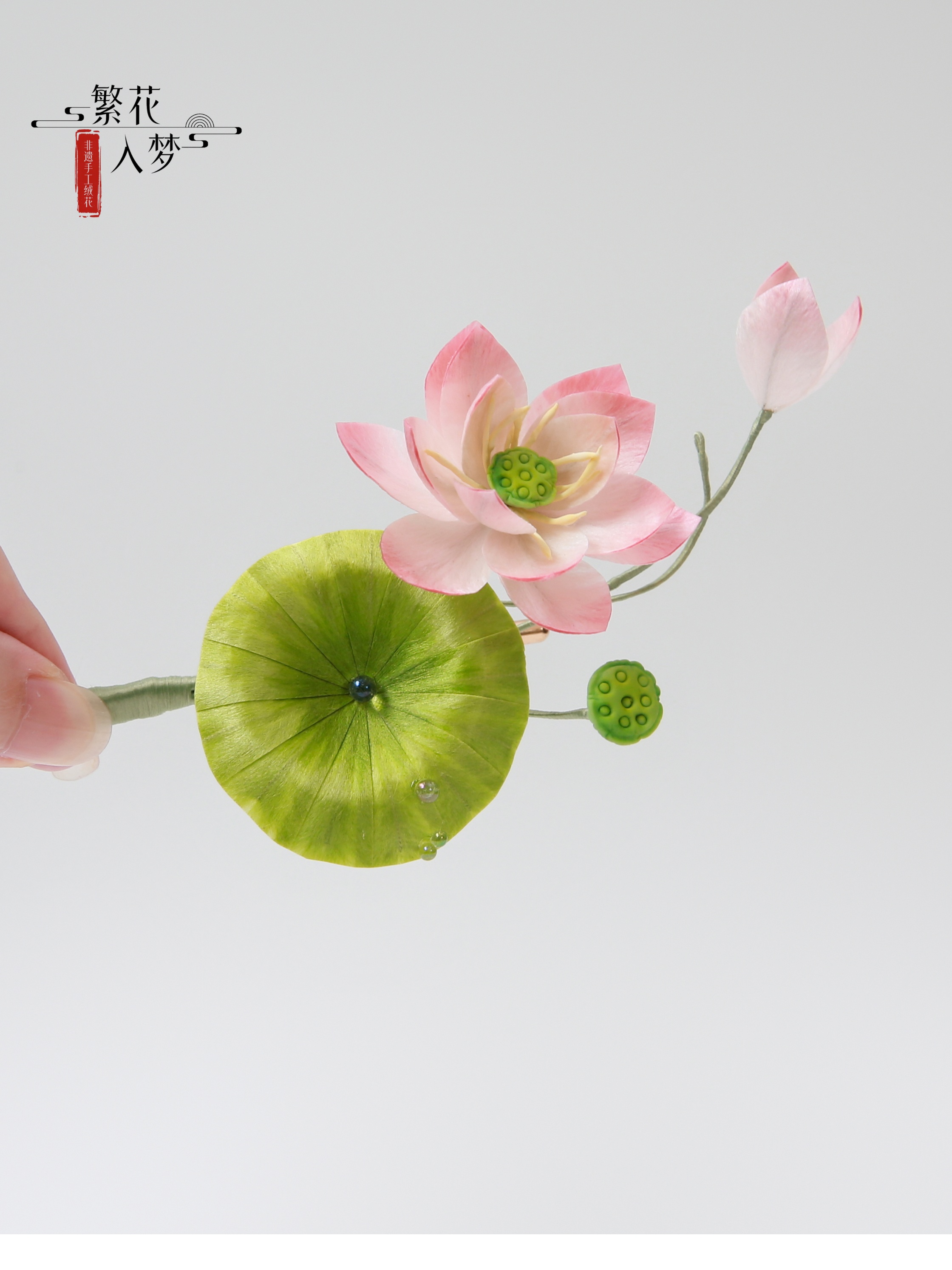 Intangible cultural heritage velvet flower, pure handmade silk lotus brooch, hairpin