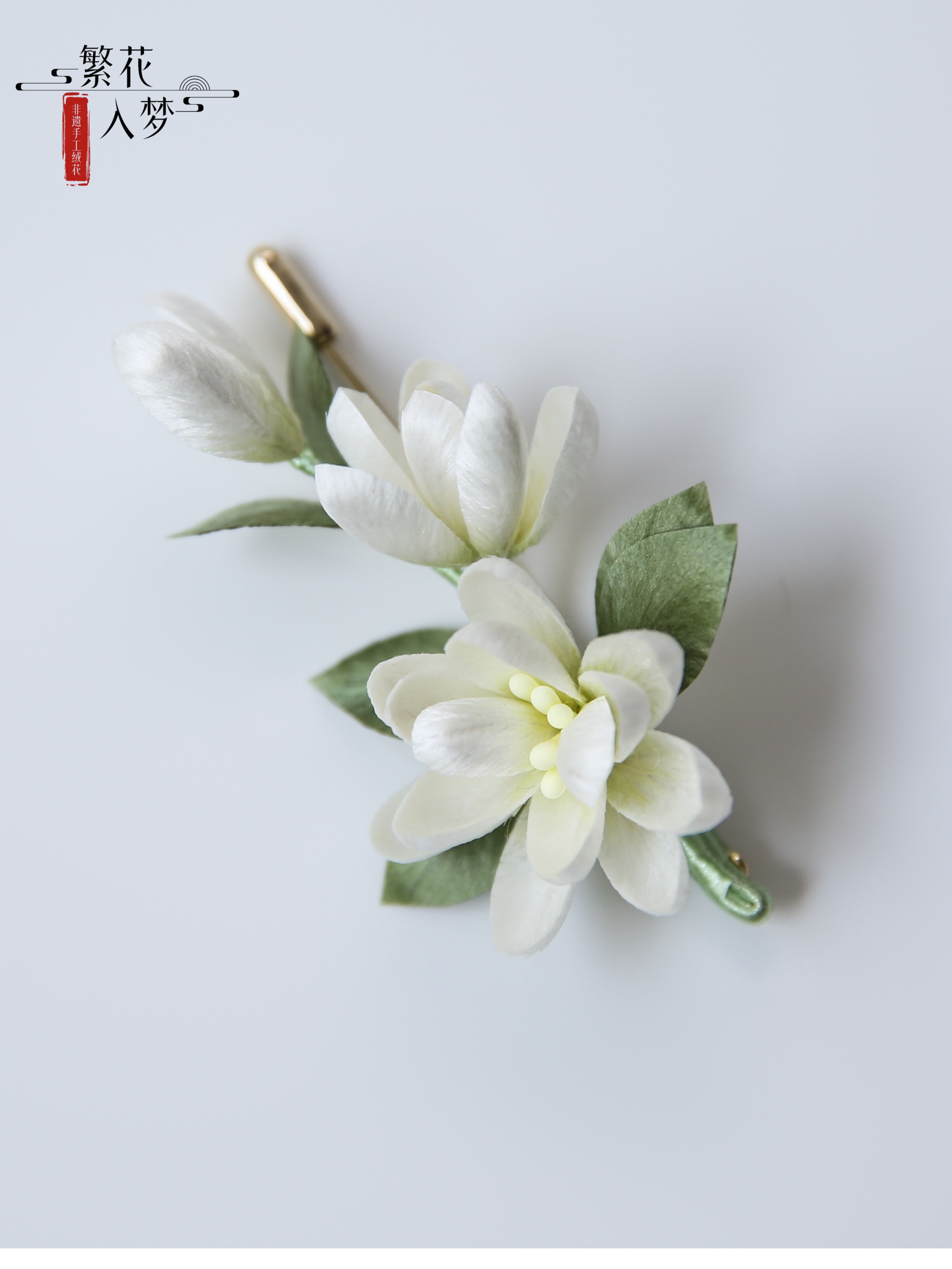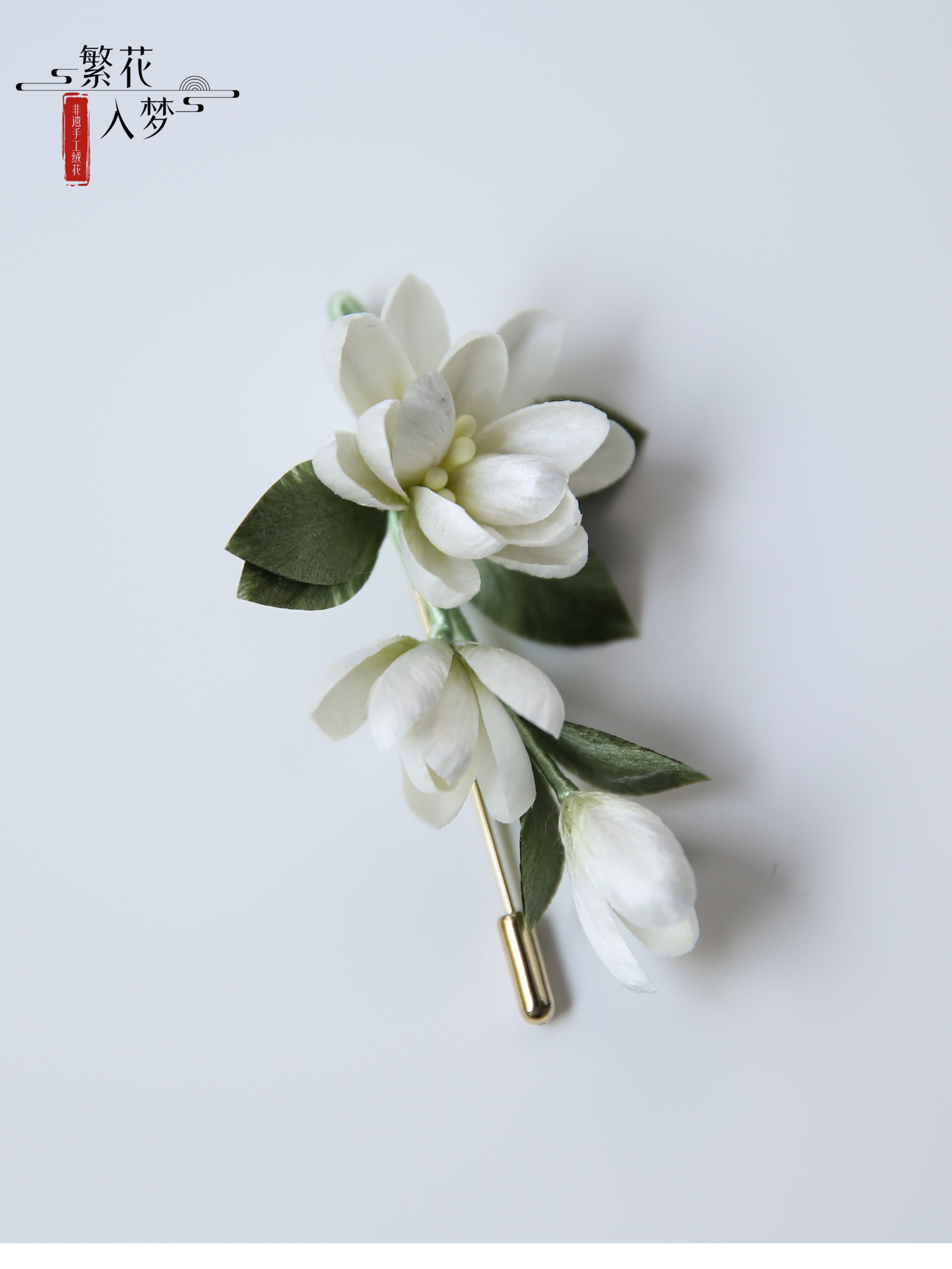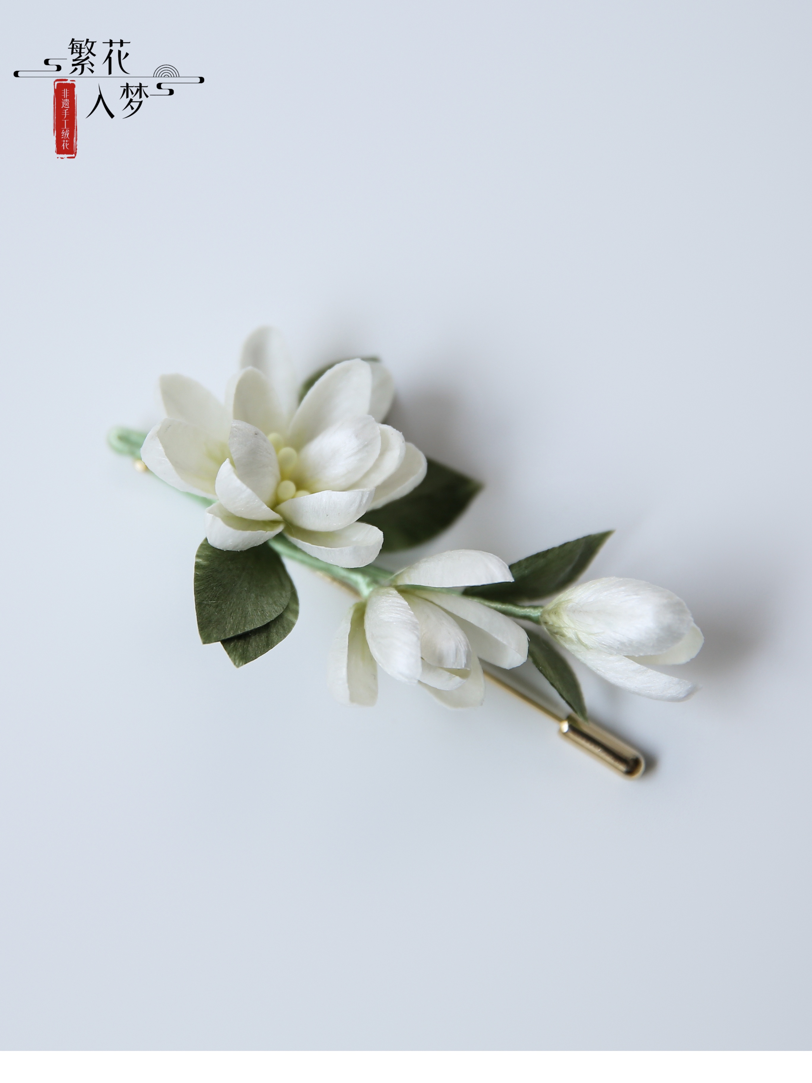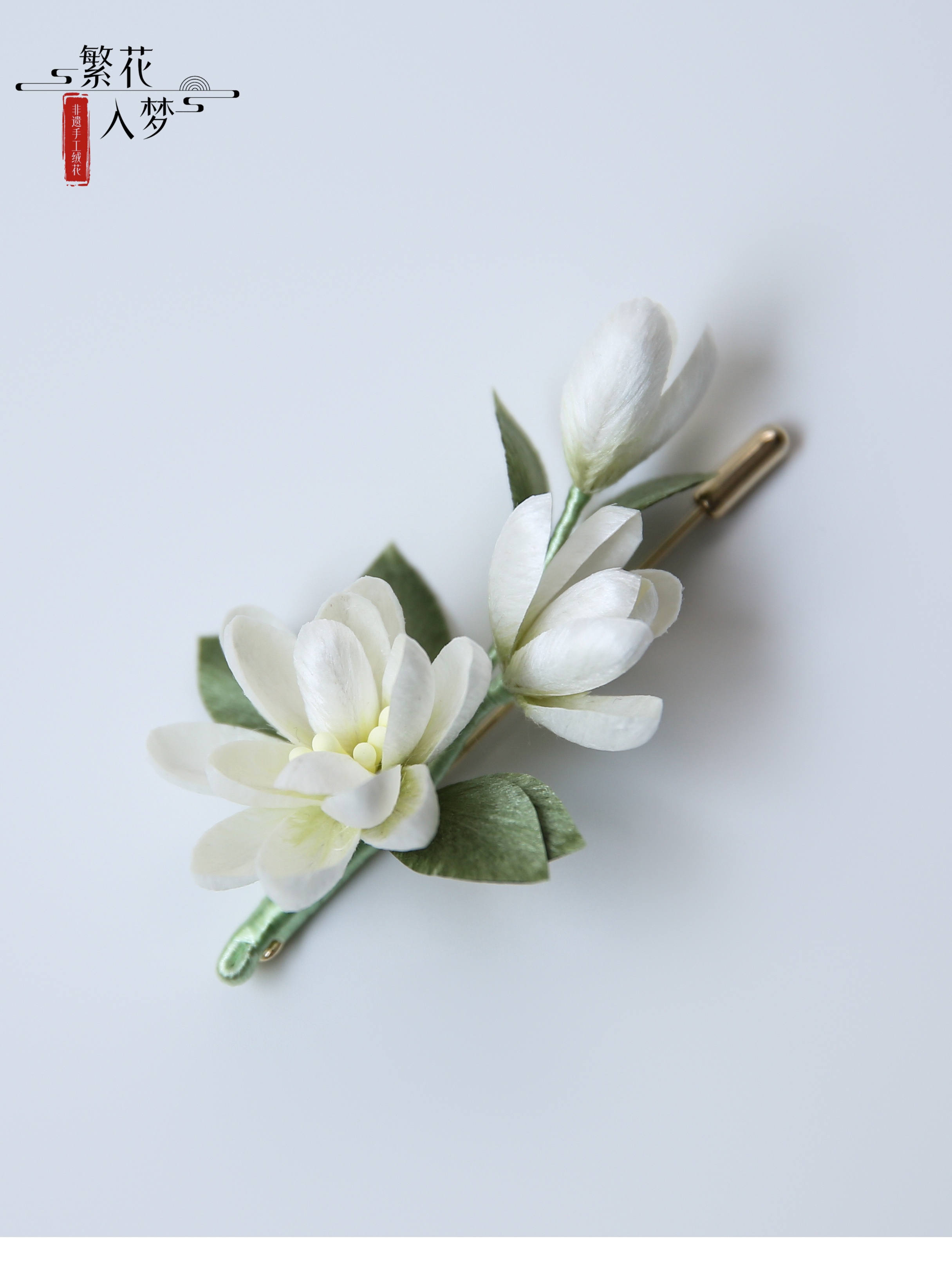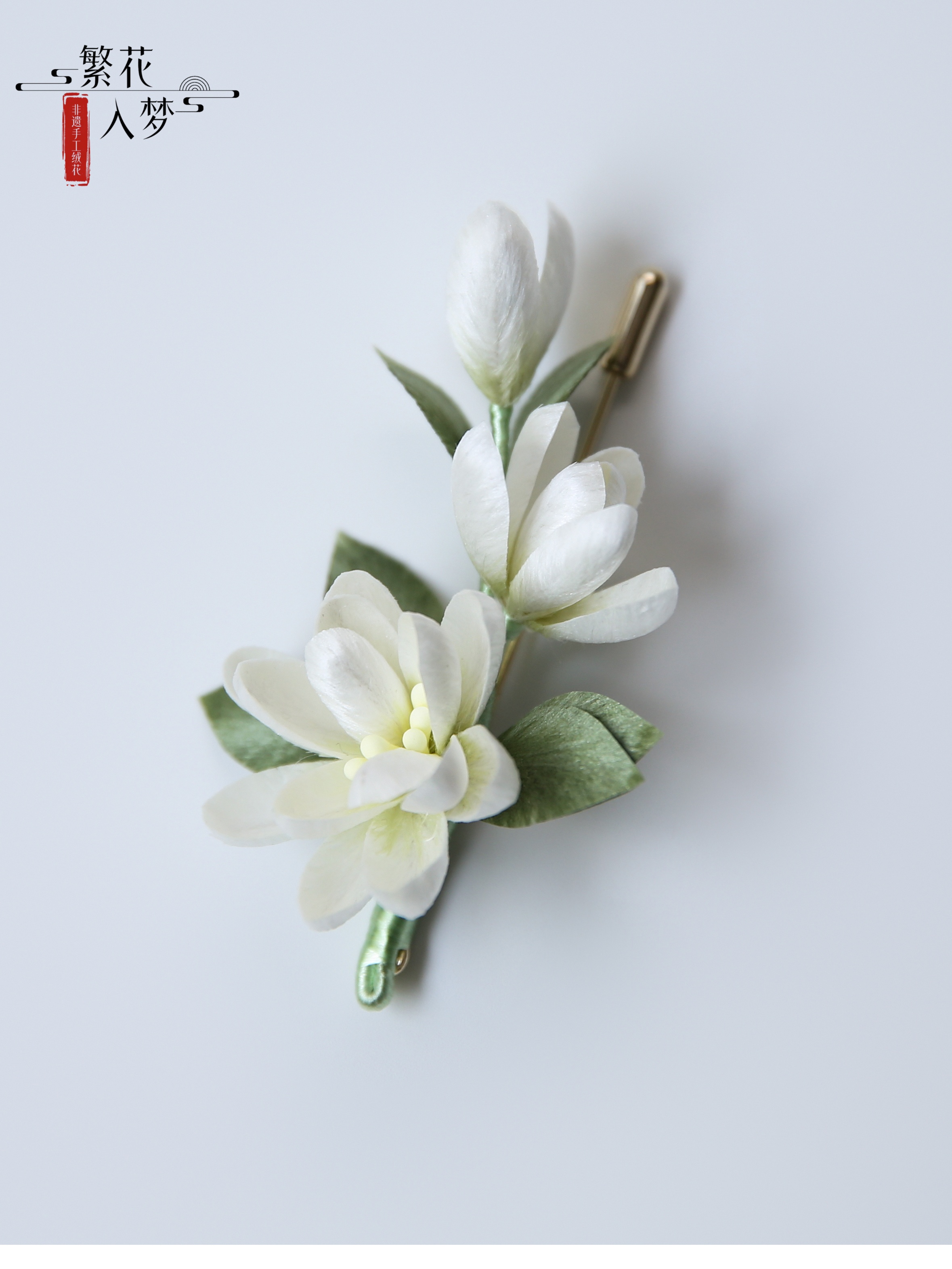 Intangible Cultural Heritage Velvet Flower, Pure Handmade Silk Jasmine Brooch