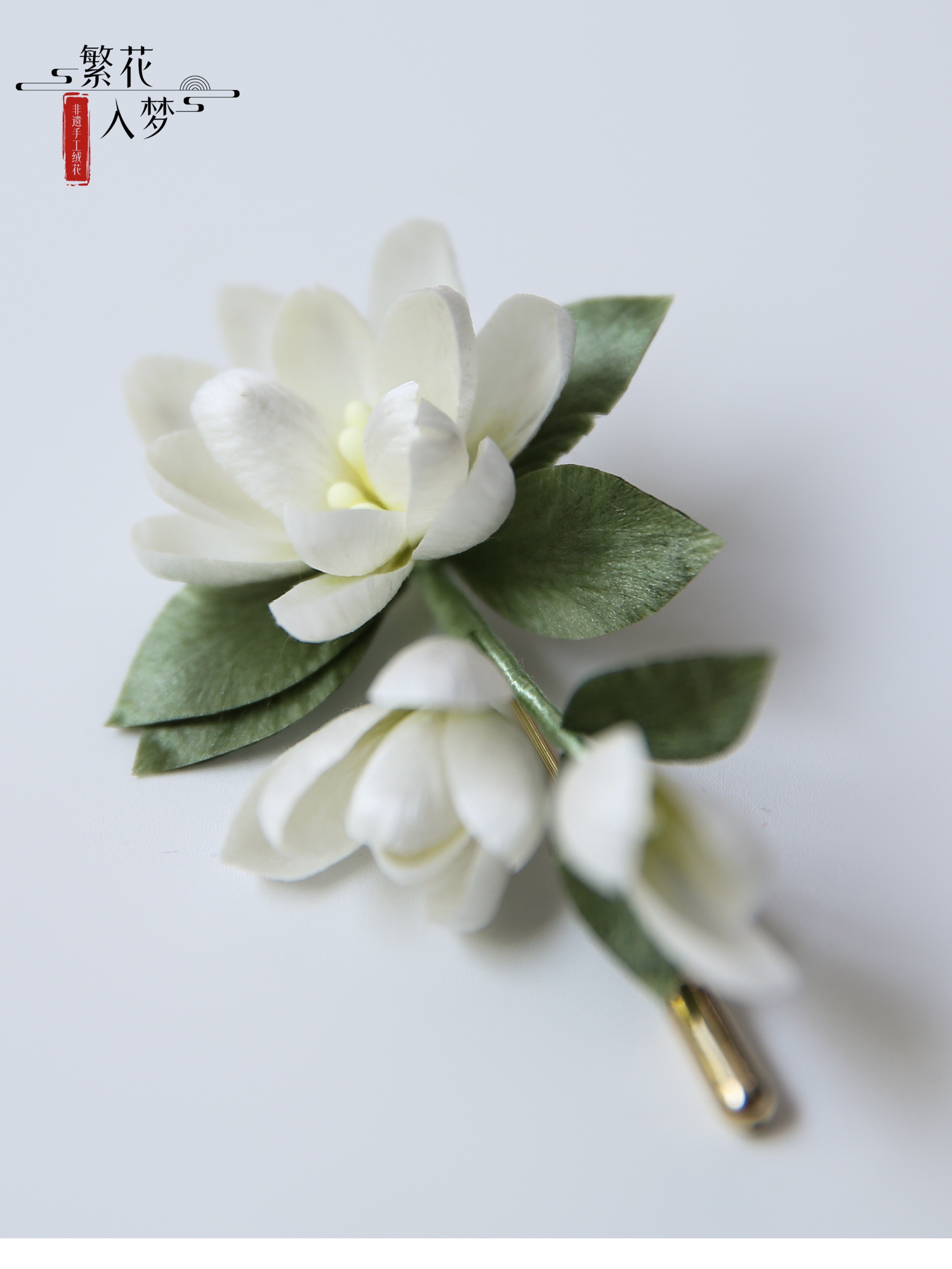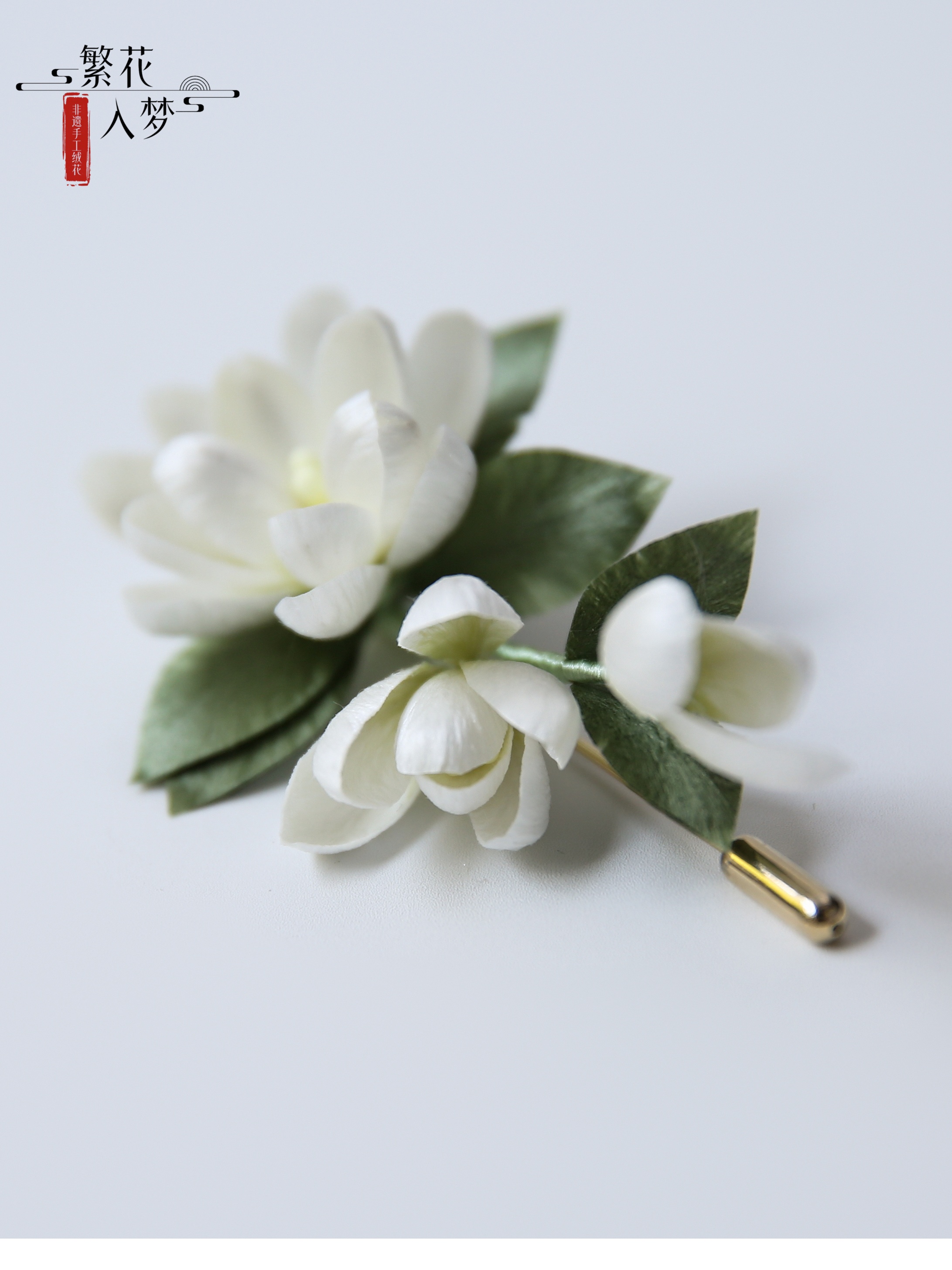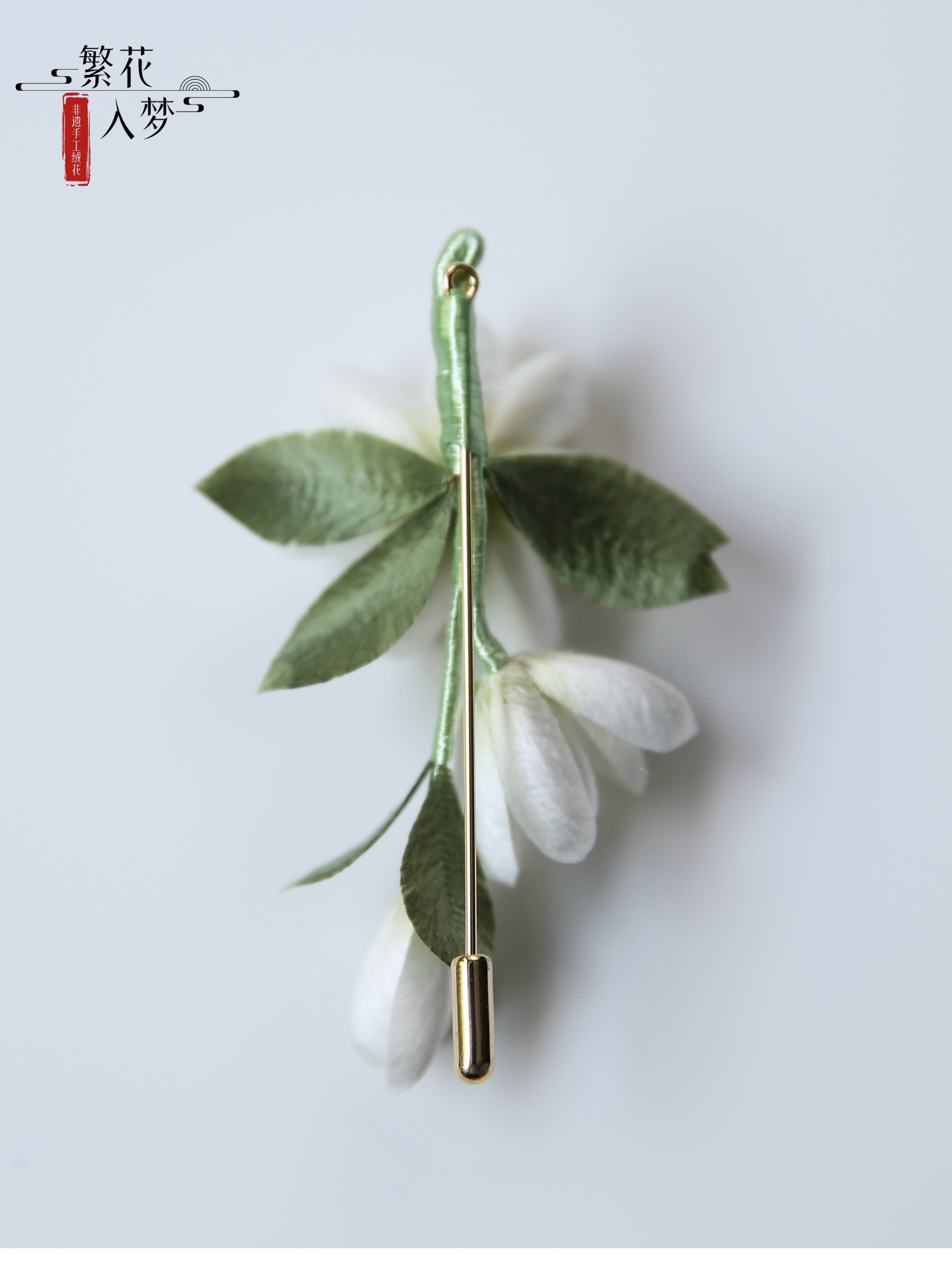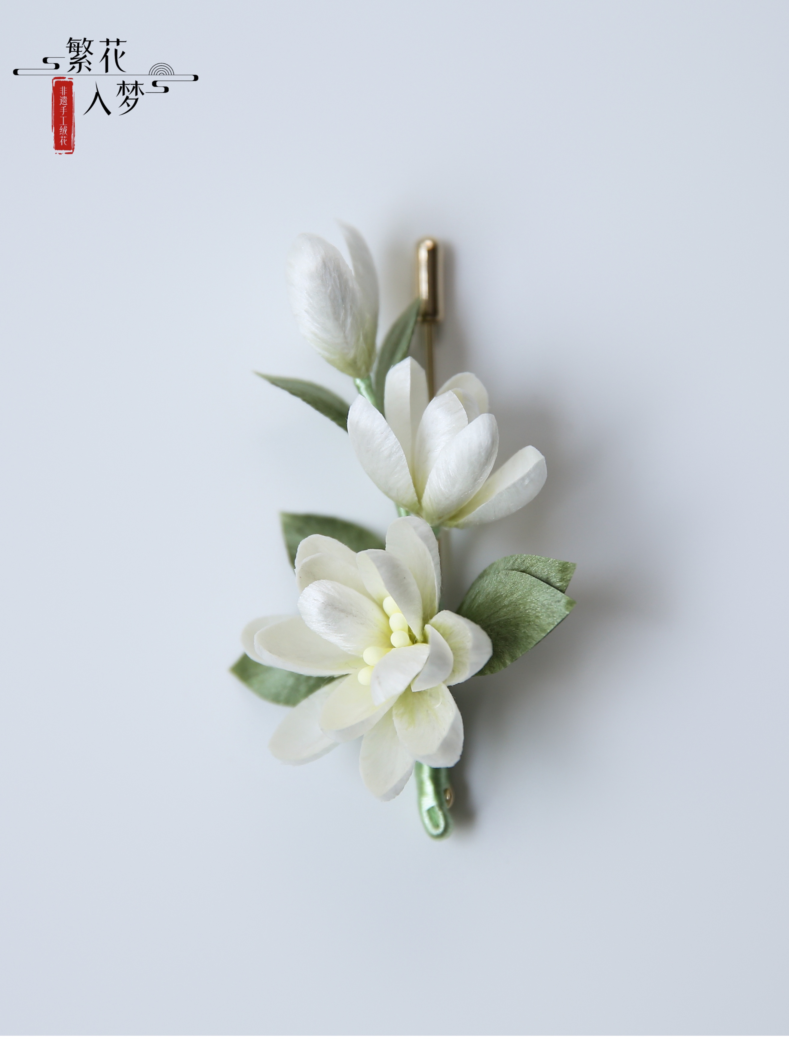 Intangible Cultural Heritage Velvet Flower, Pure Handmade Silk Jasmine Brooch