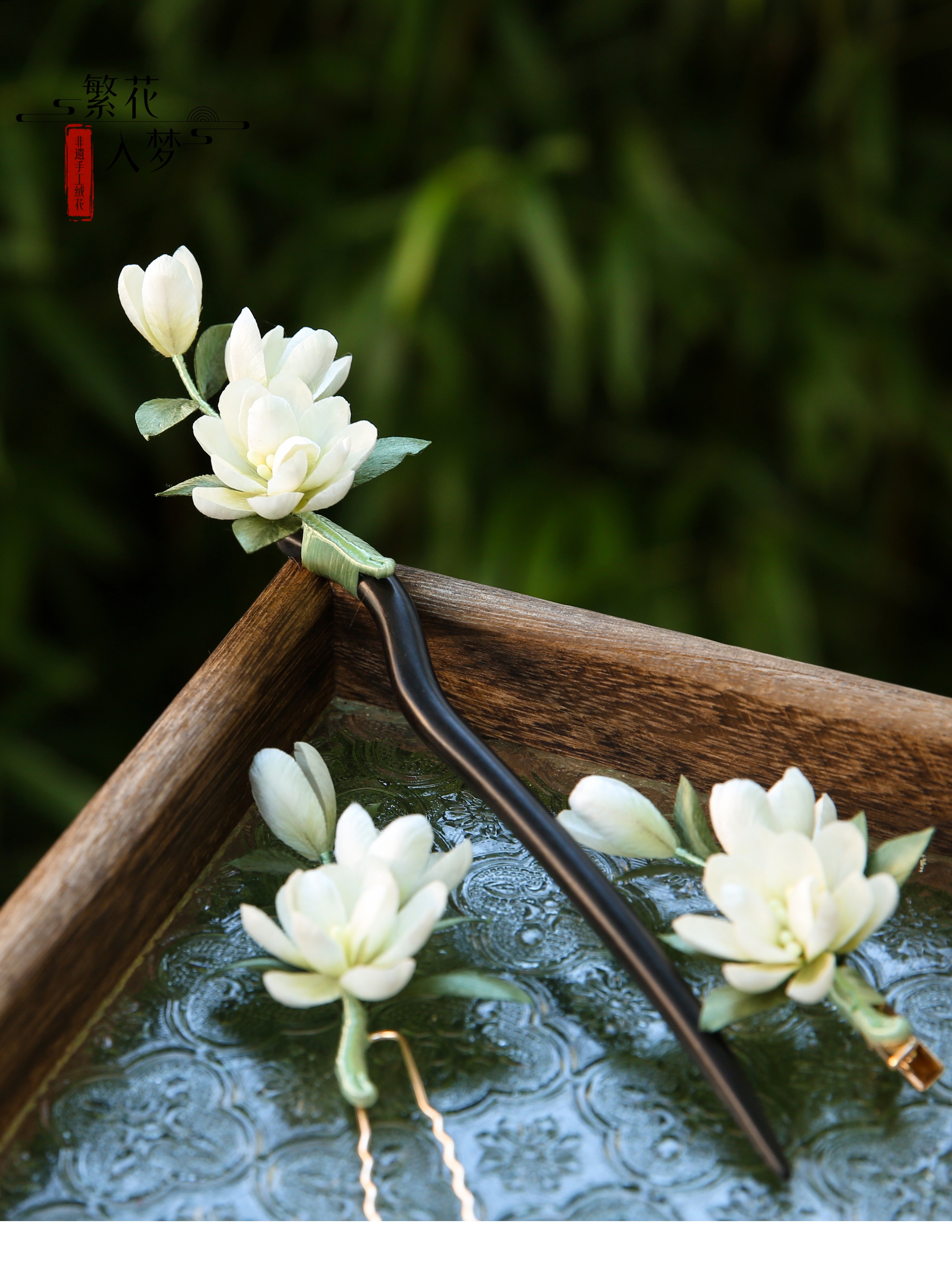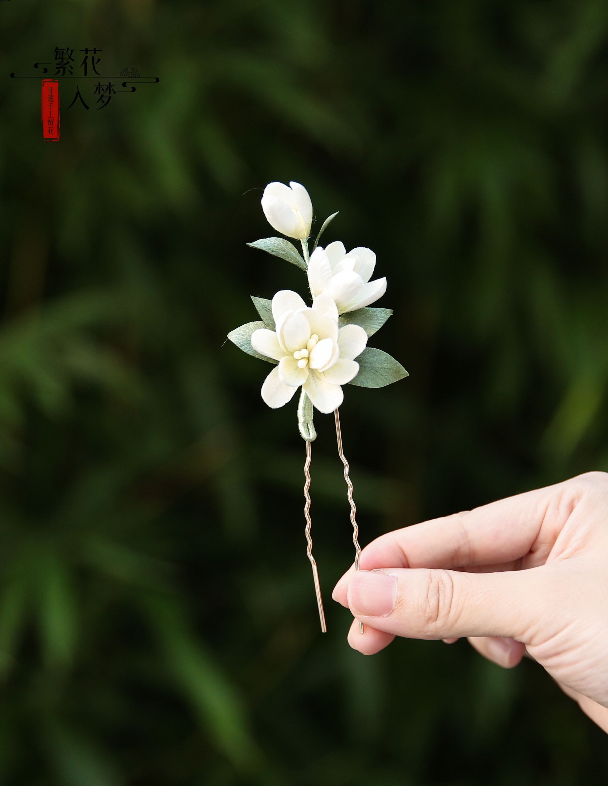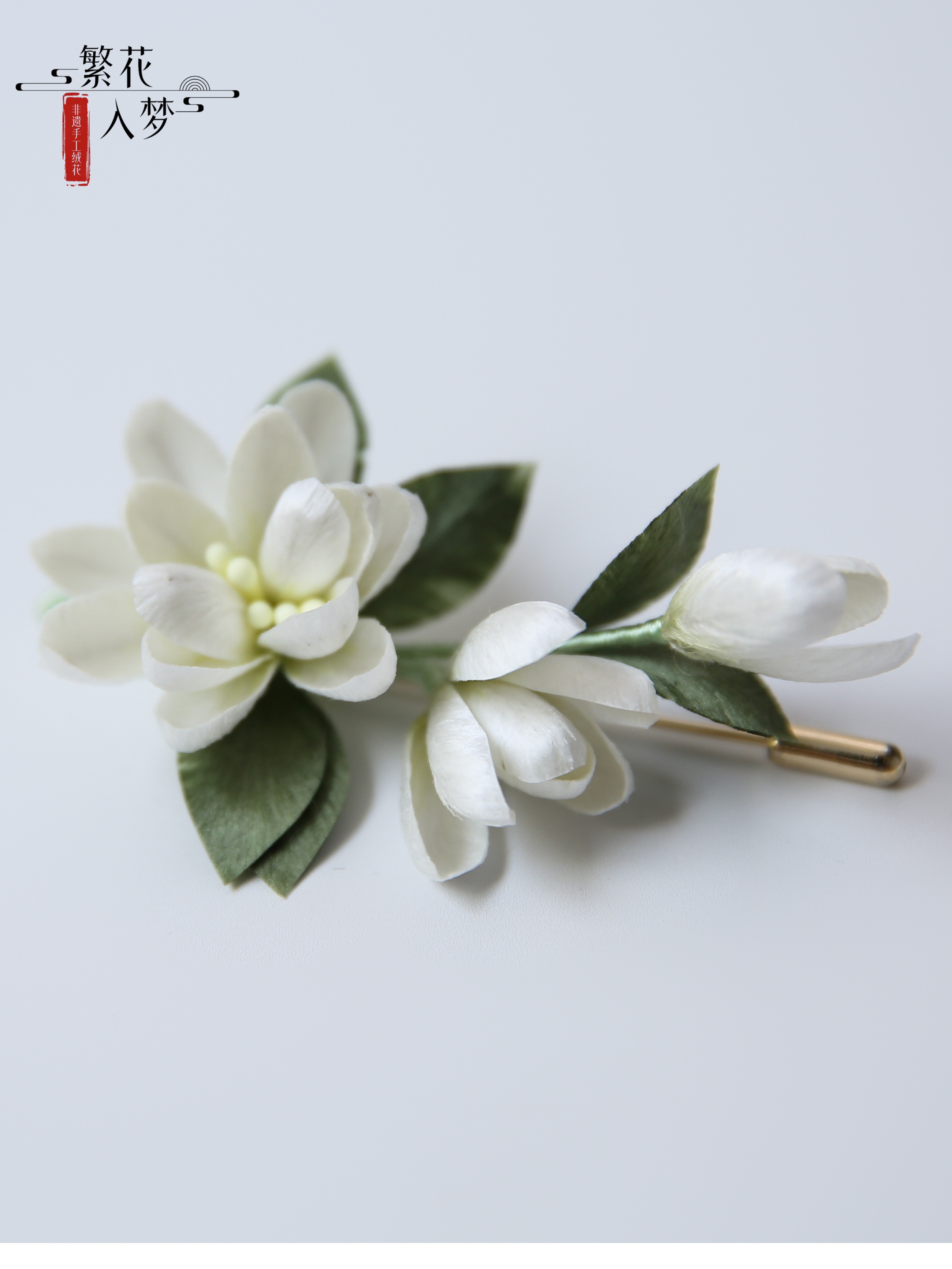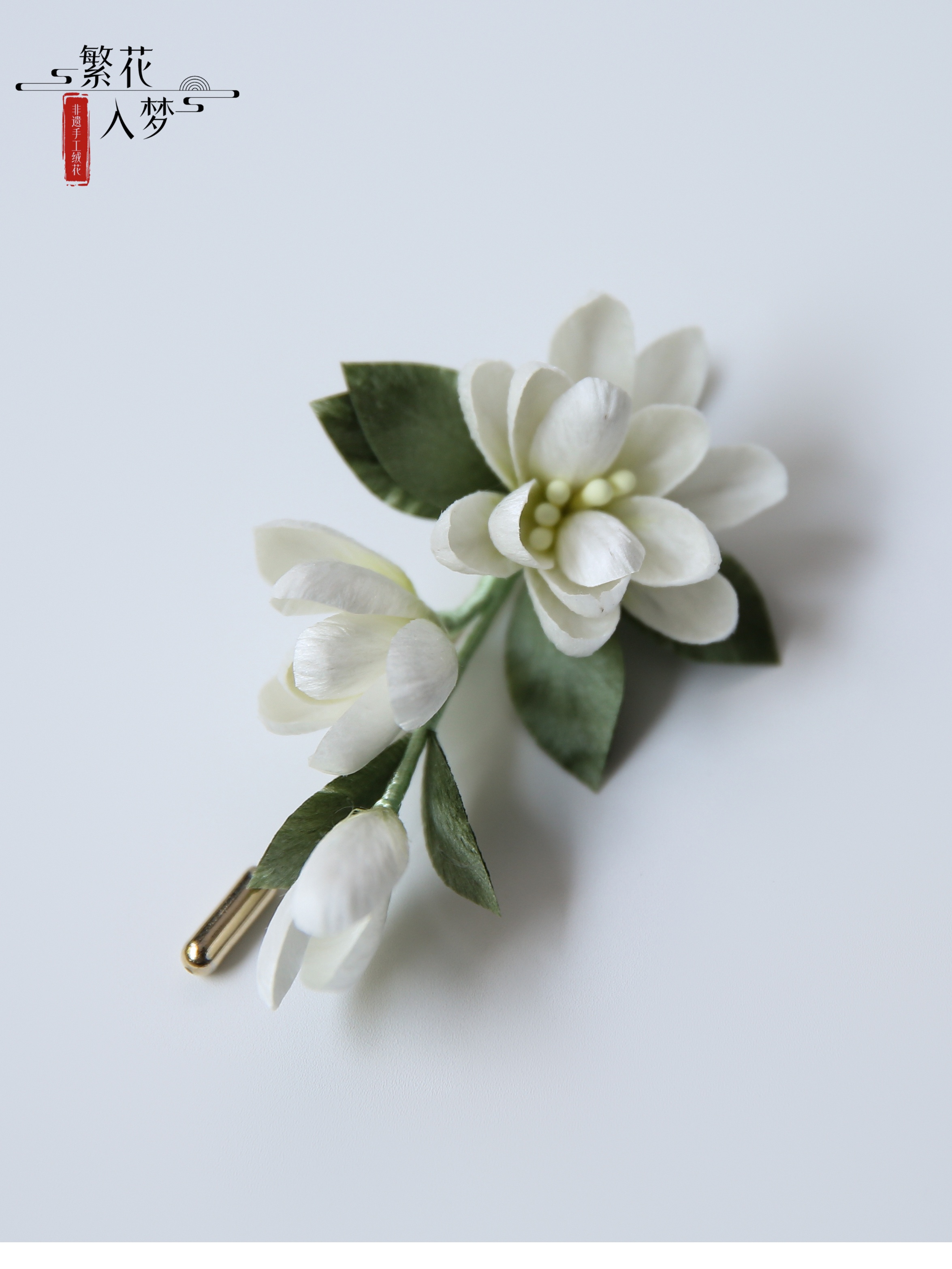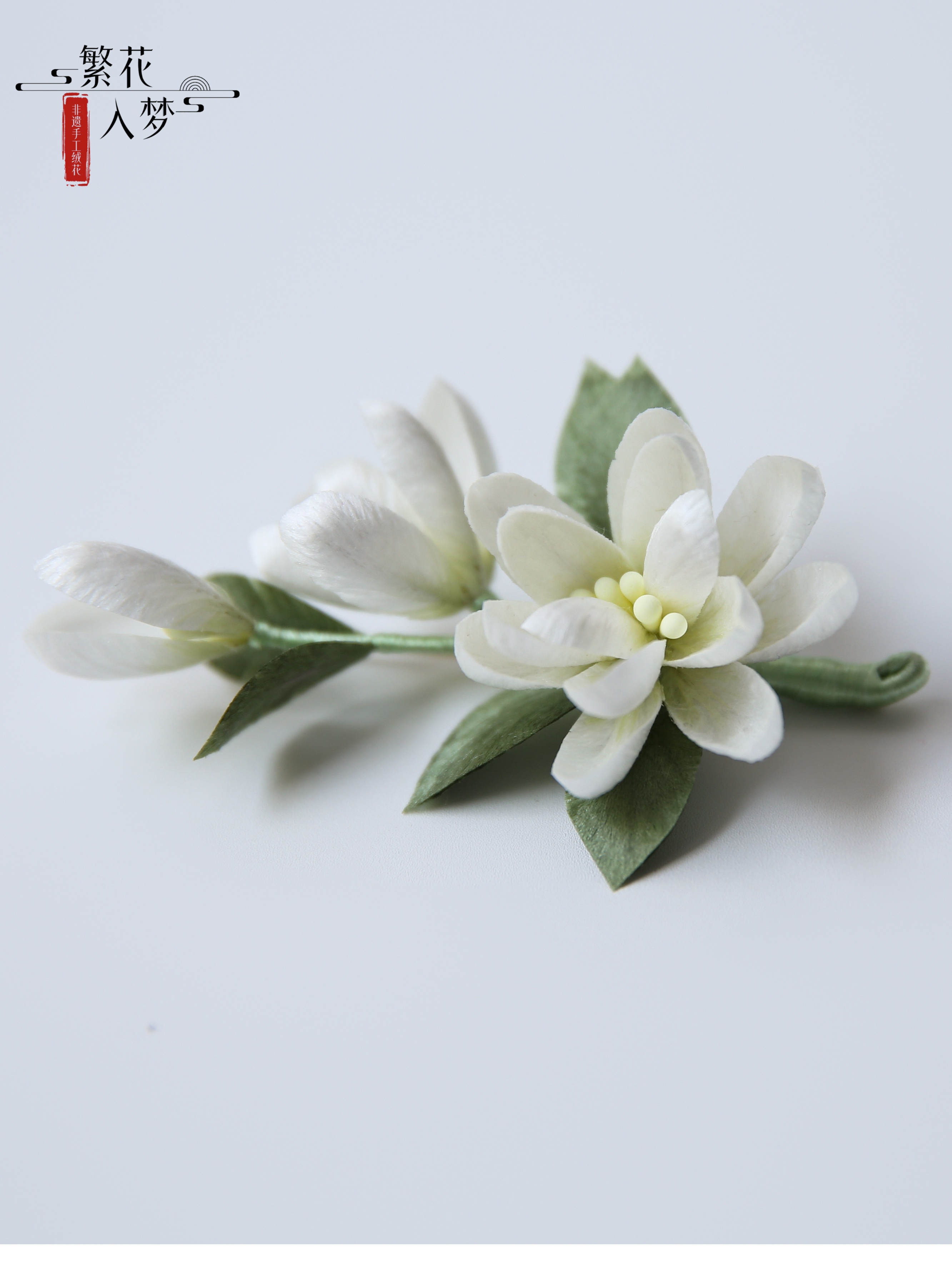 Intangible Cultural Heritage Velvet Flower, Pure Handmade Silk Jasmine Brooch