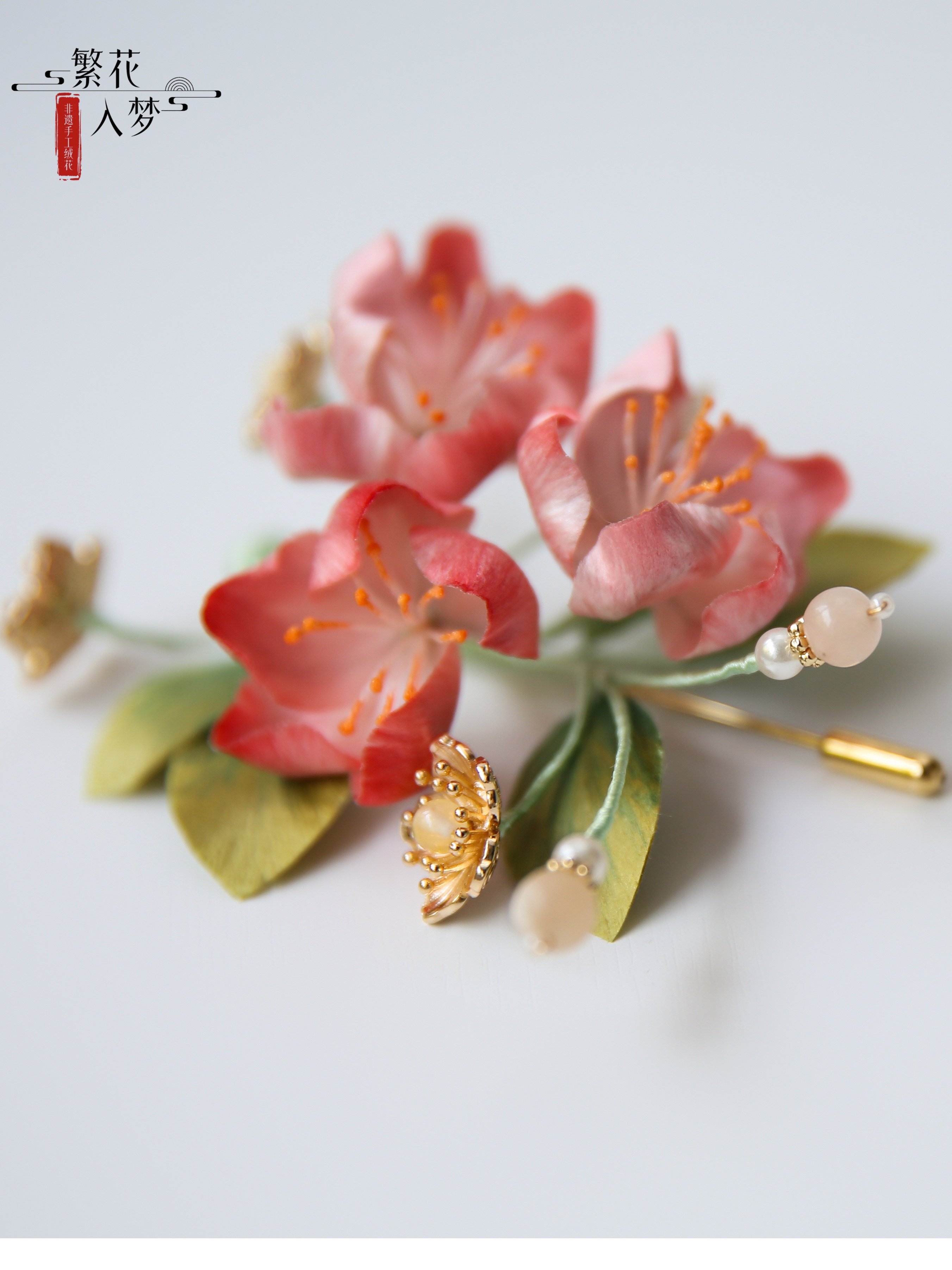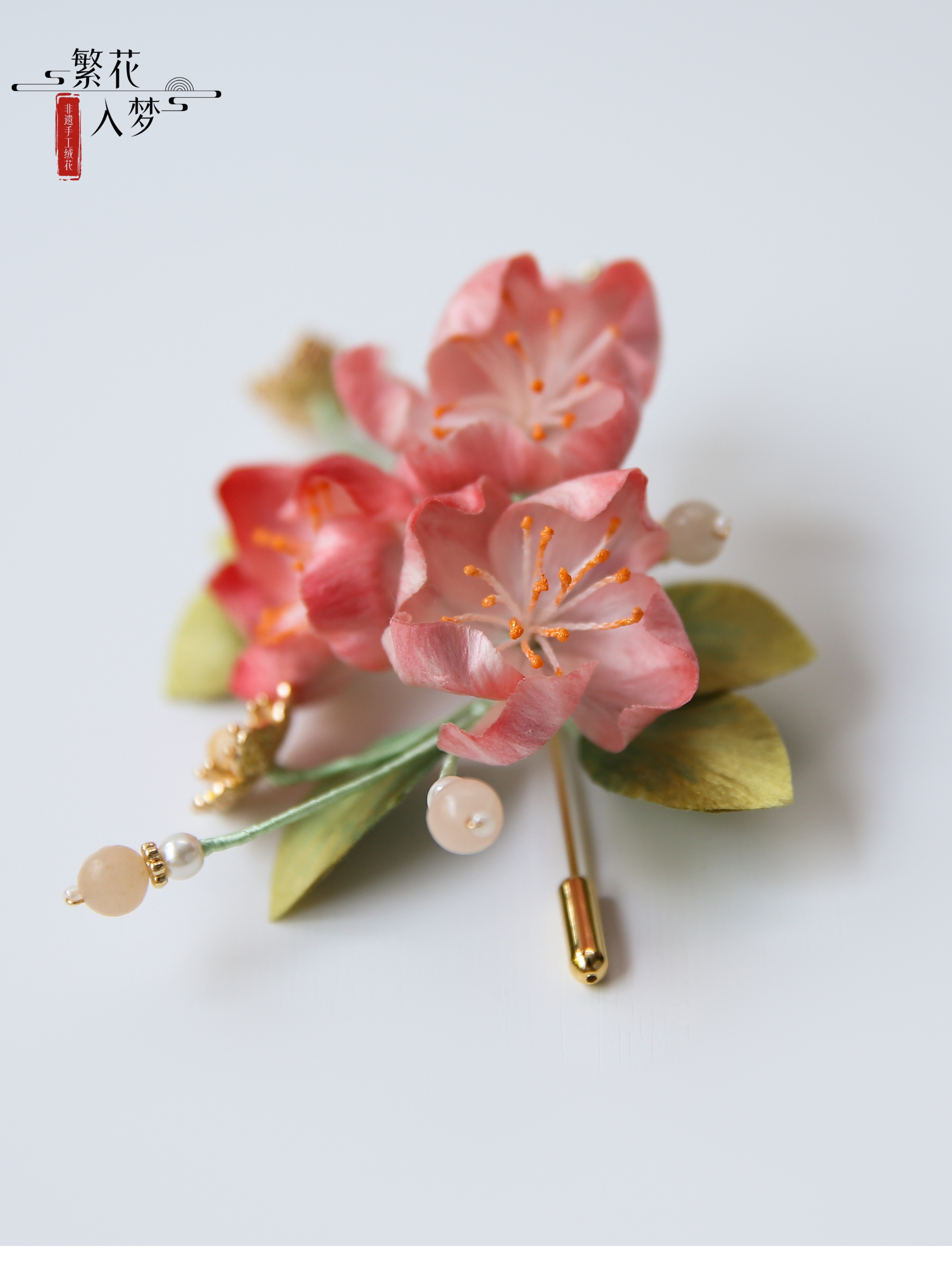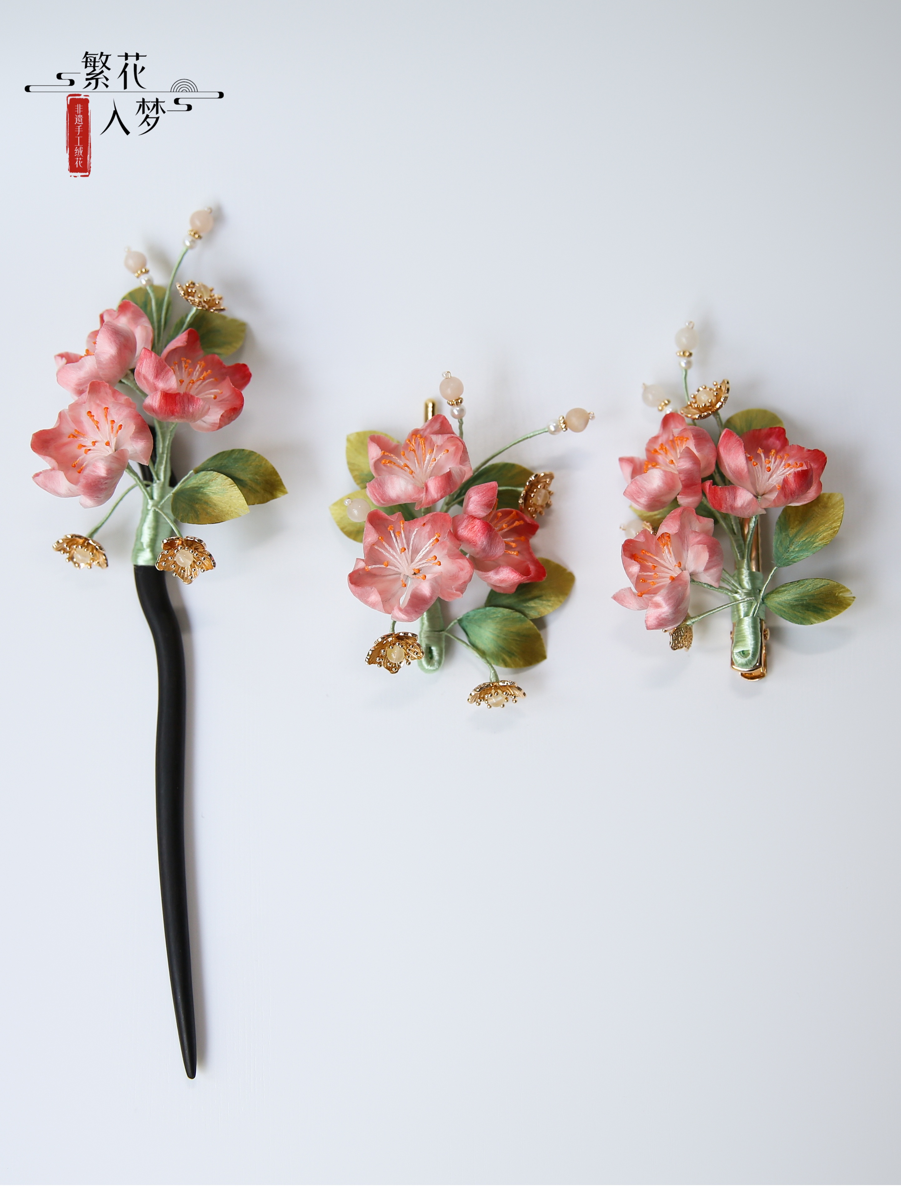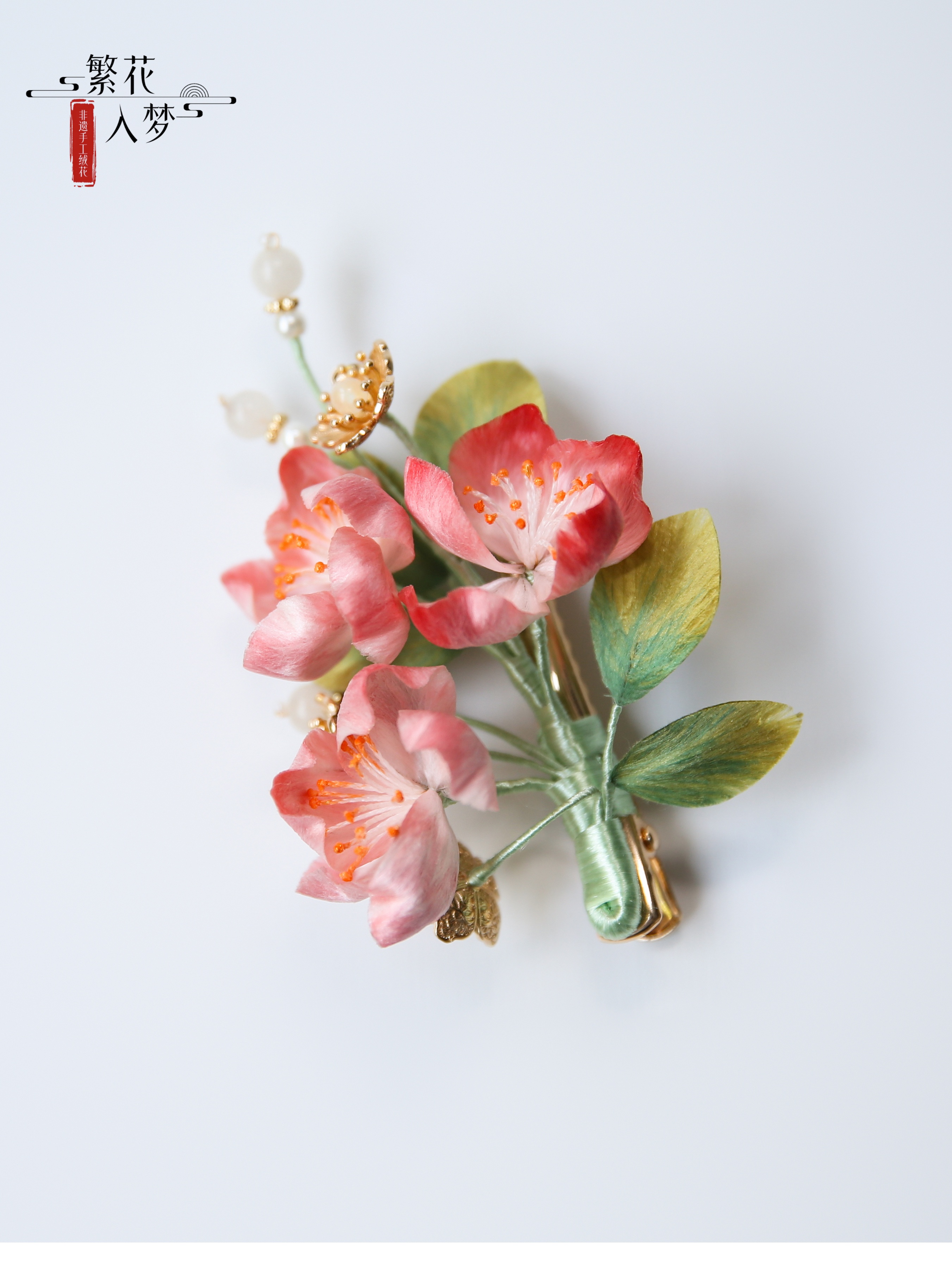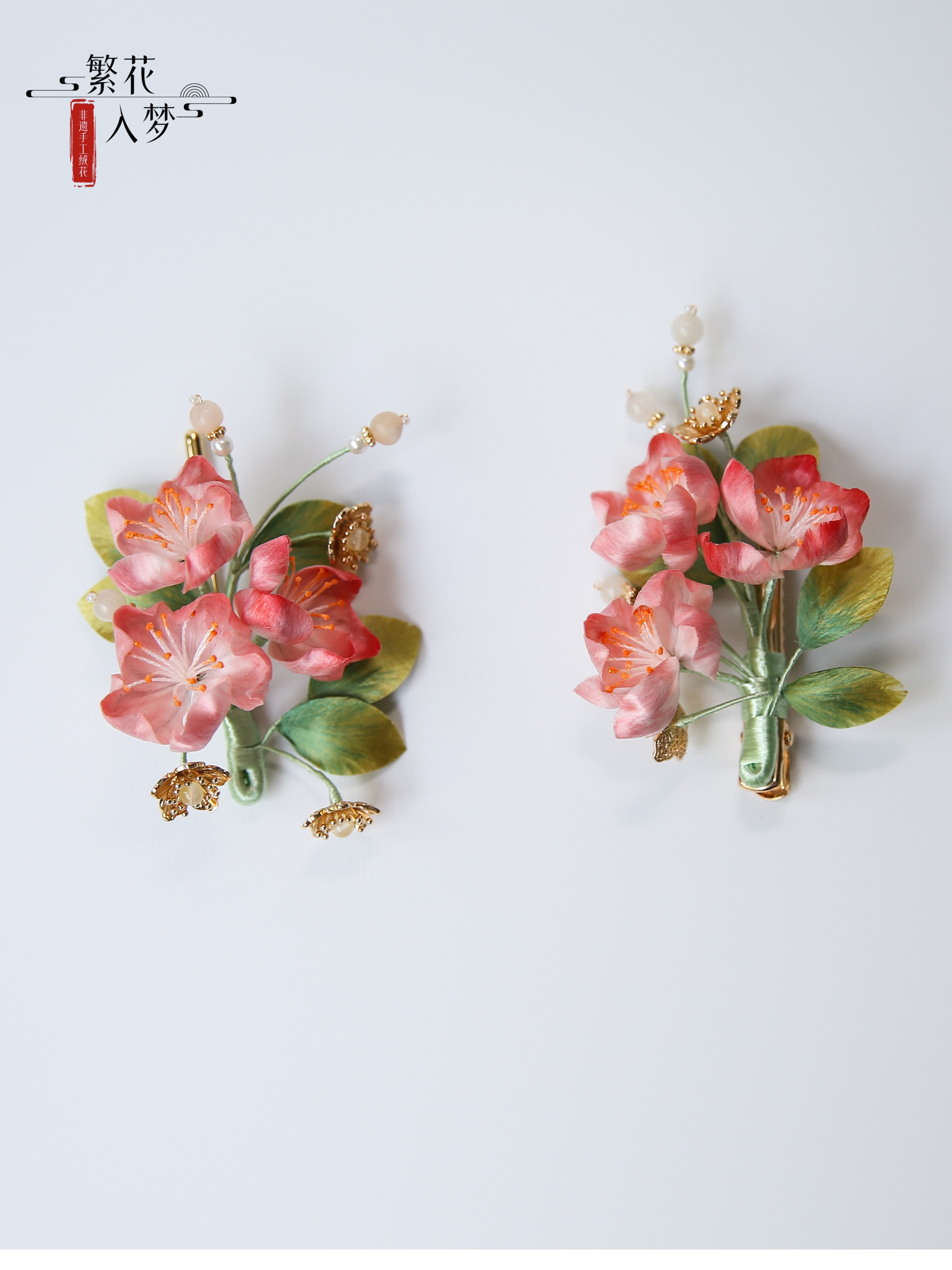 Intangible cultural heritage velvet flowers, pure handmade crabapple flower brooches, hairpins, hairpins