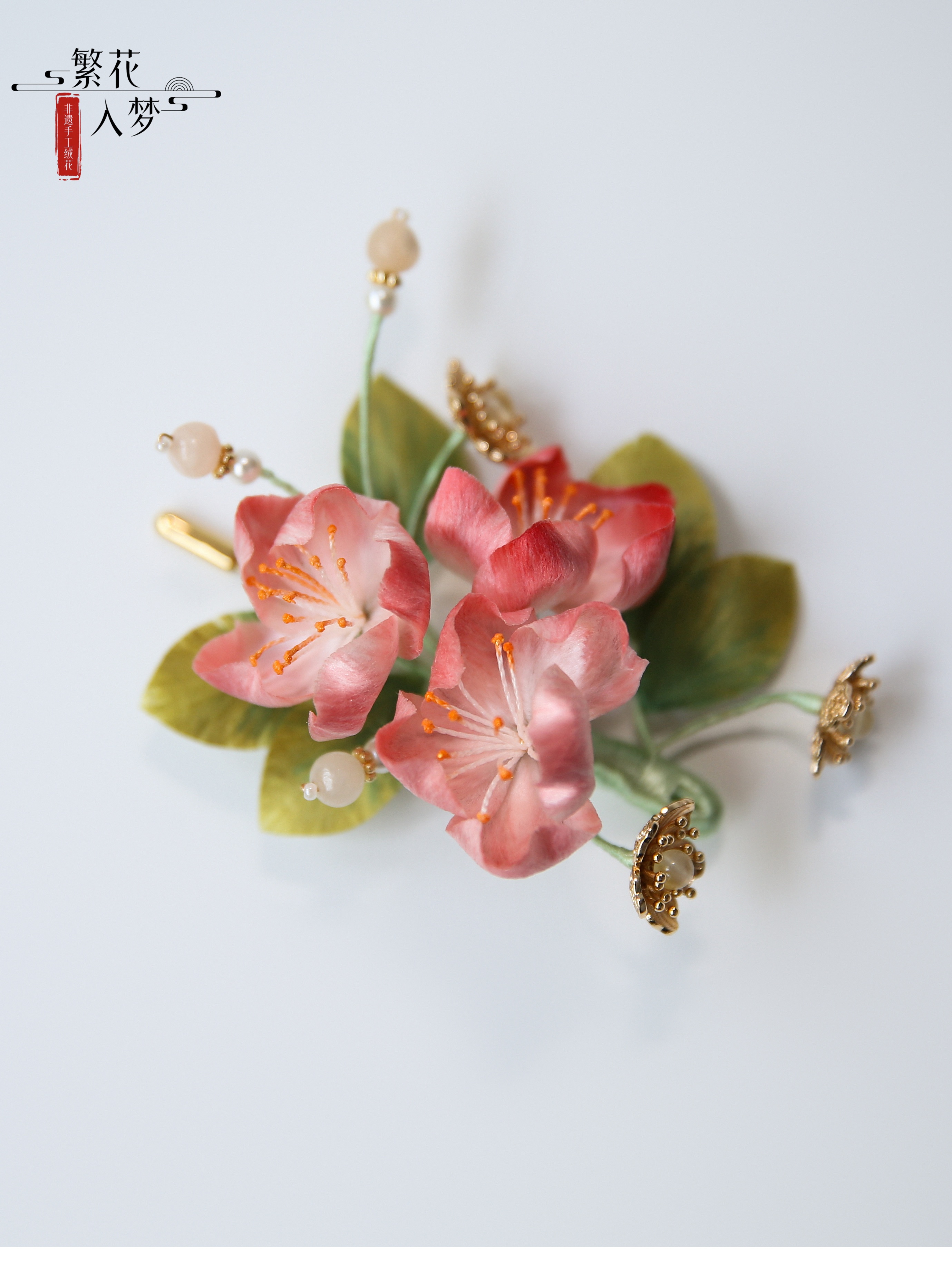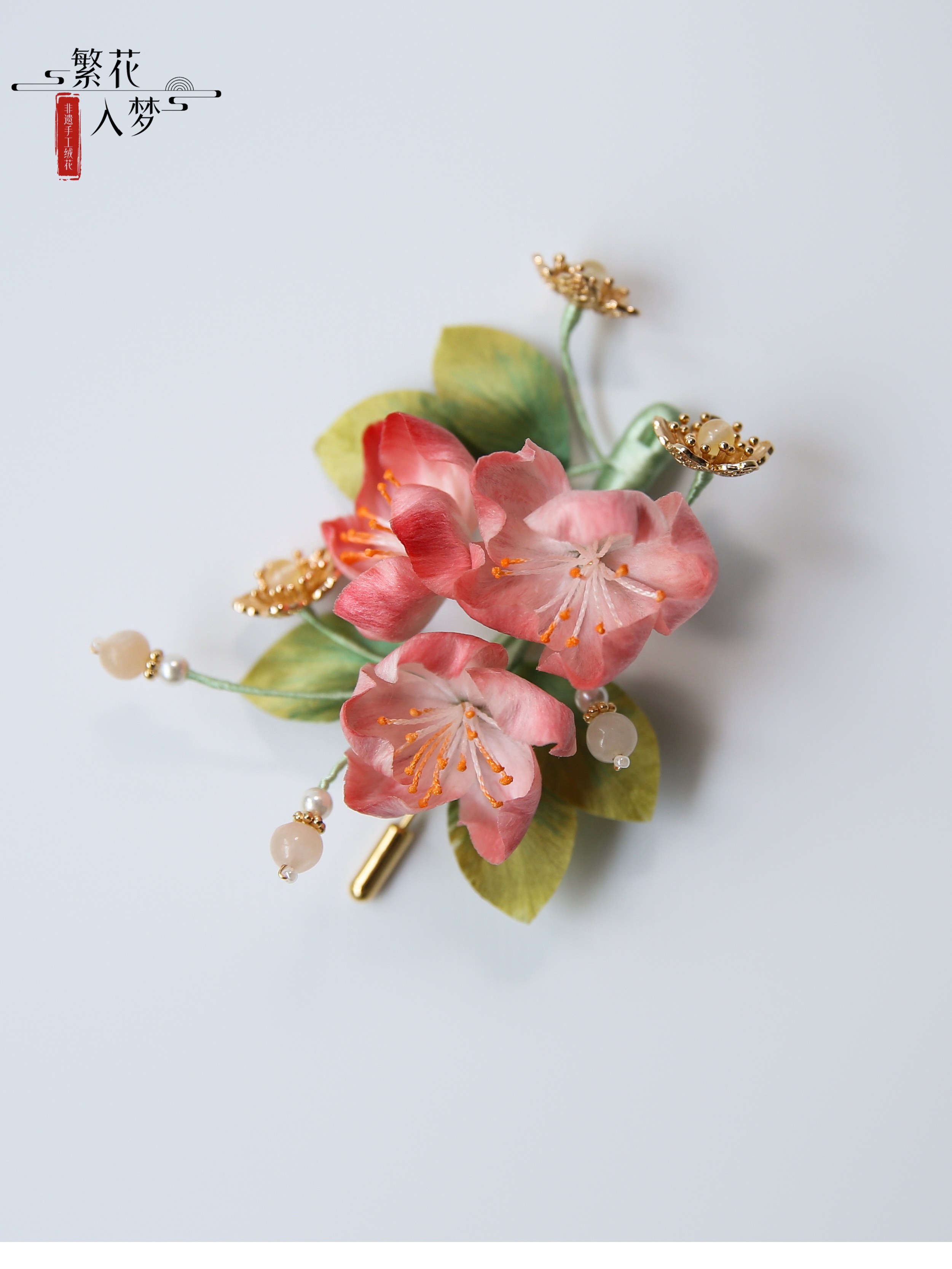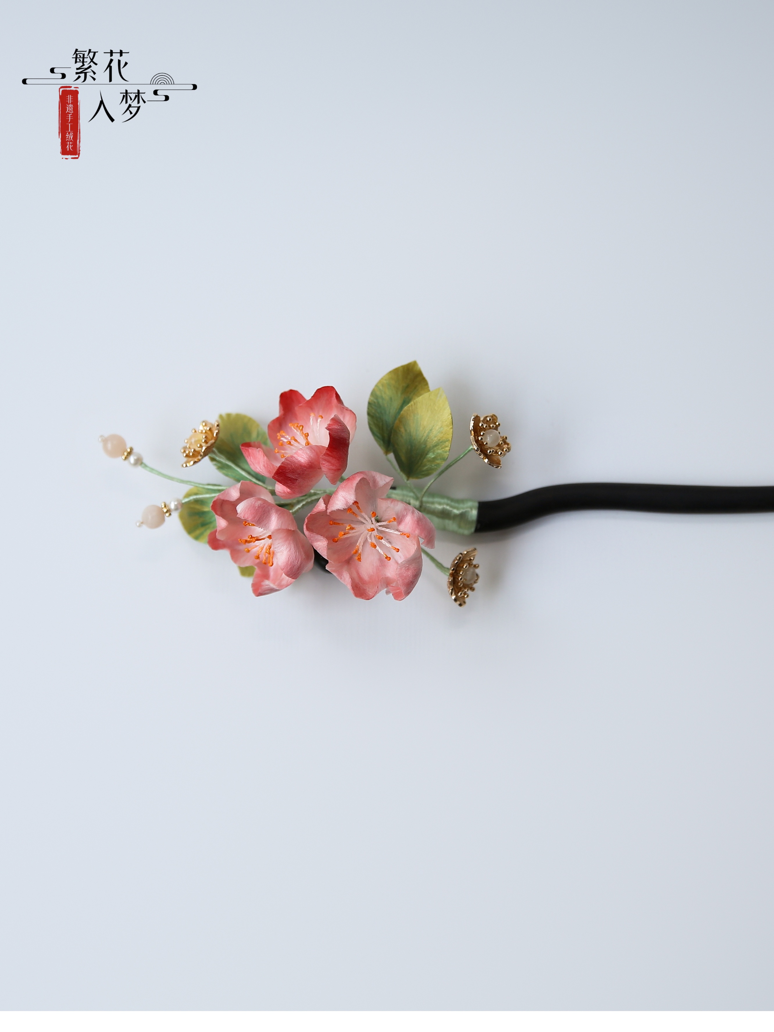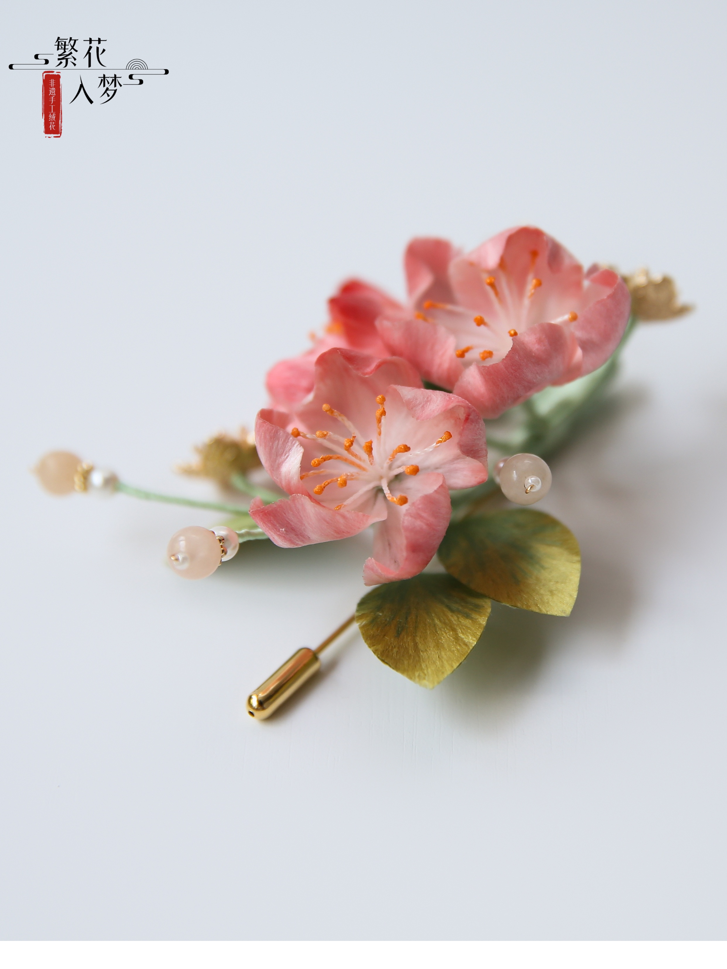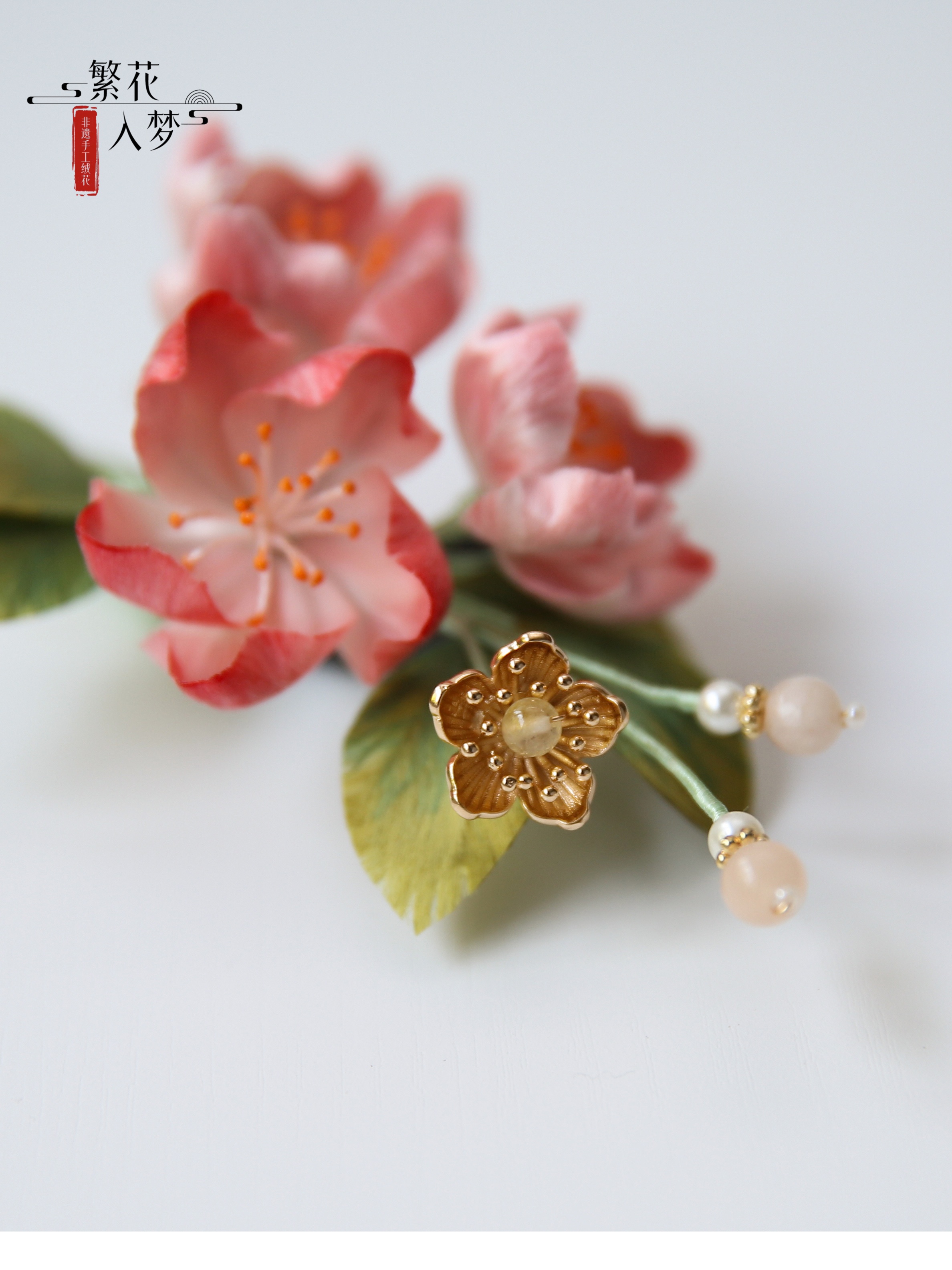 Intangible cultural heritage velvet flowers, pure handmade crabapple flower brooches, hairpins, hairpins