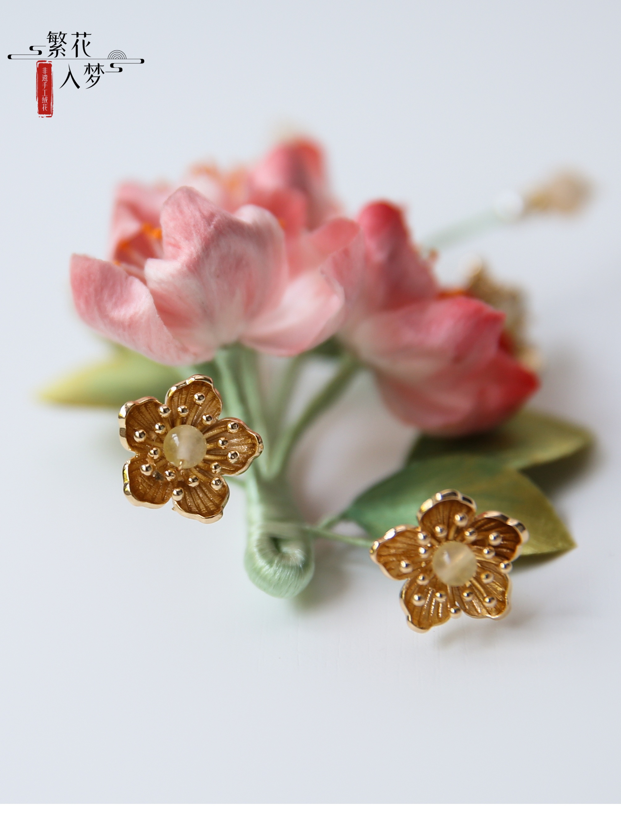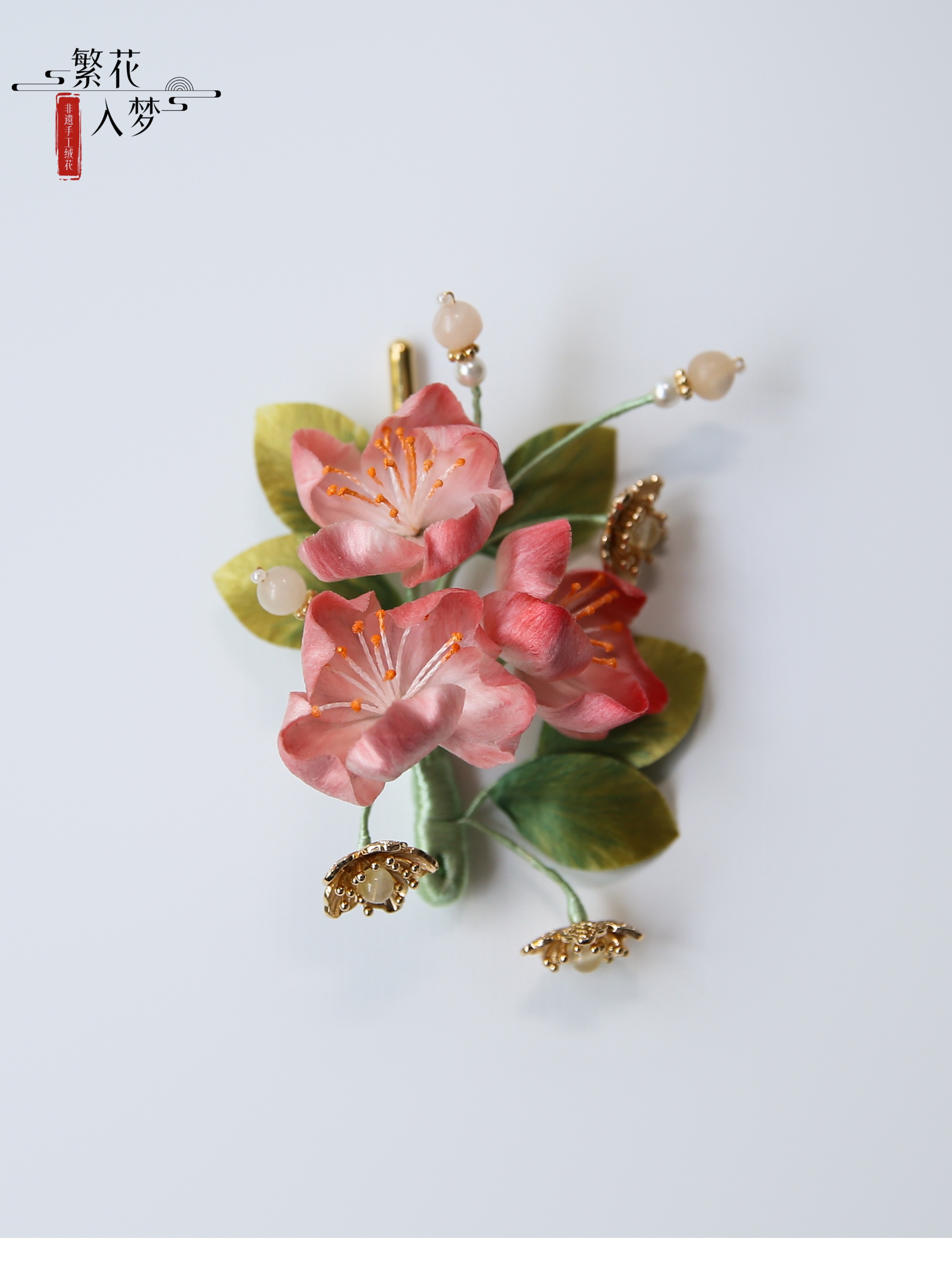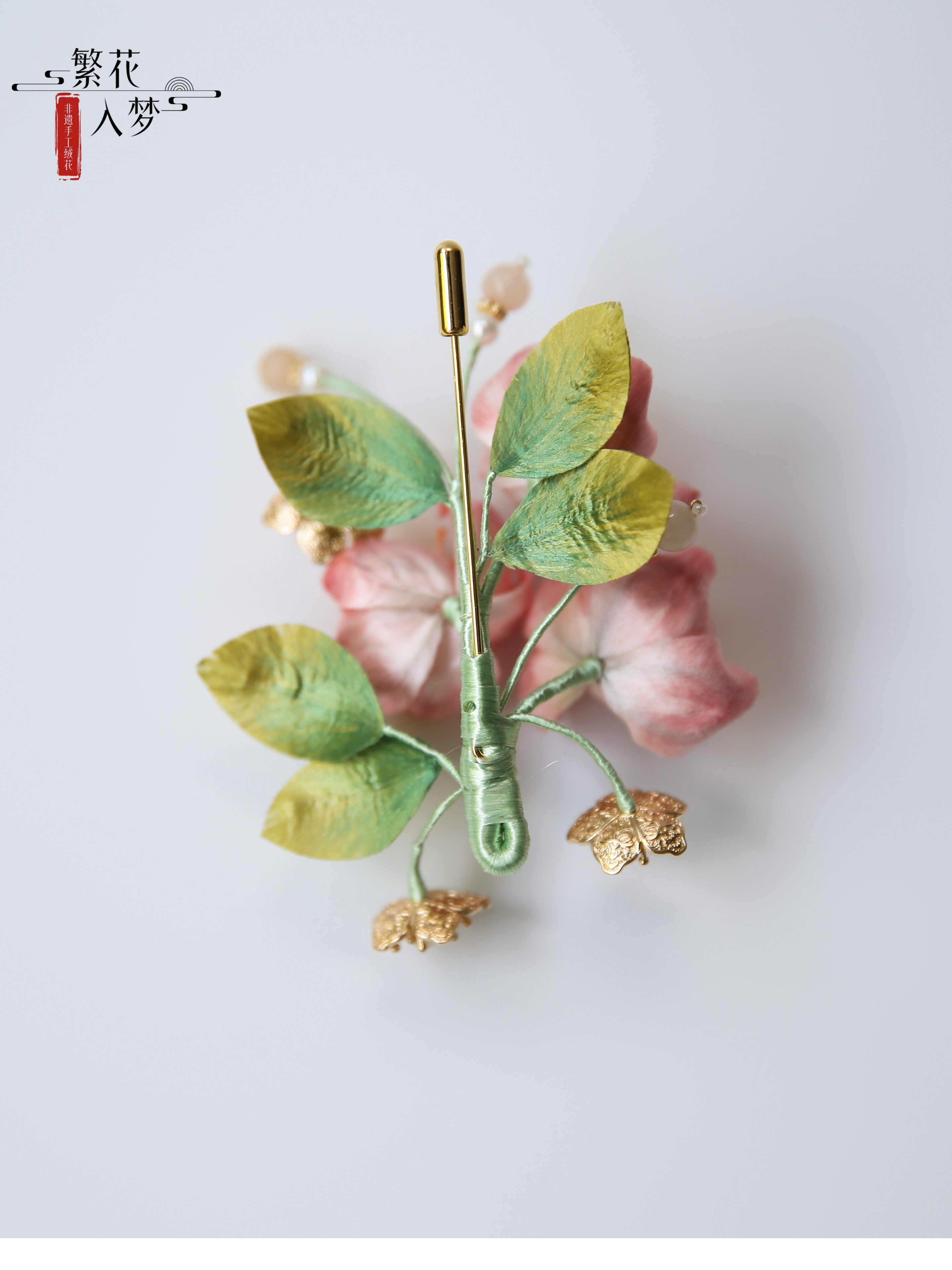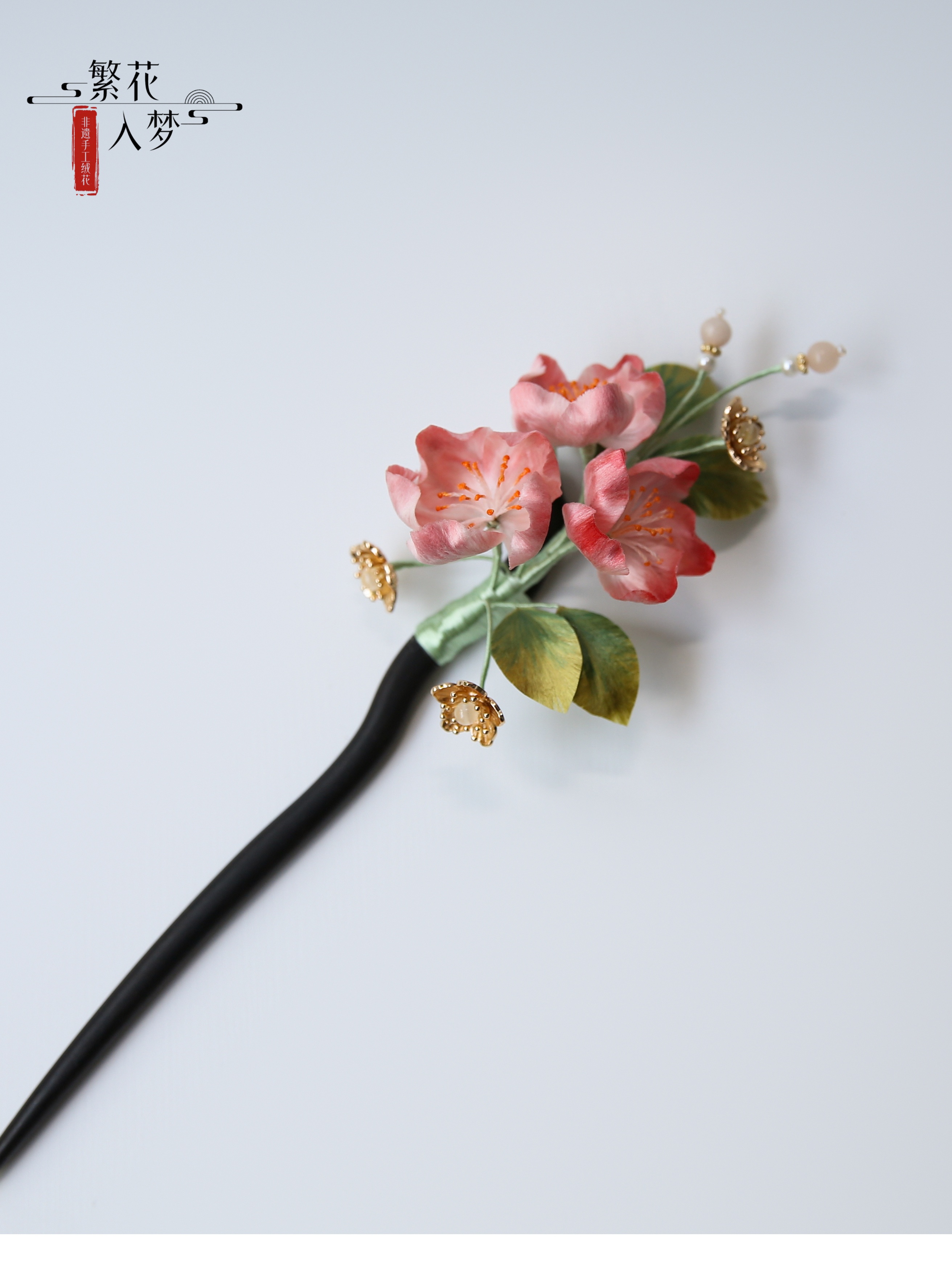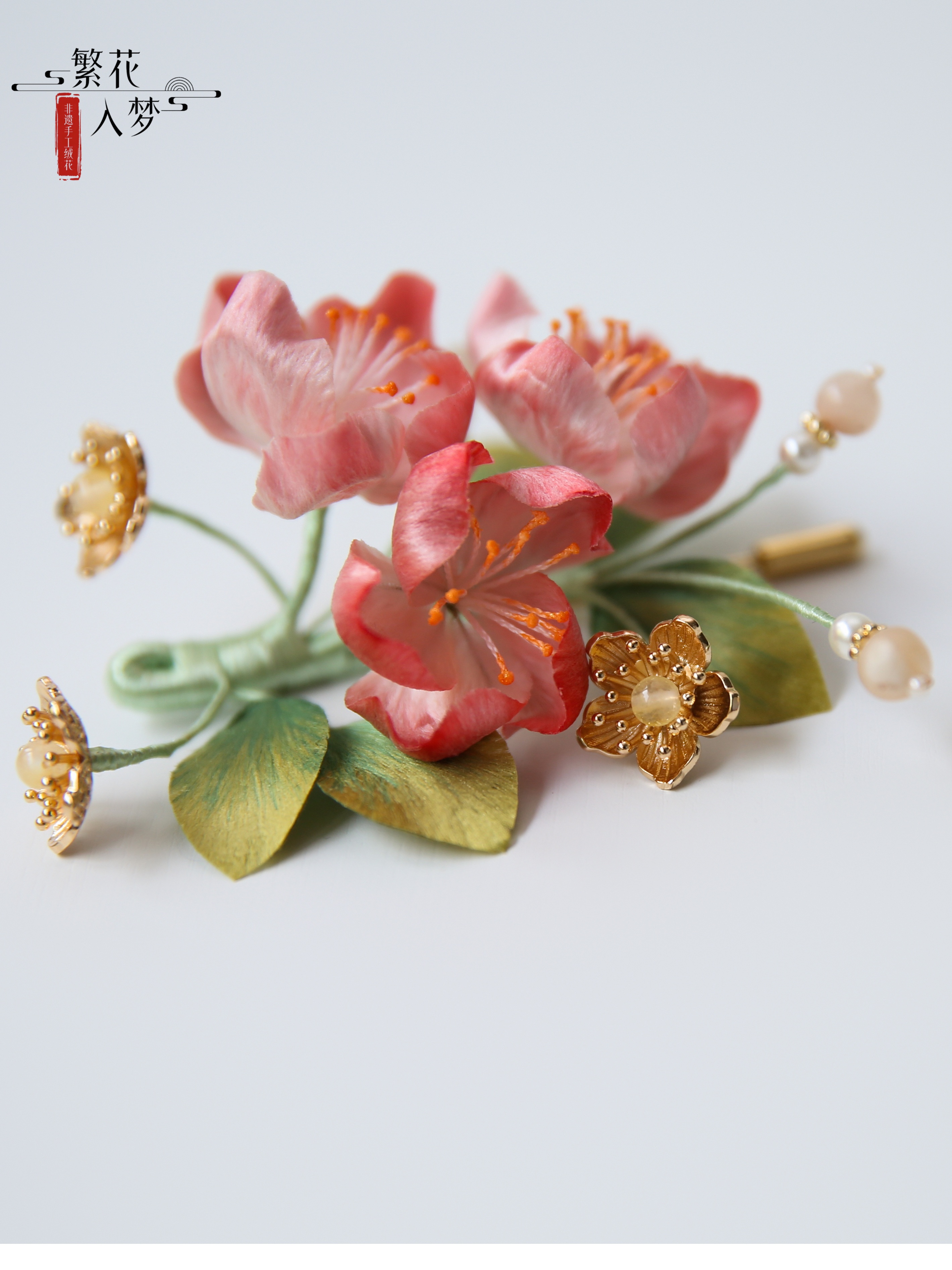 【Material】: Mulberry silk, color-preserving gold and copper, and wood hairpin