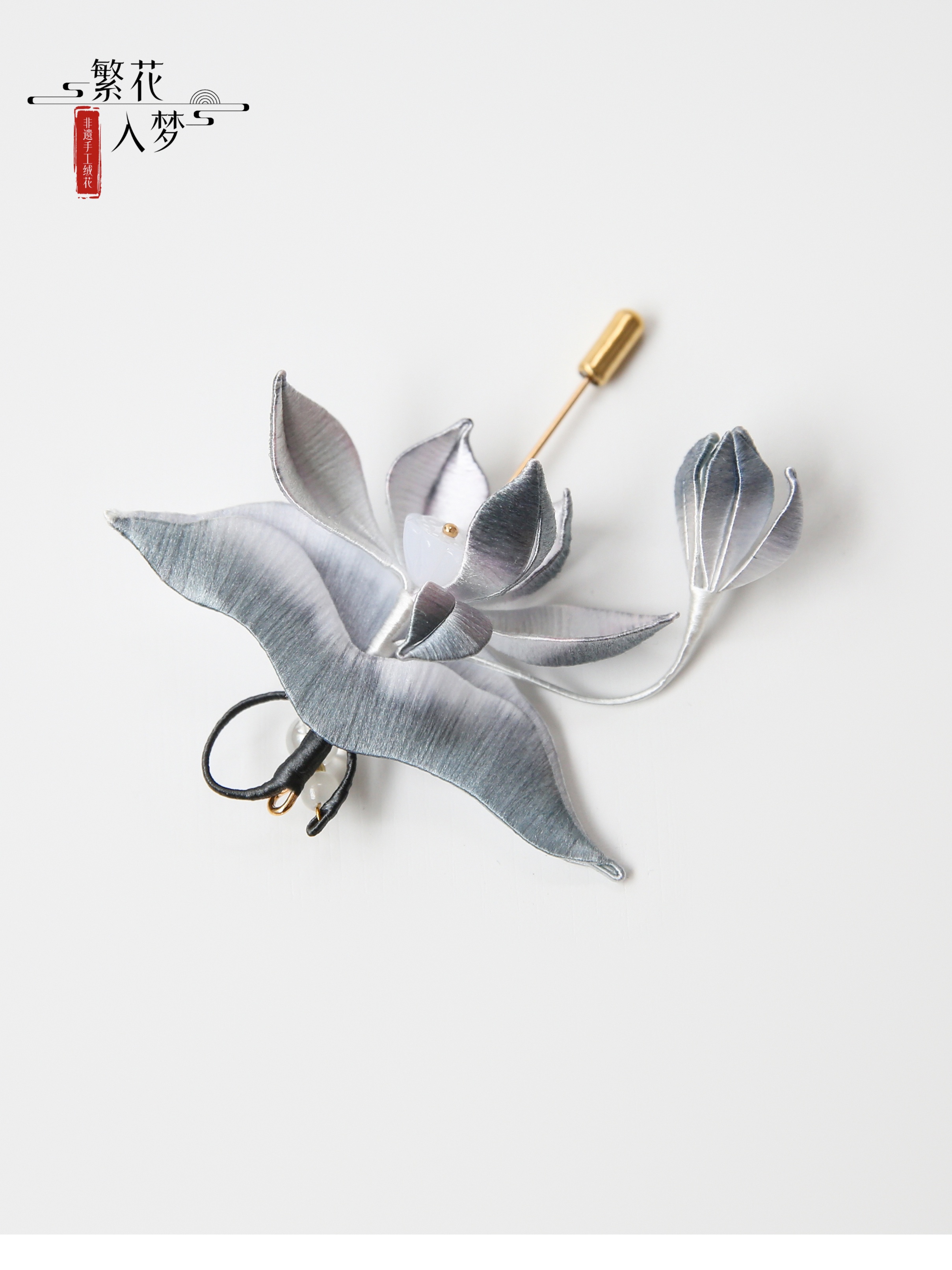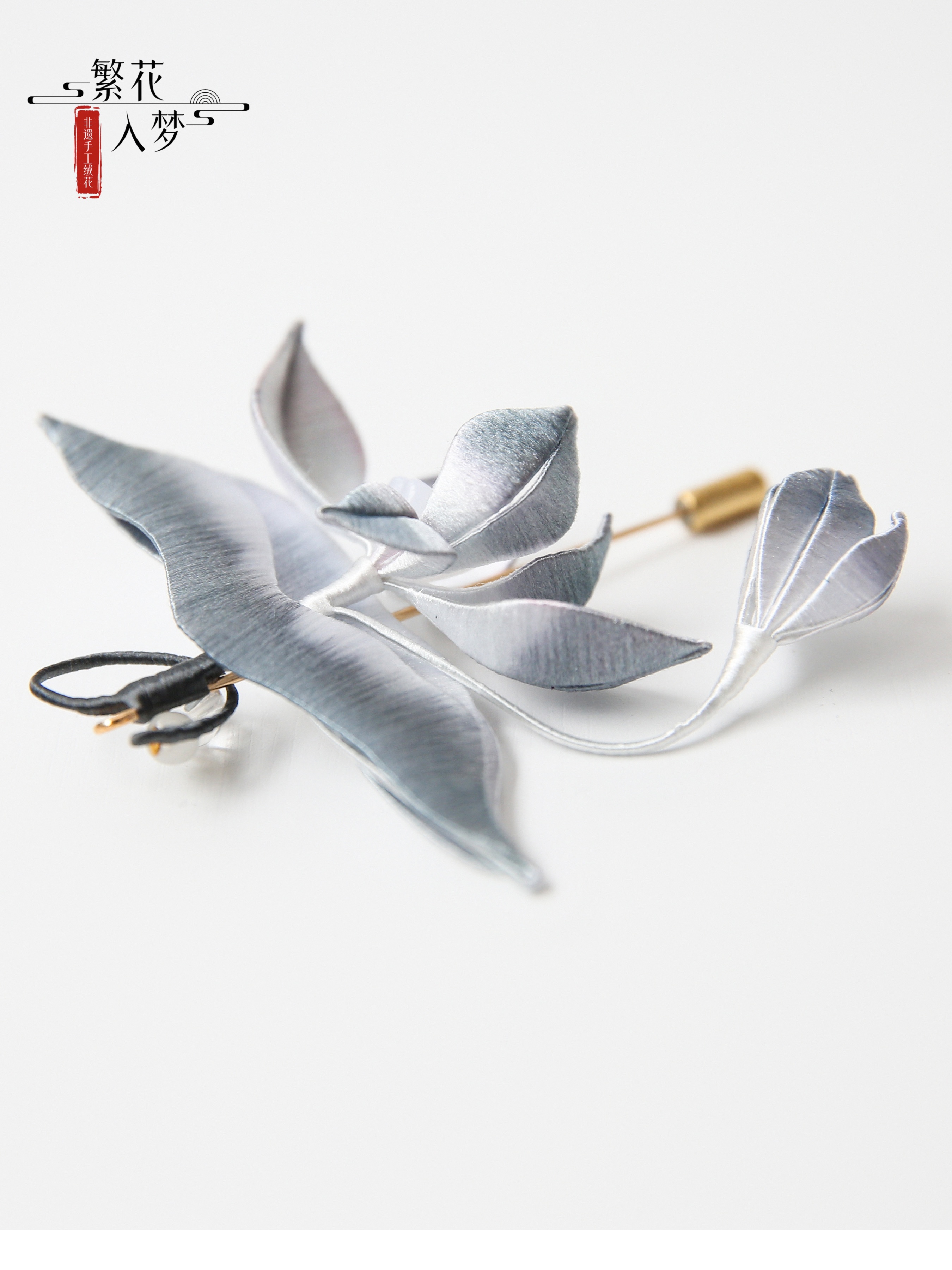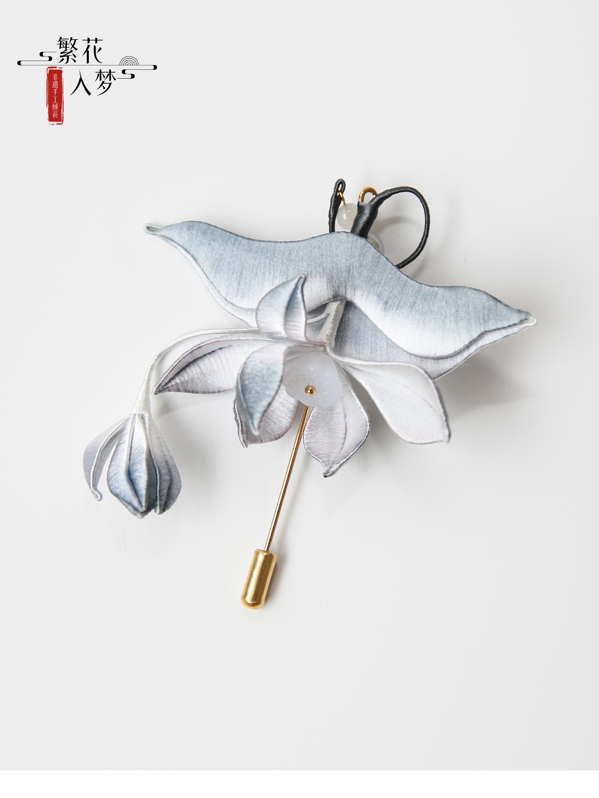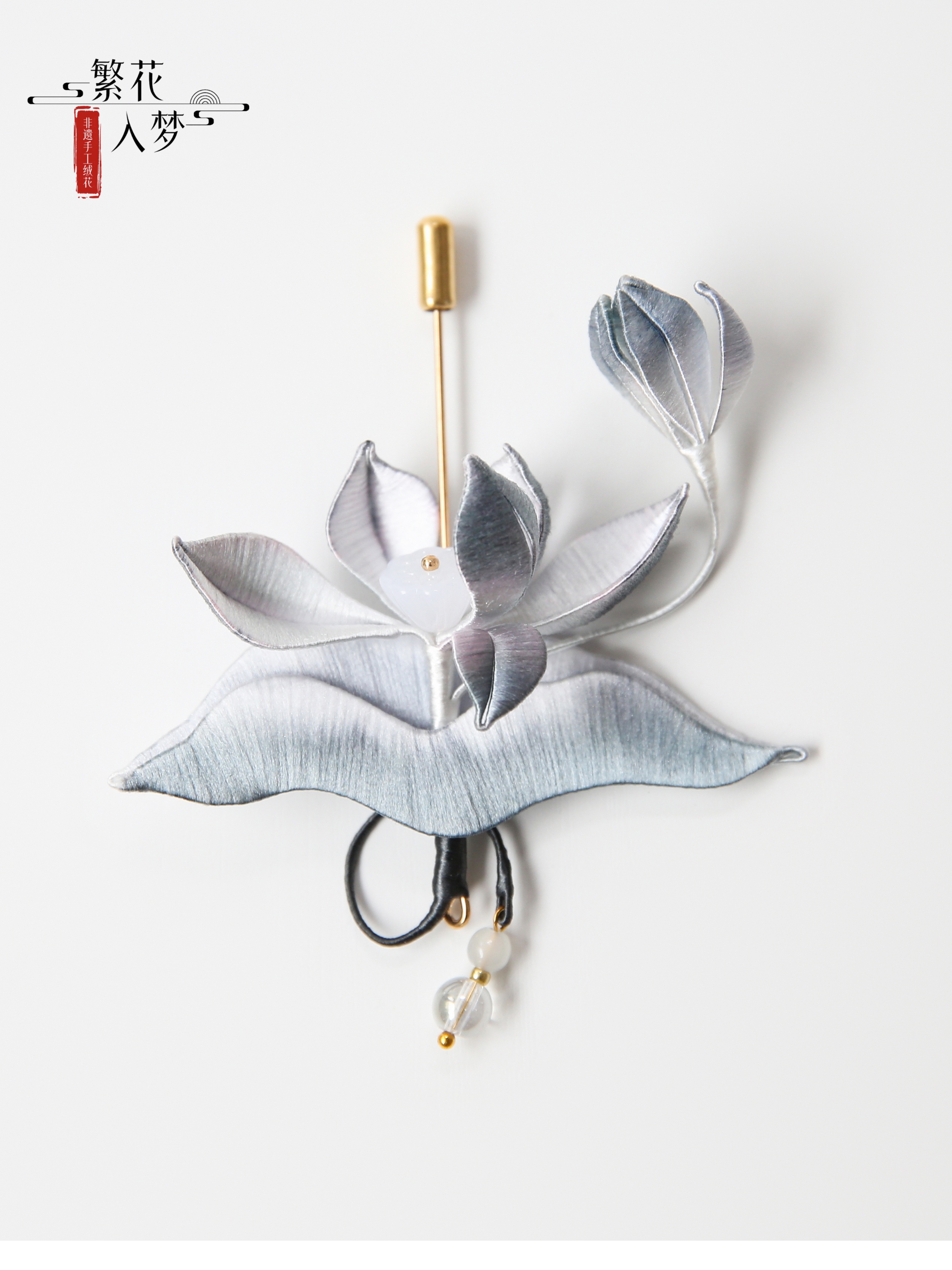 Intangible cultural heritage velvet flowers, pure handmade ink lotus brooches, hairpins, hairpins