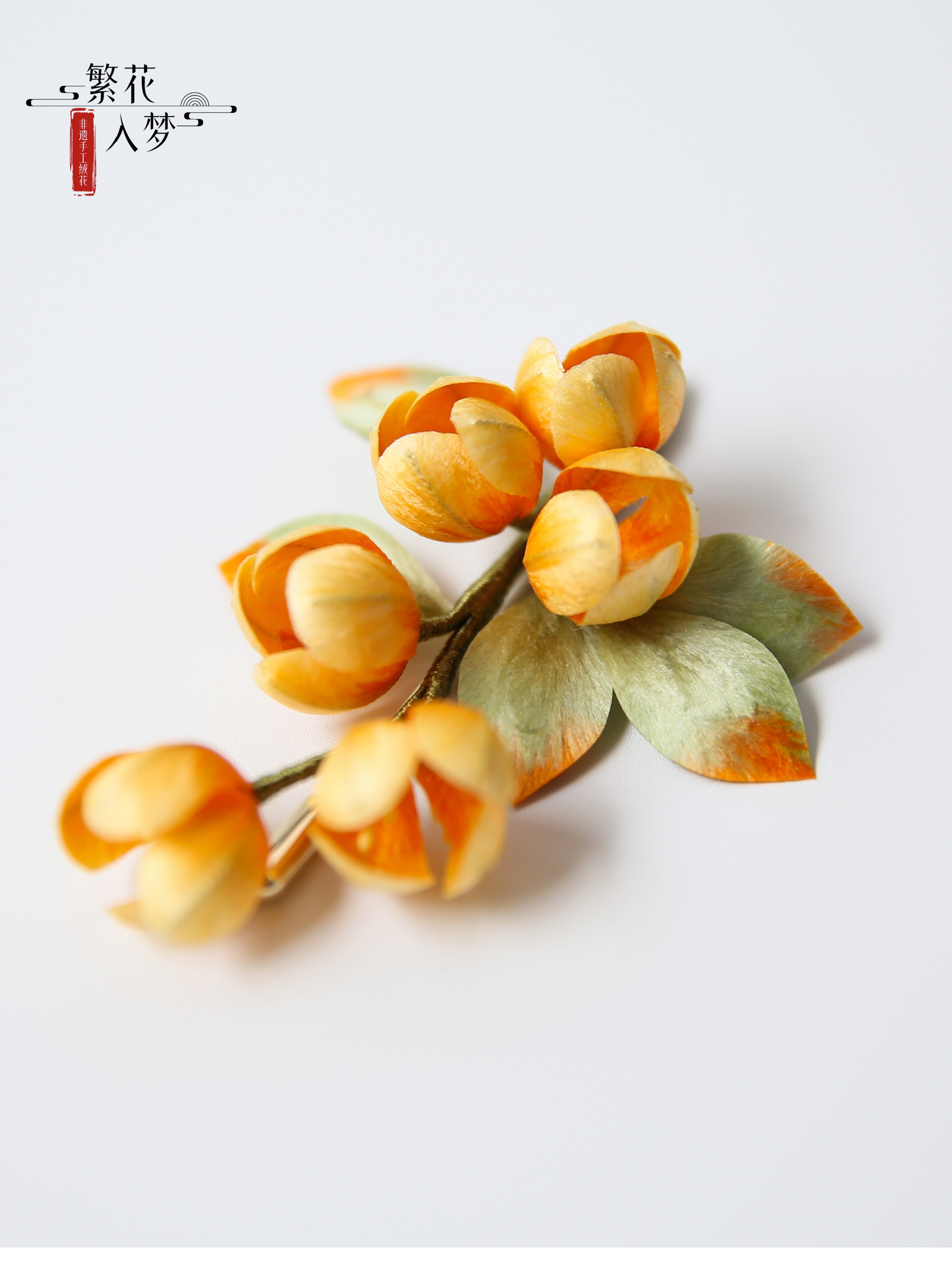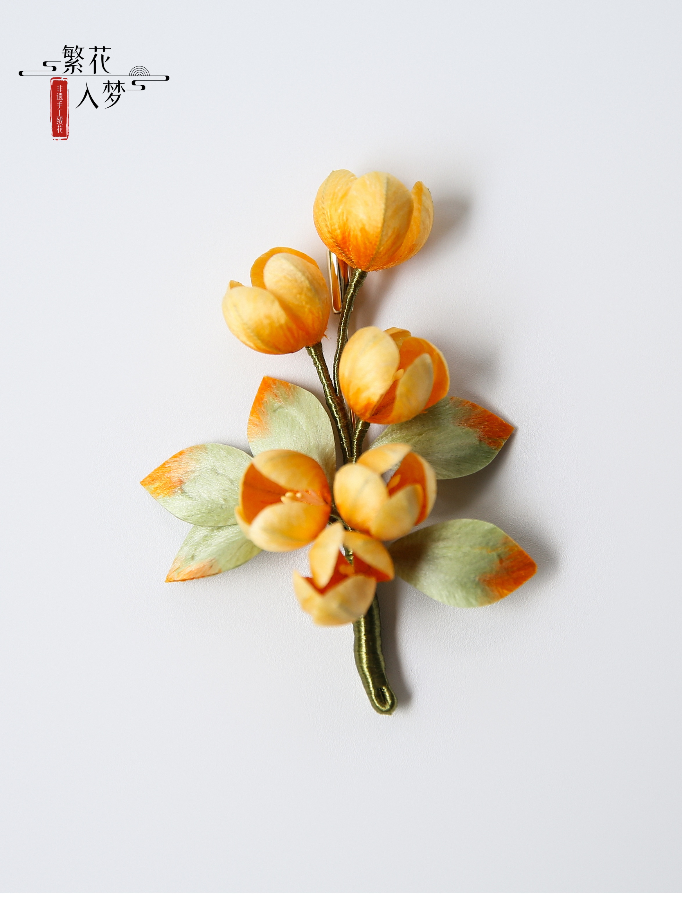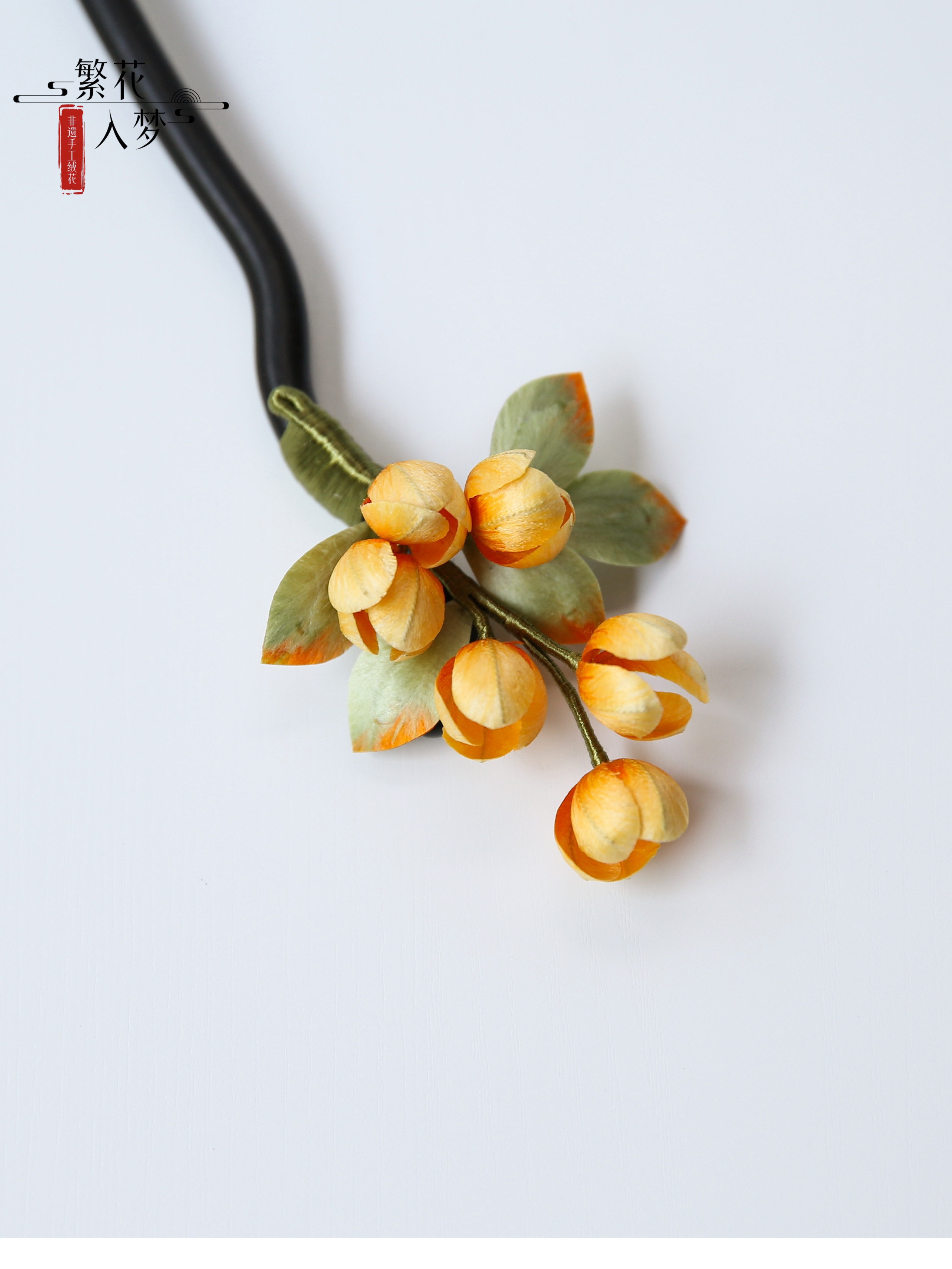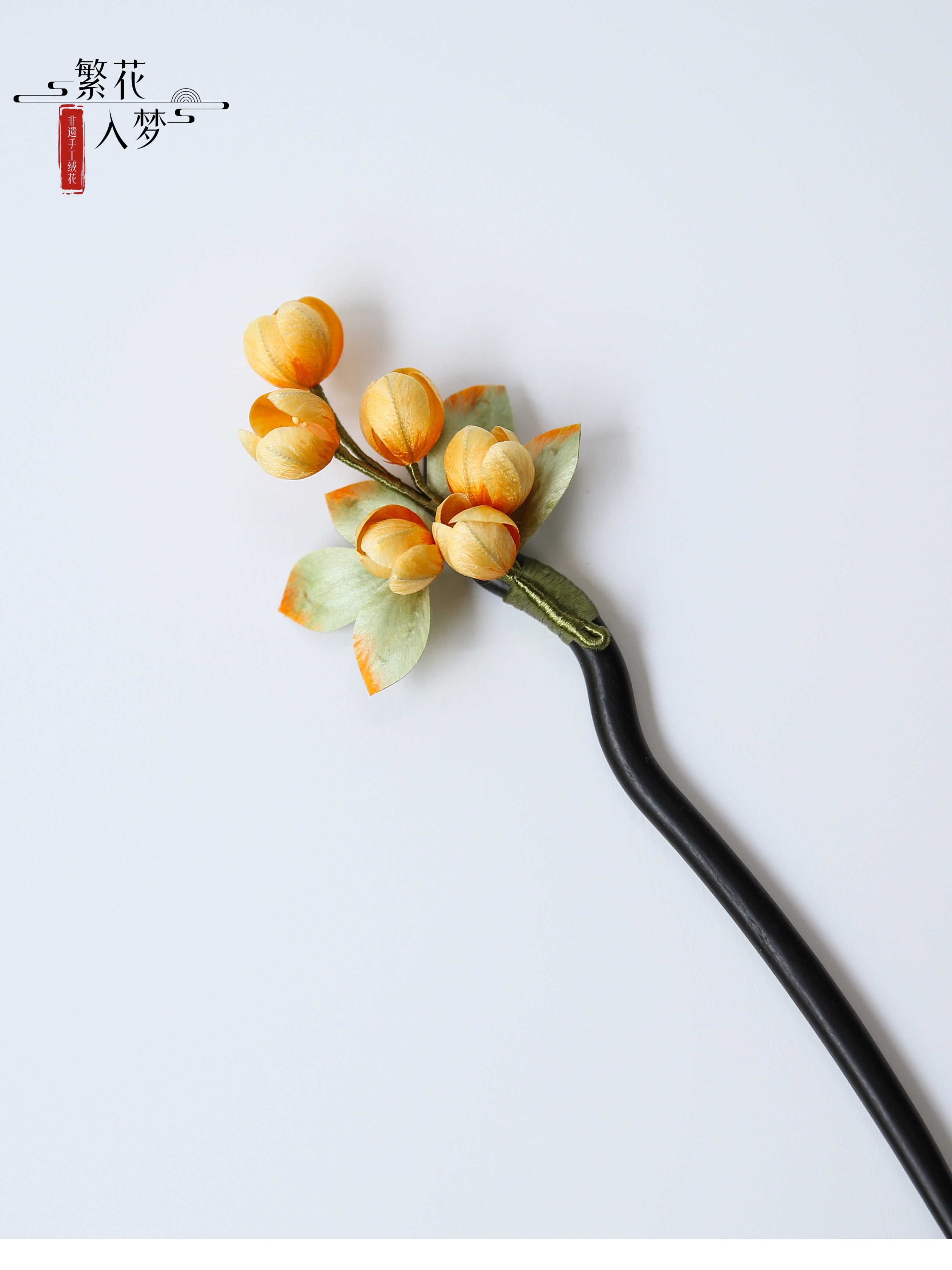 【Material】: Mulberry silk, color-preserving gold copper with/sandalwood hairpin