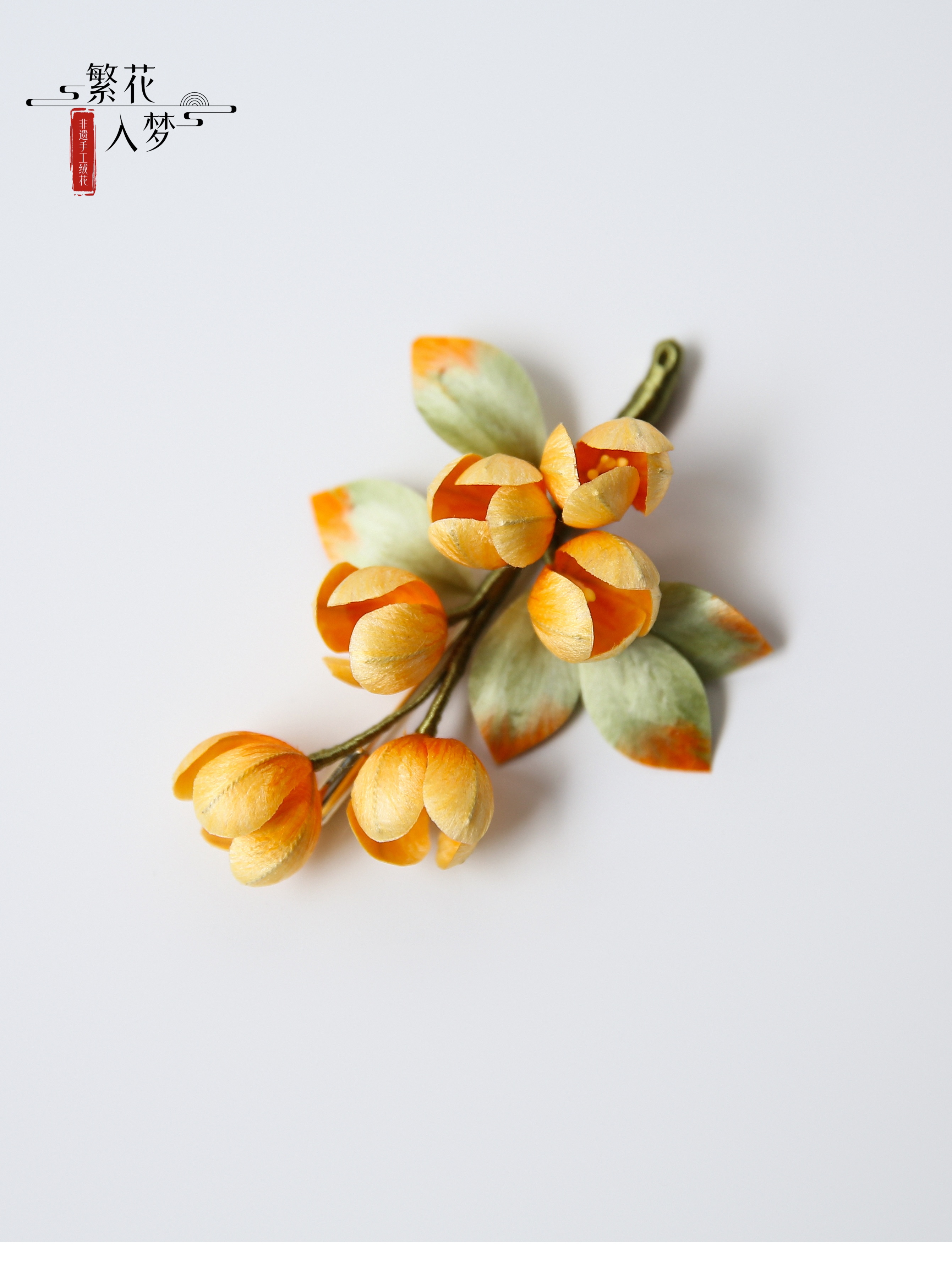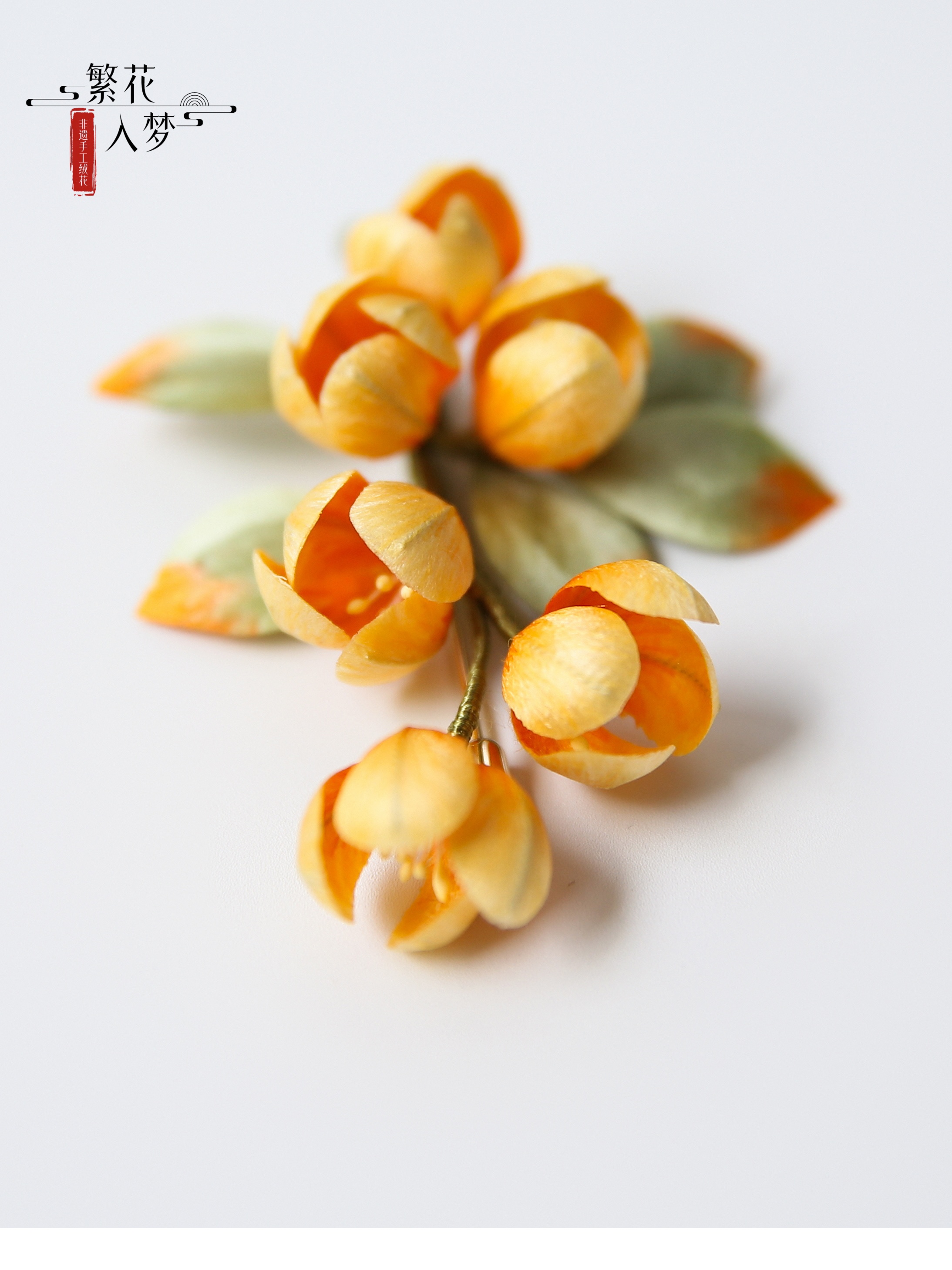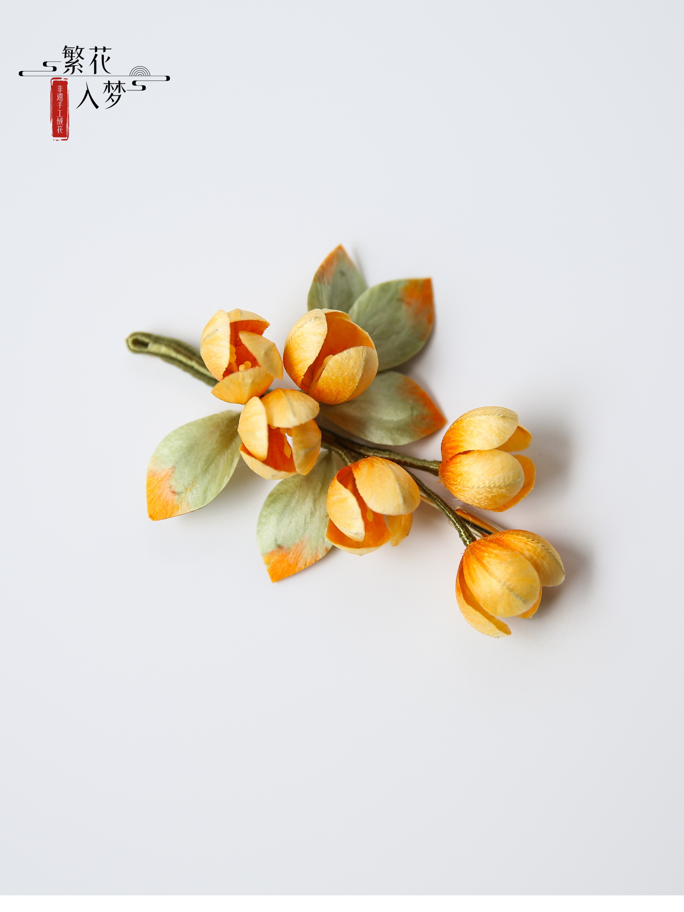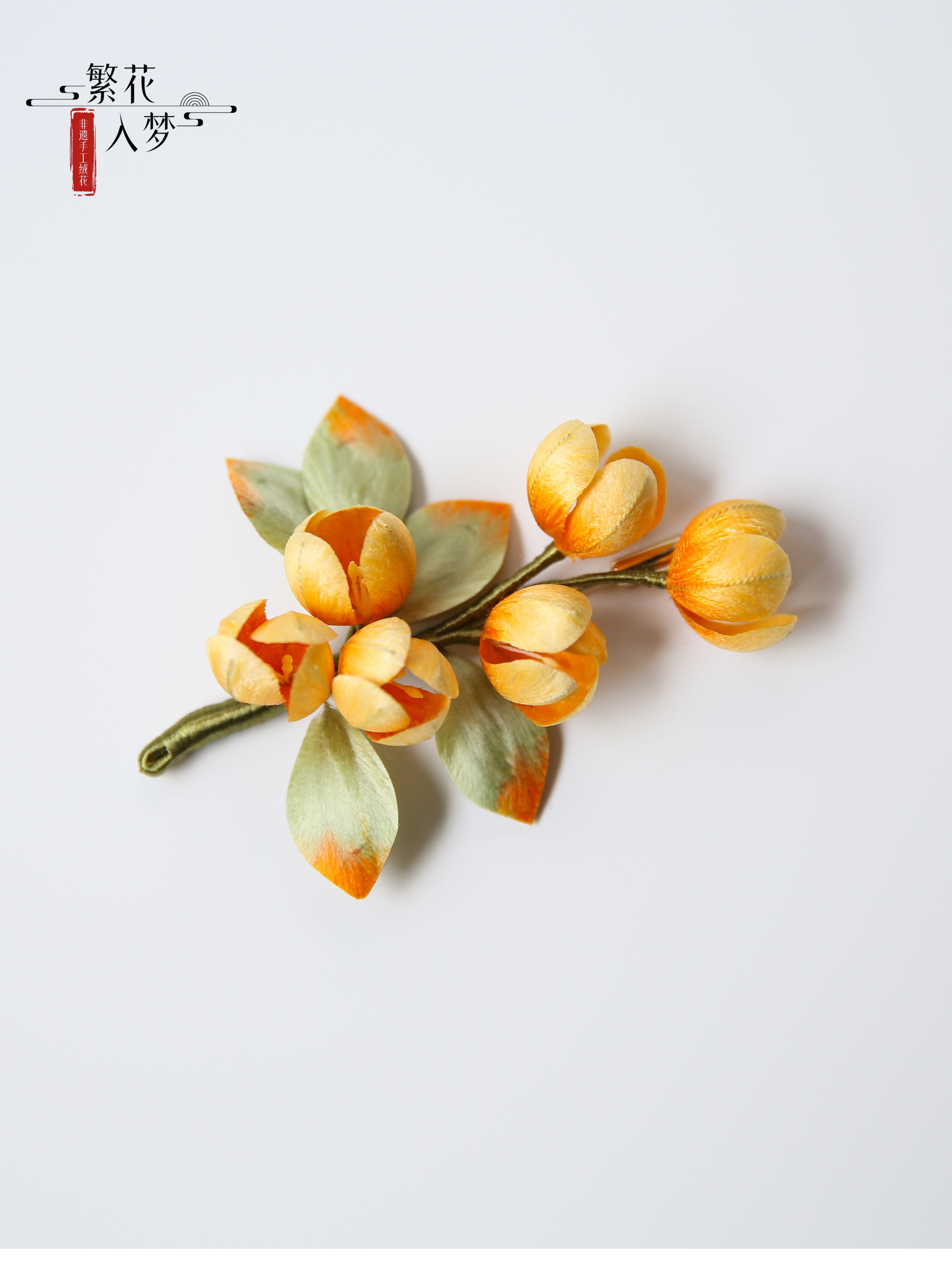 【Material】: Mulberry silk, color-preserving gold copper with/sandalwood hairpin