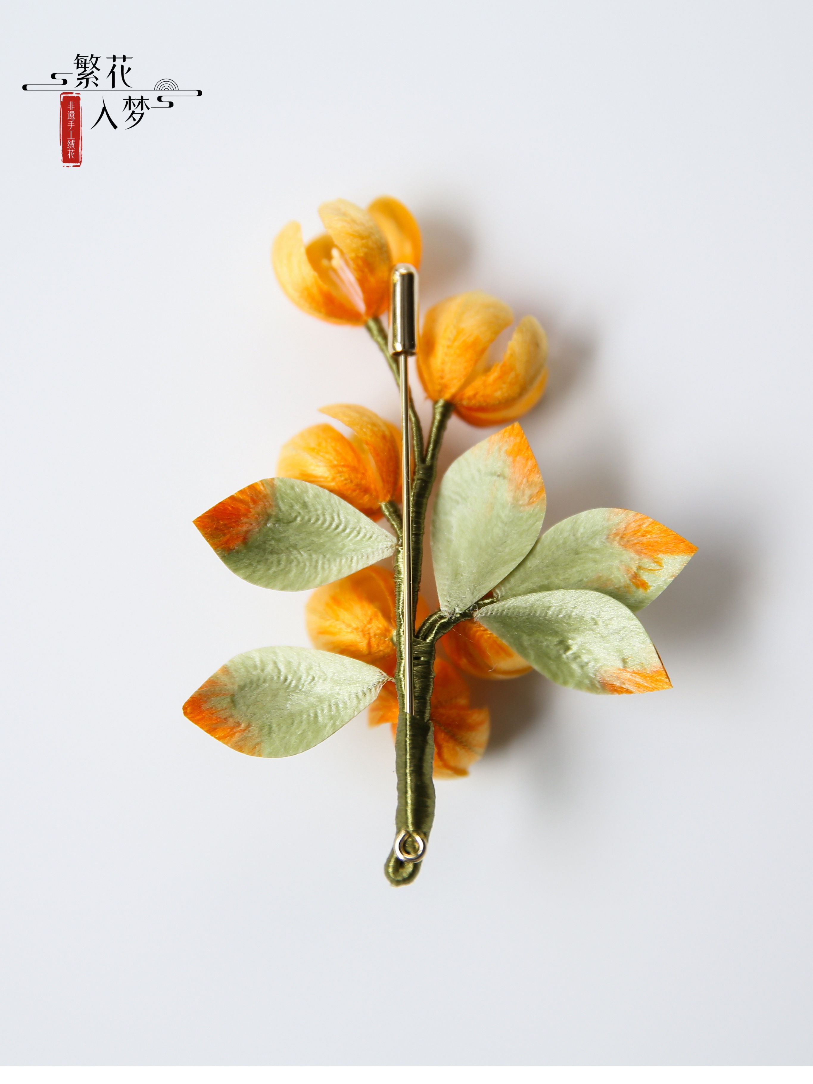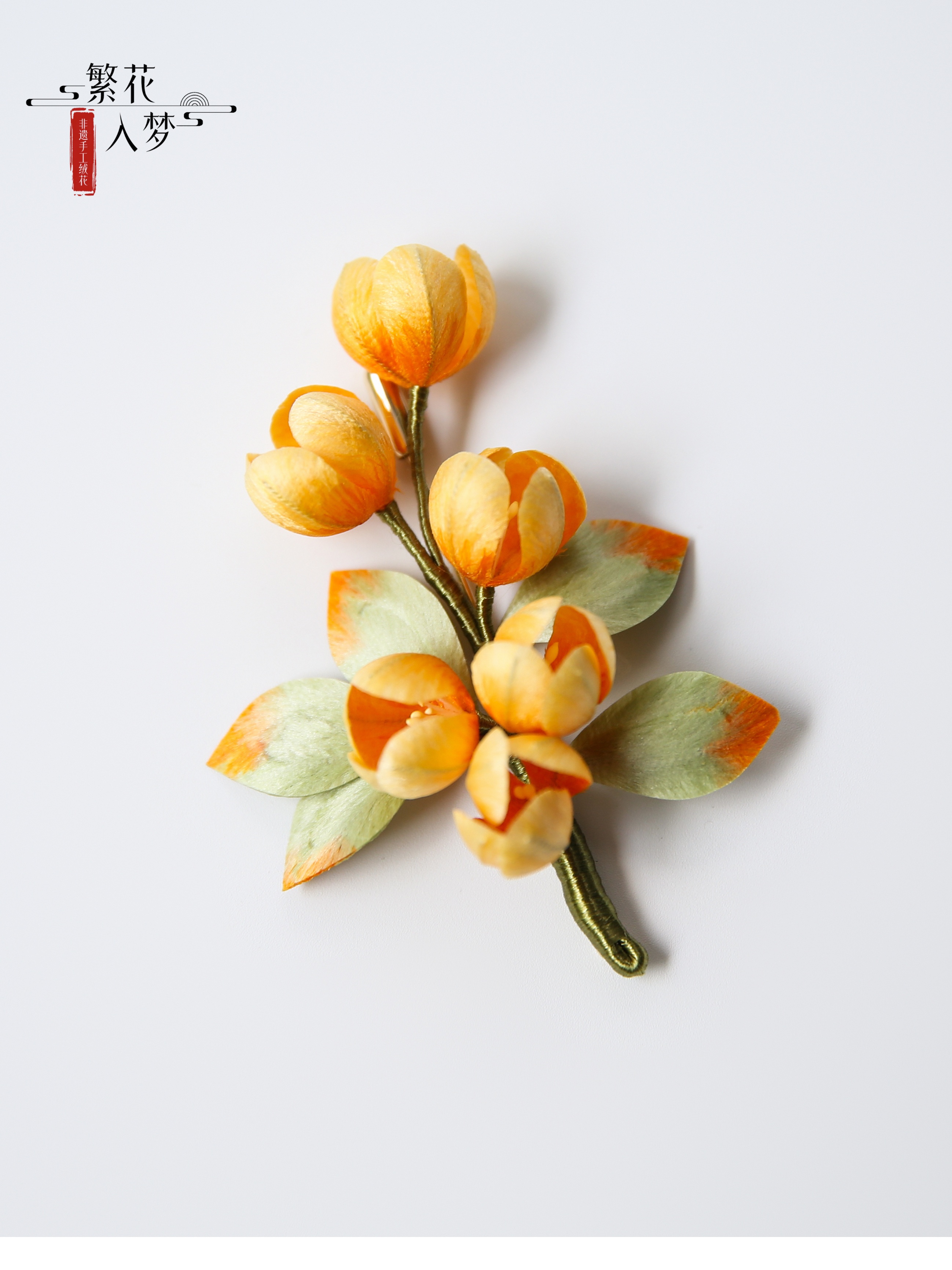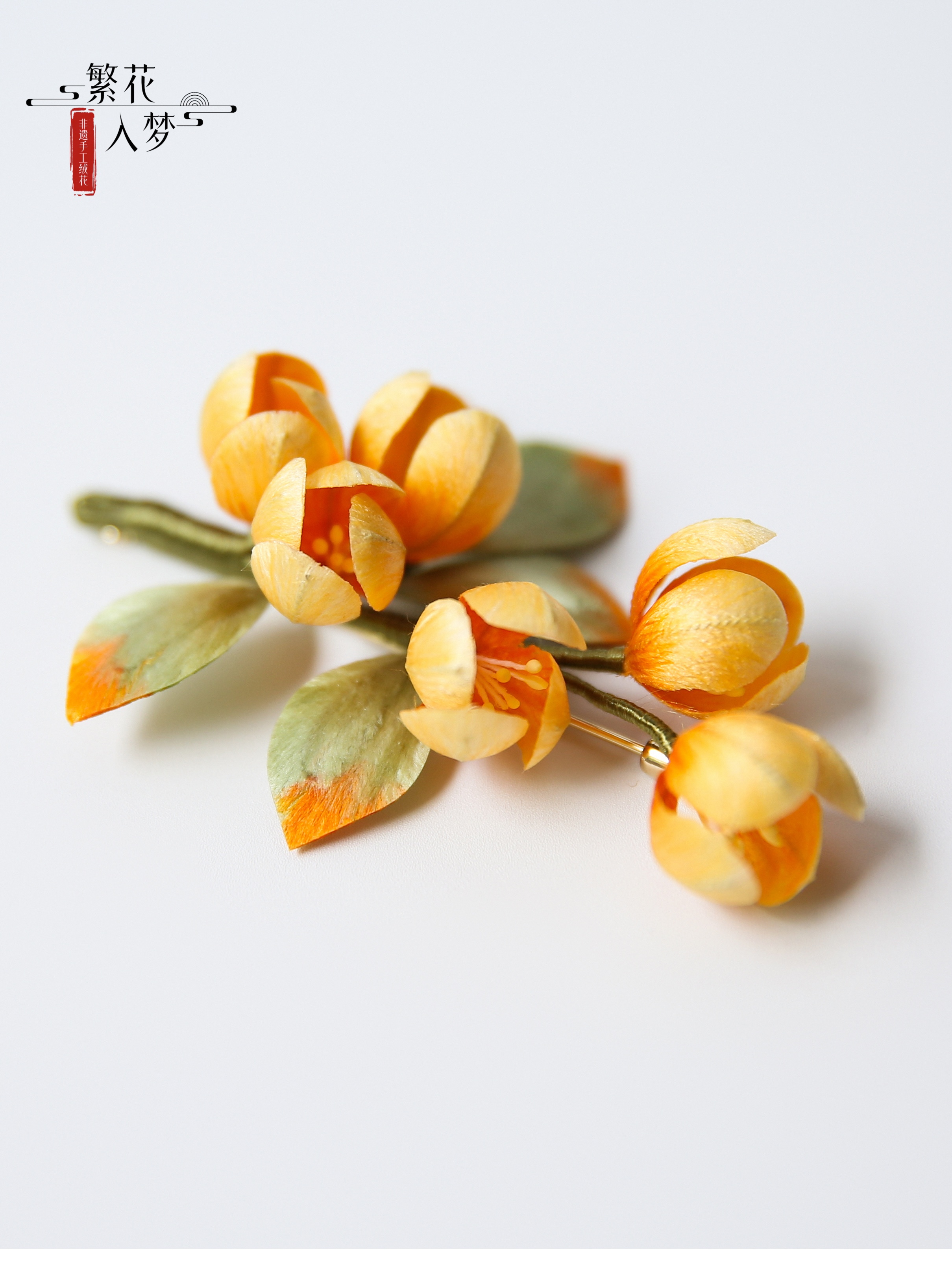 Intangible cultural heritage velvet flowers, pure handmade silk hanging flower brooches and hairpins