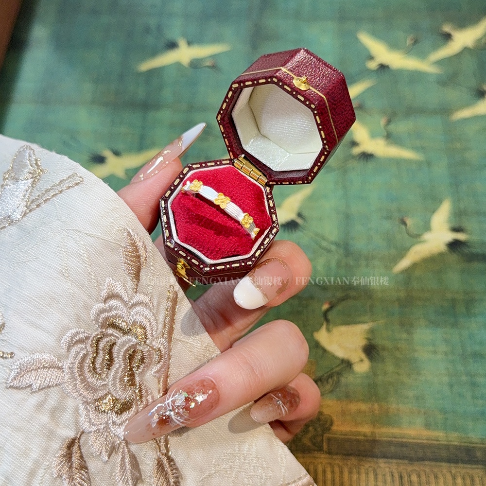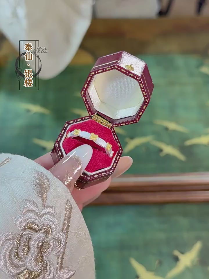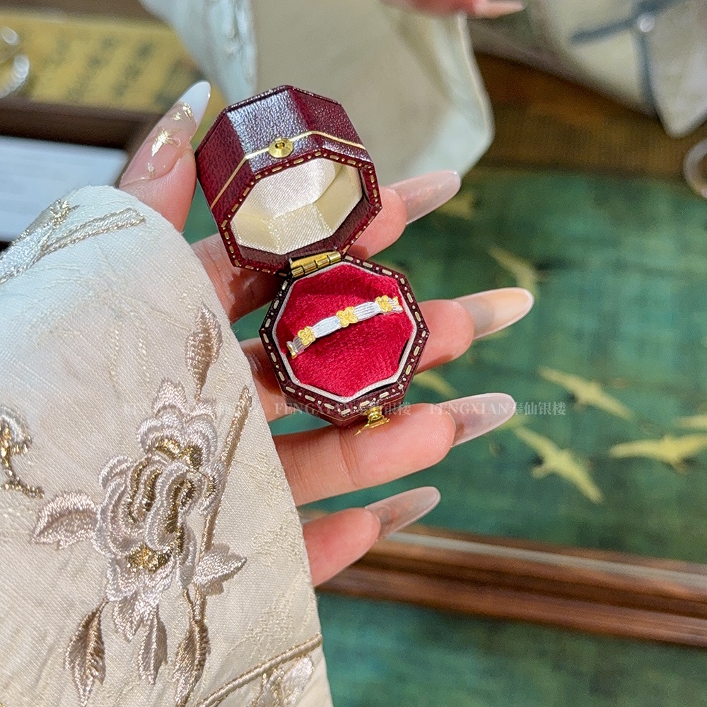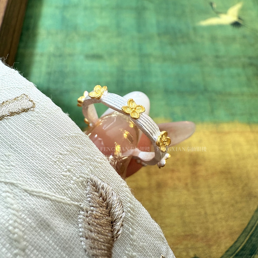 "Osmanthus Flower Falling" 999.9 pure silver ring, ancient gold-painted ring