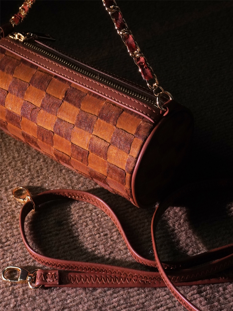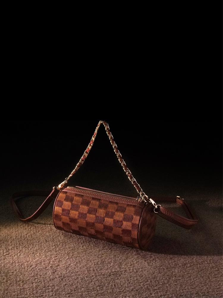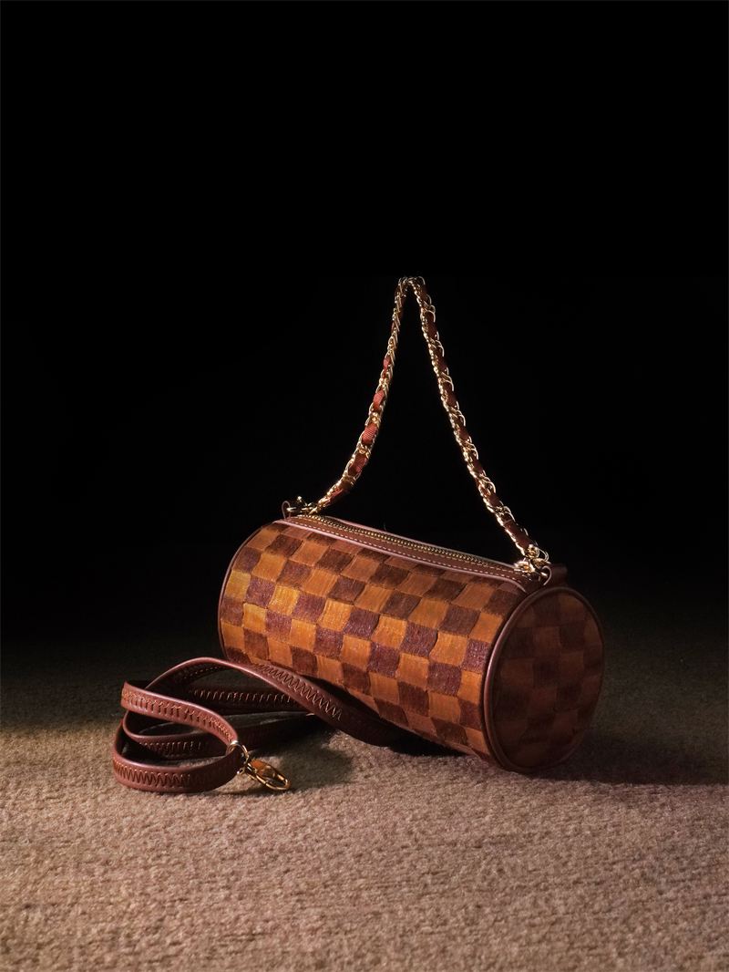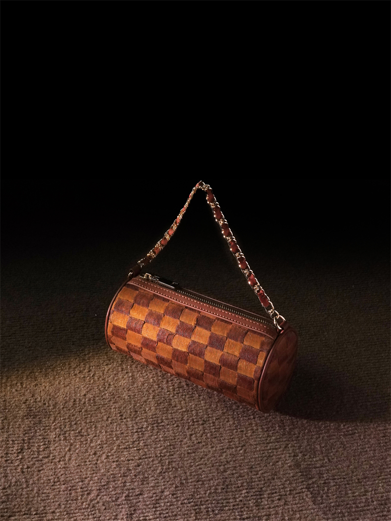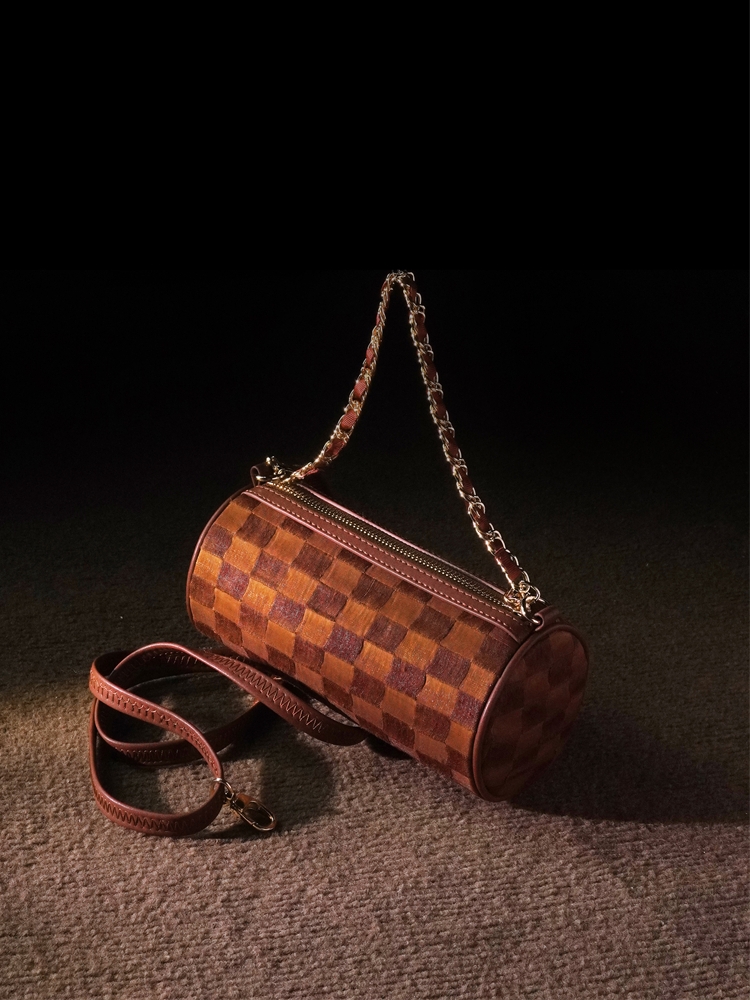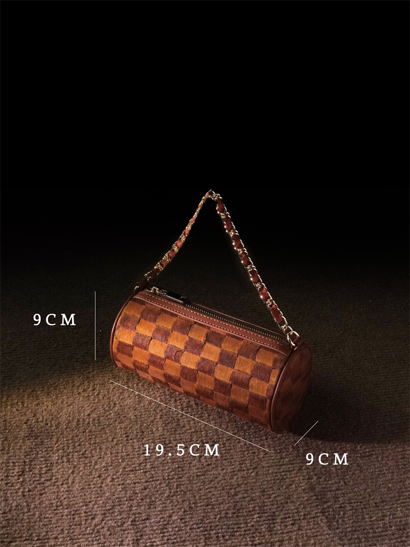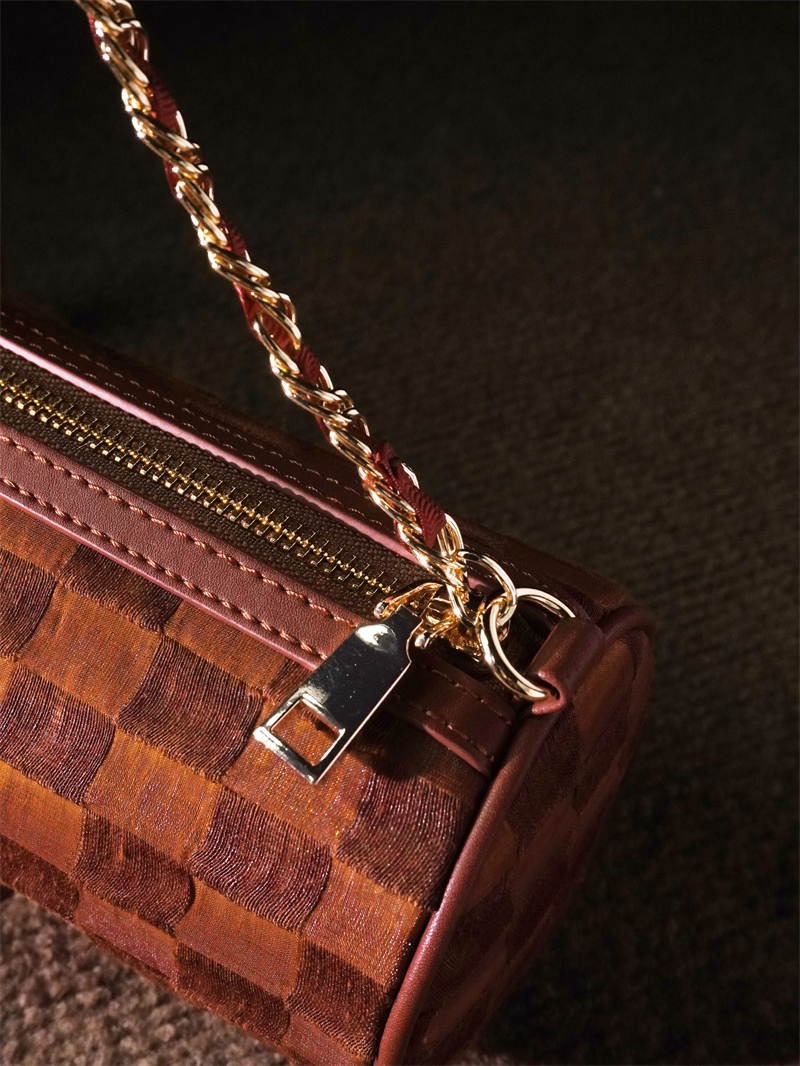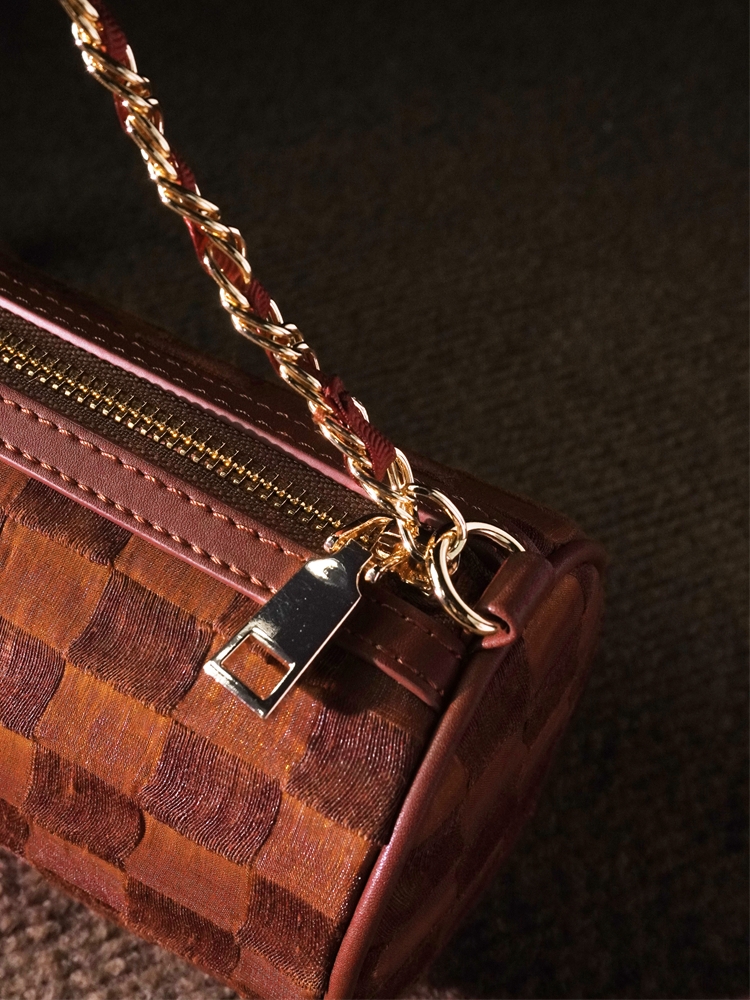 Ramie mulberry silk red cloud yarn coffee color handbag, cylindrical women's bag