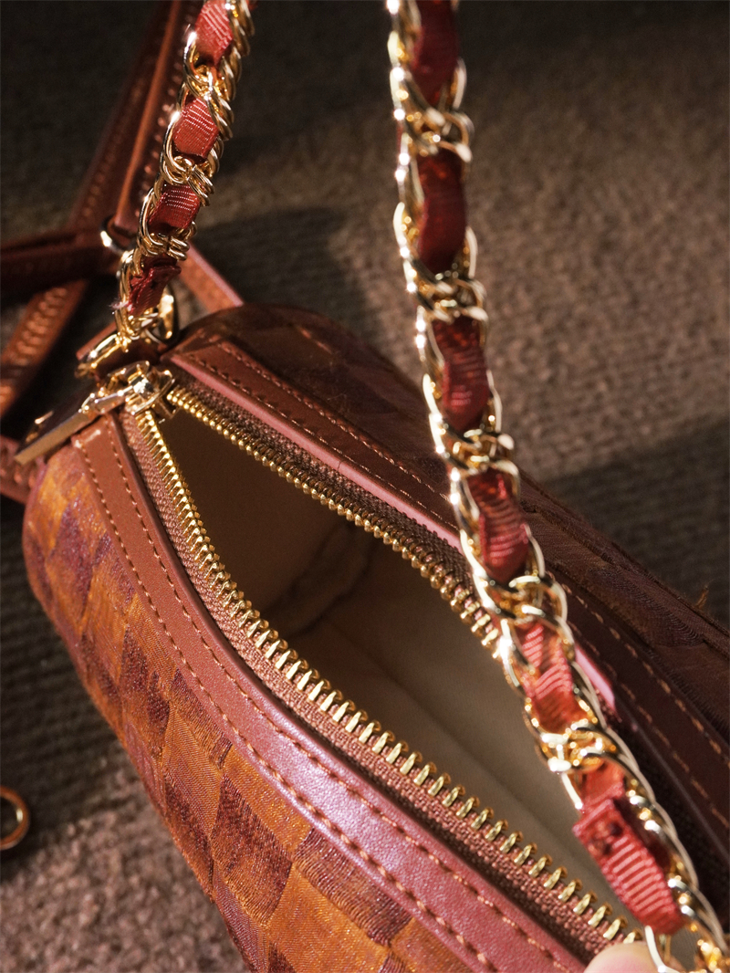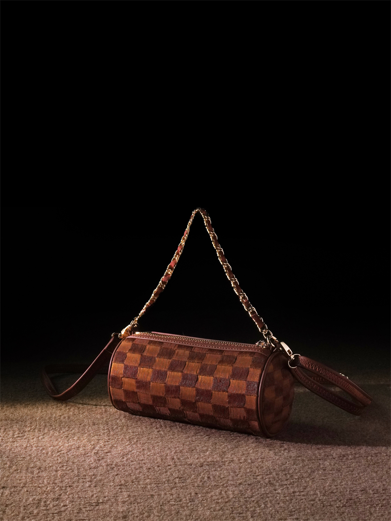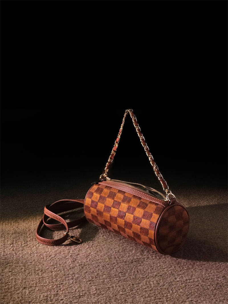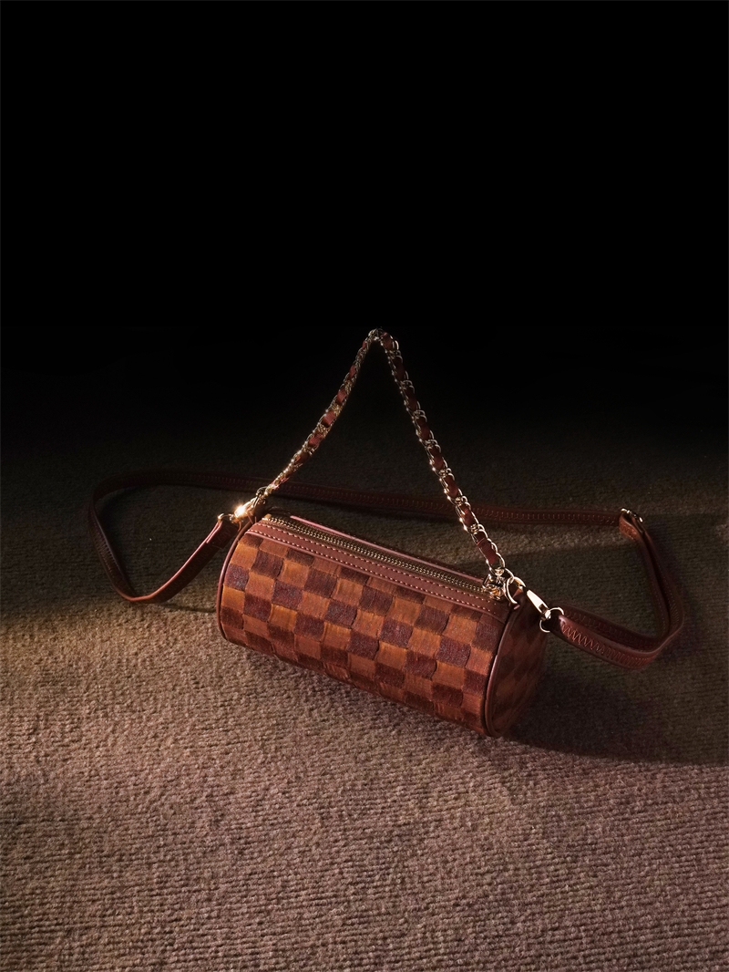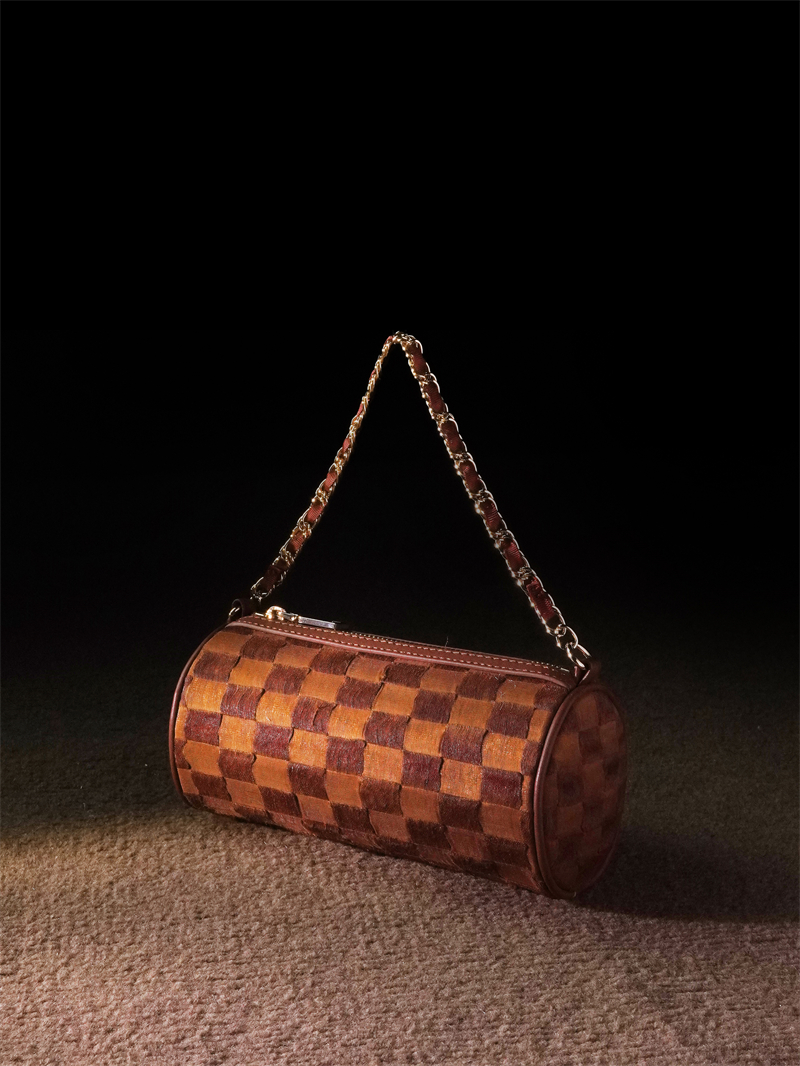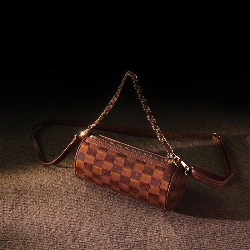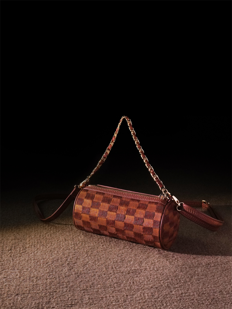 Ramie mulberry silk red cloud yarn coffee color handbag, cylindrical women's bag