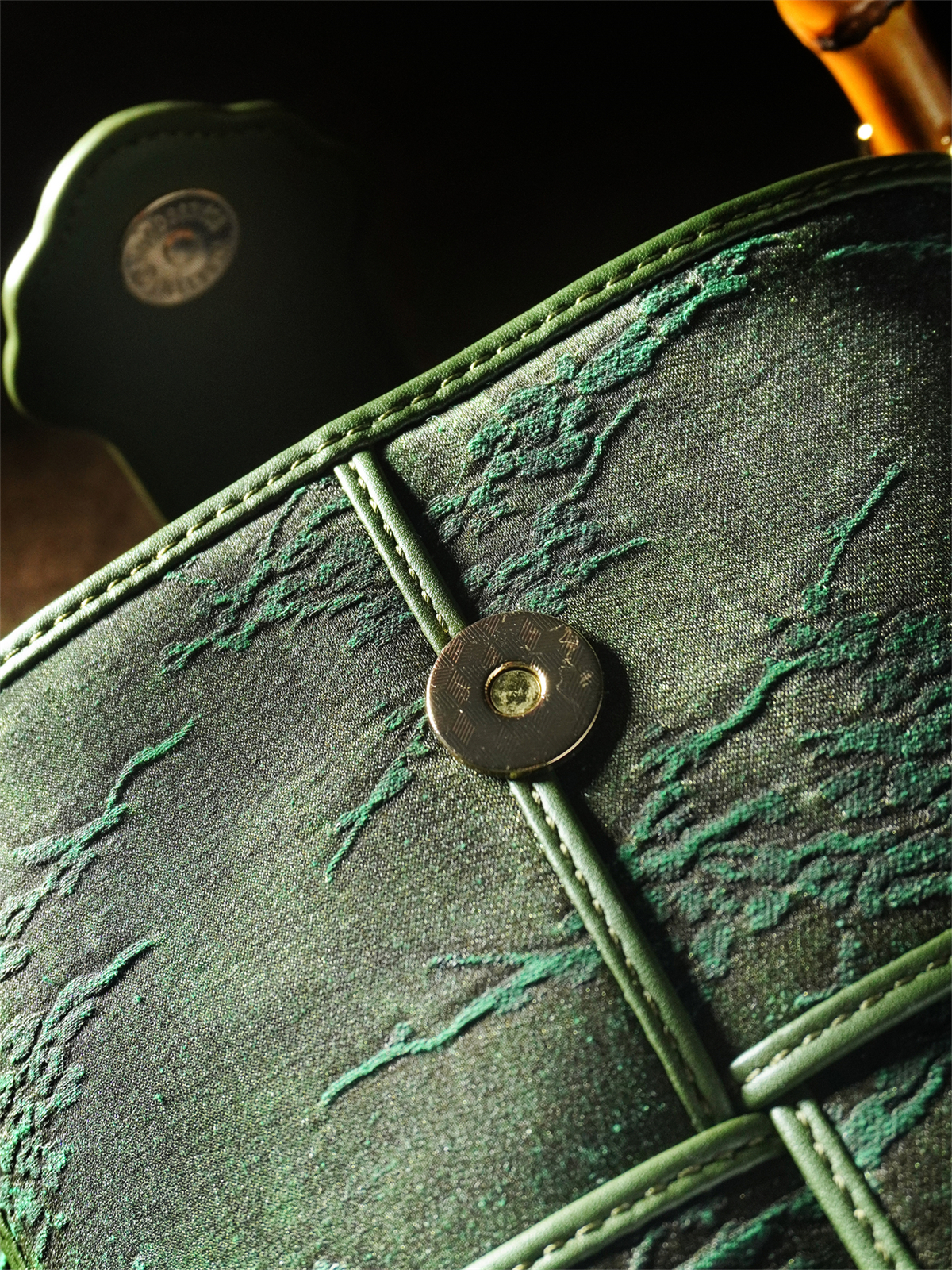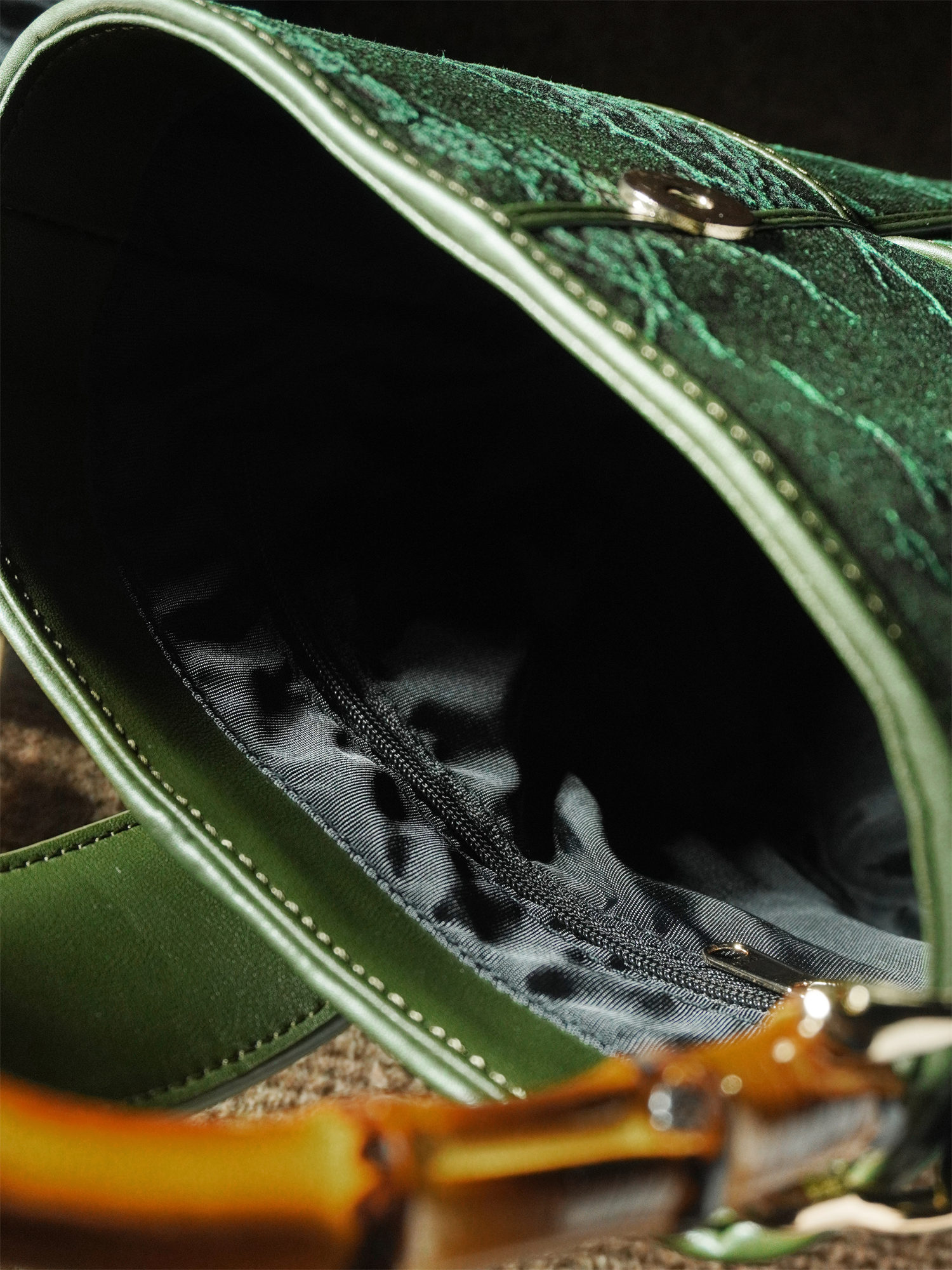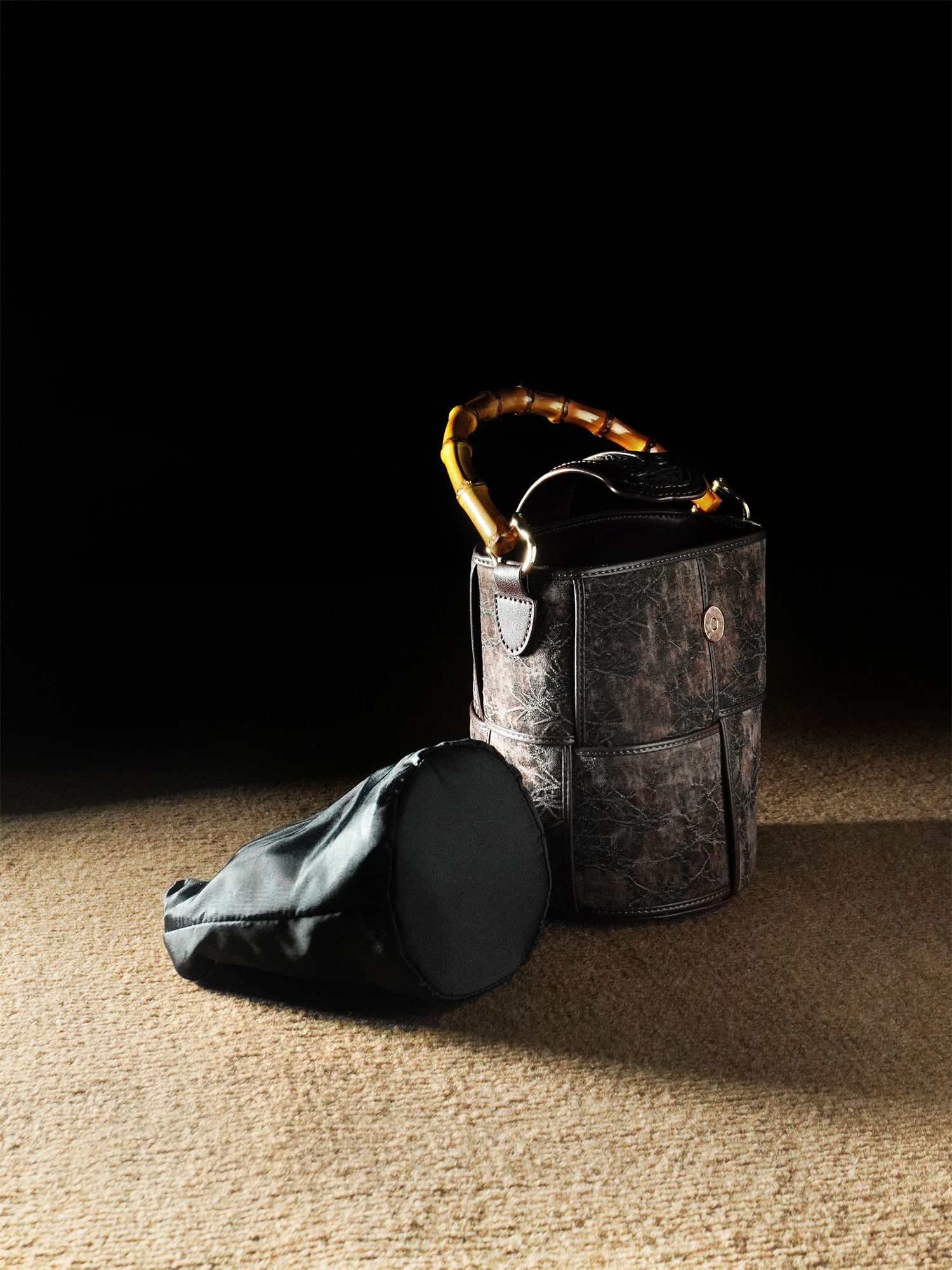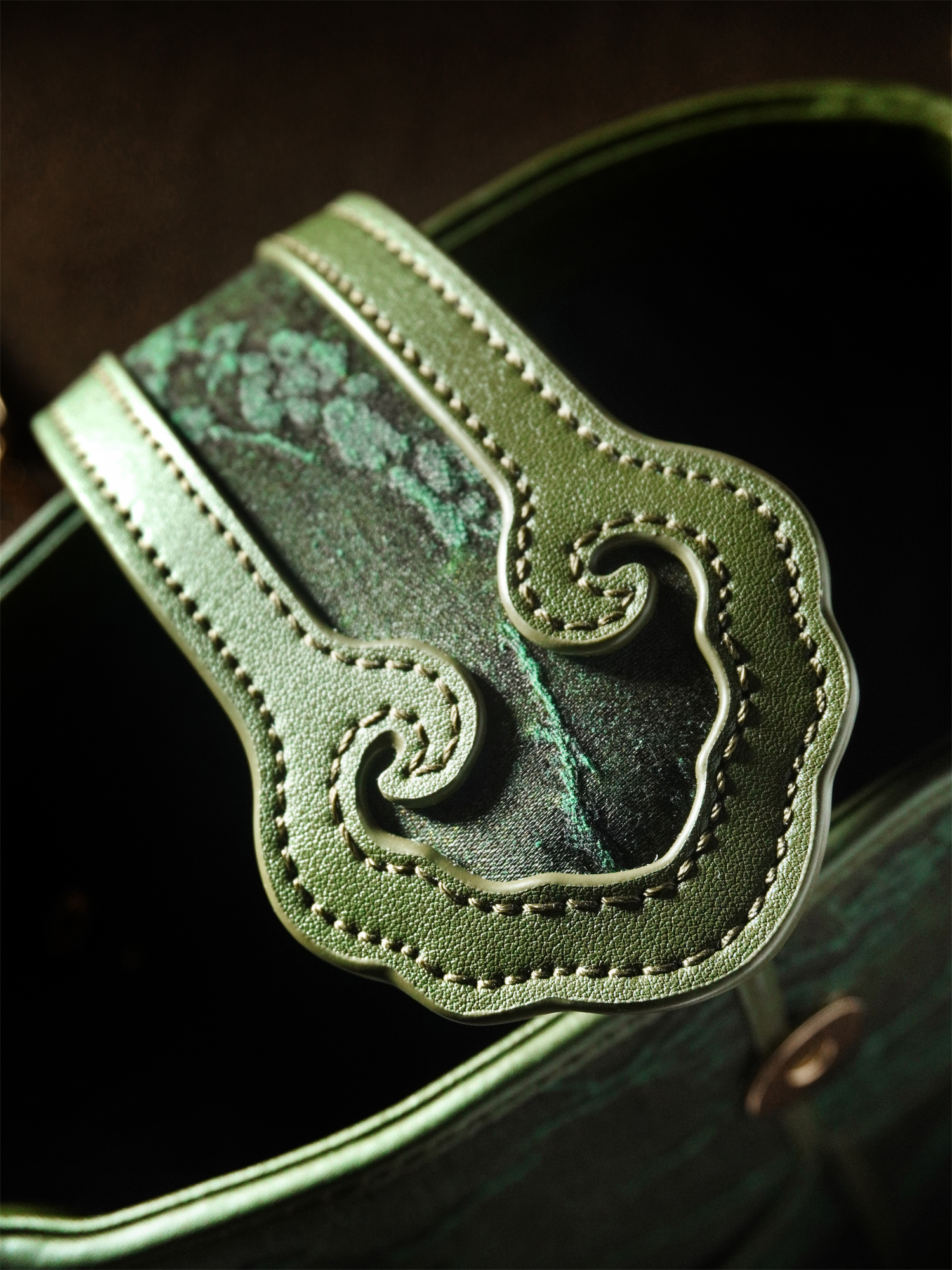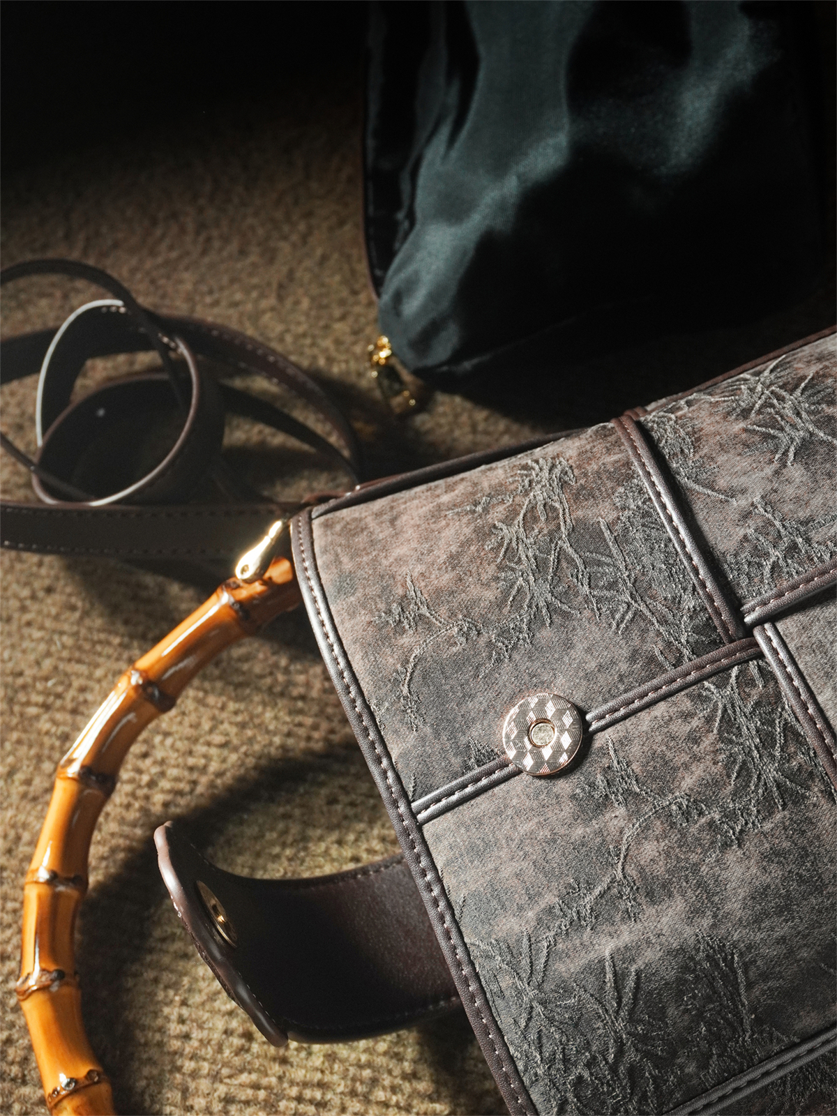 Xiangyunsha bucket bag, bamboo-knotted cowhide shoulder bag for women