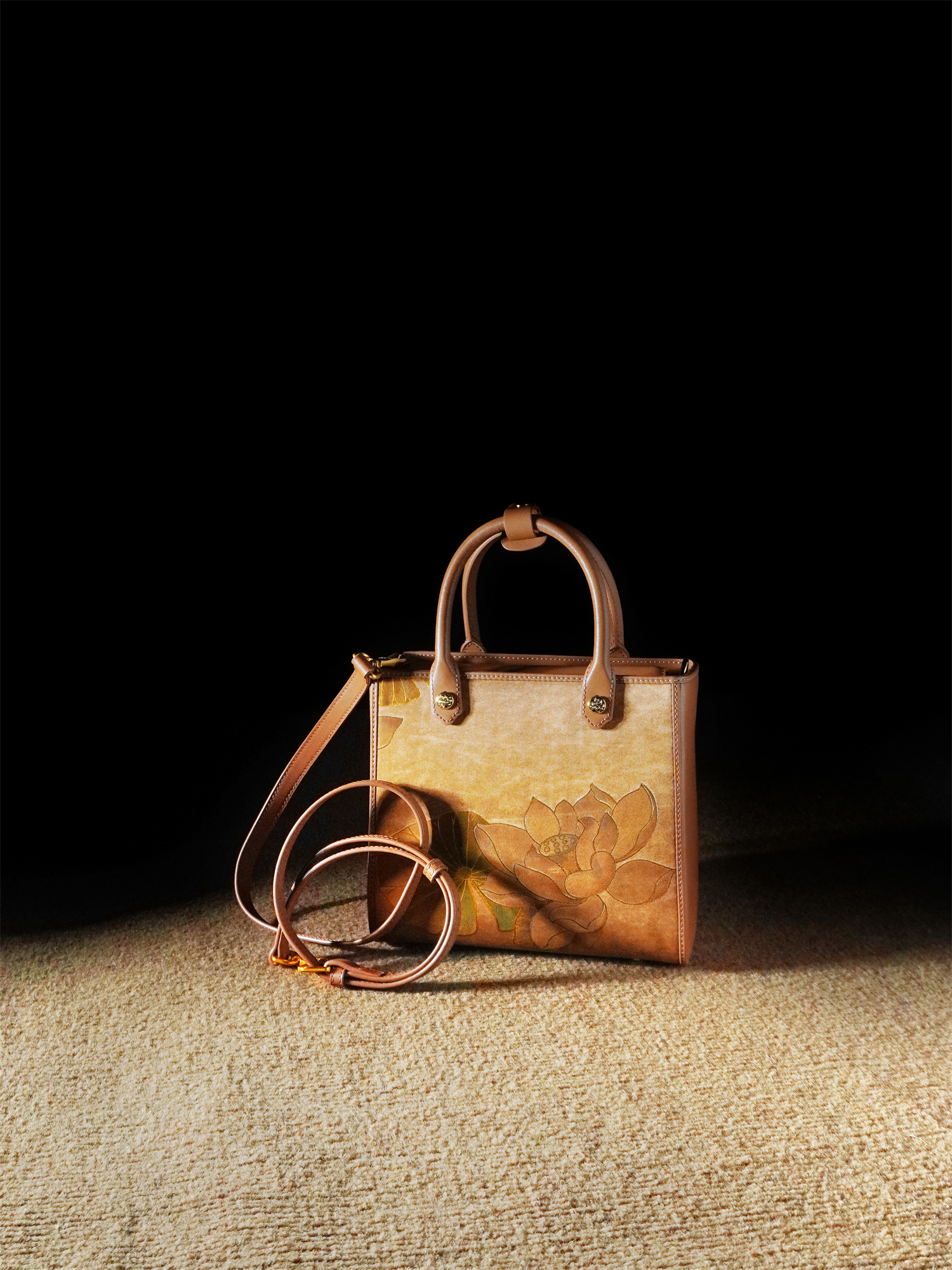 Xiangyunsha cowhide handbag, lotus crossbody commuter bag