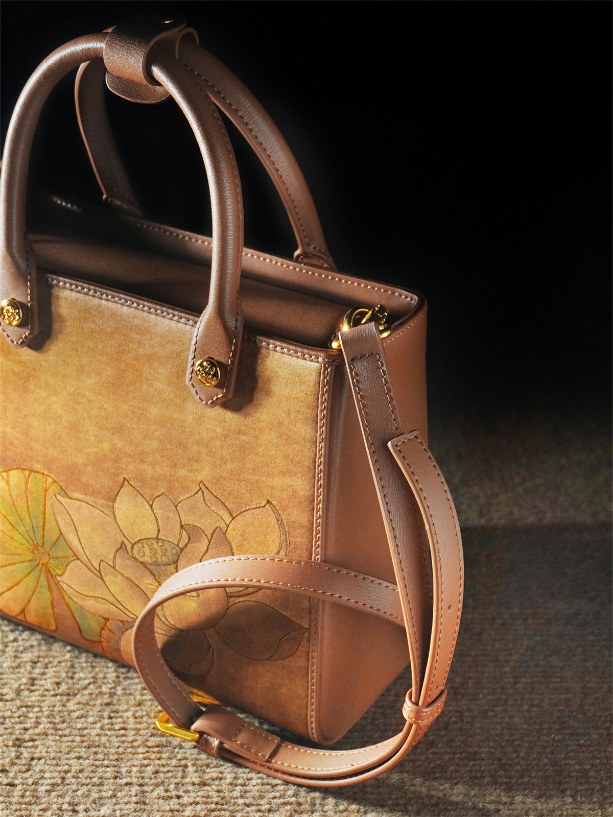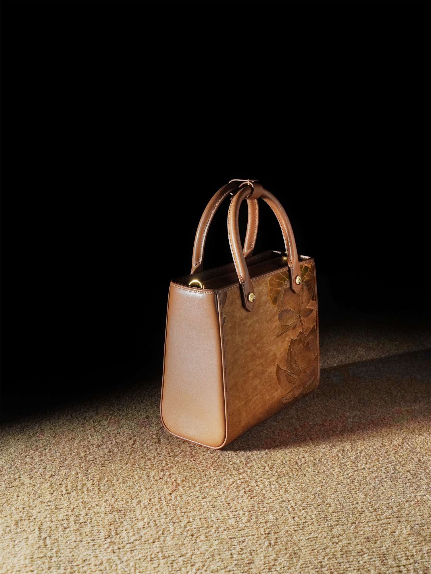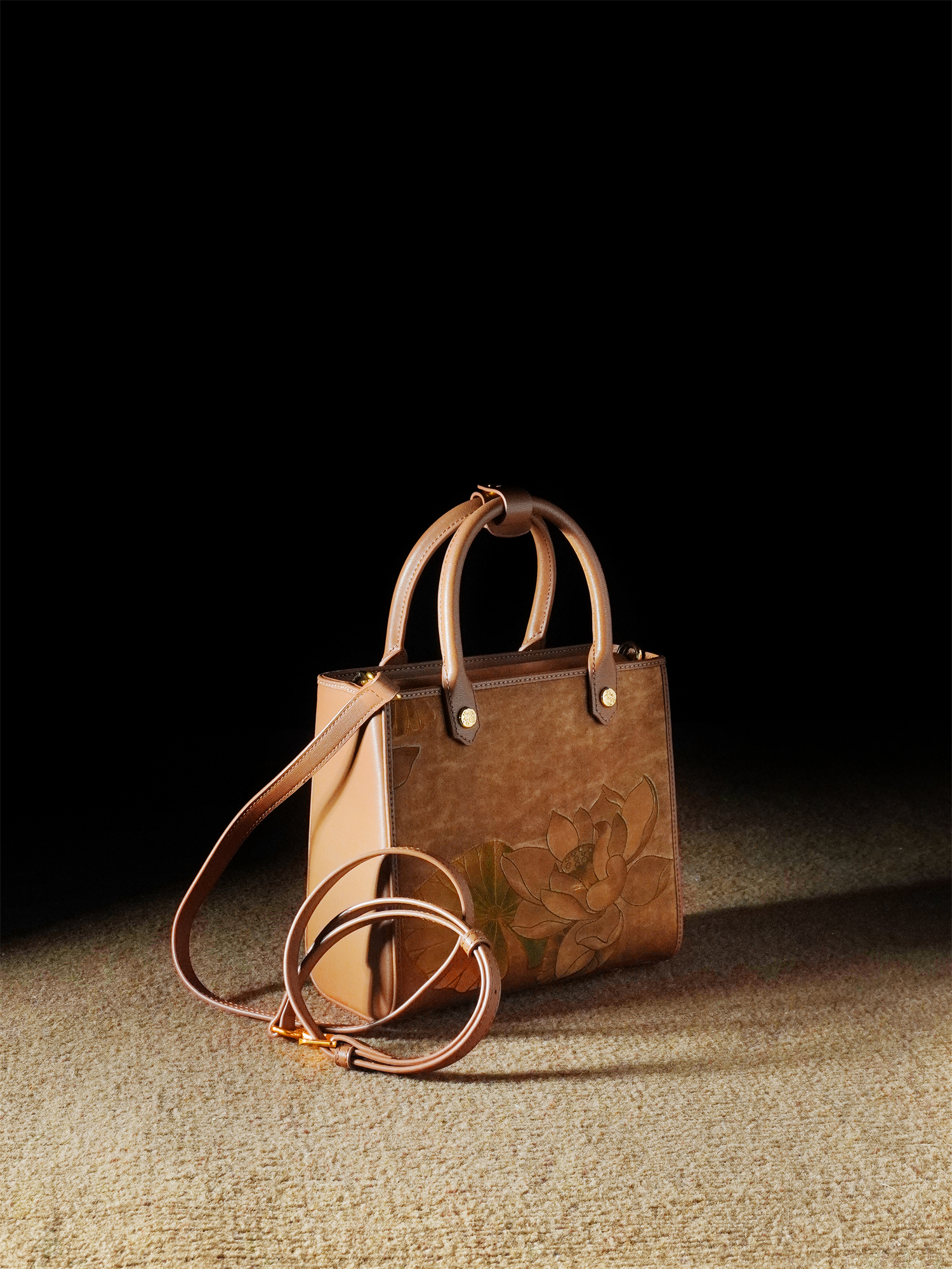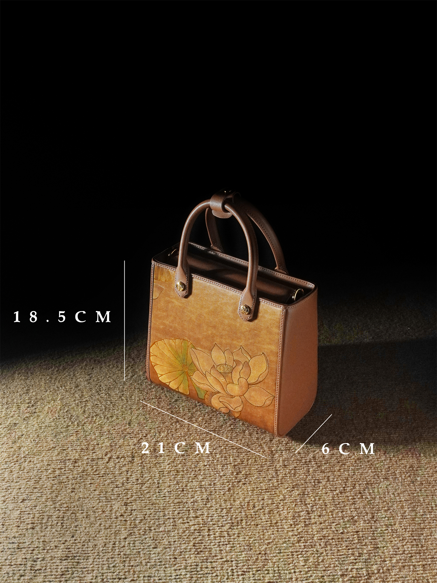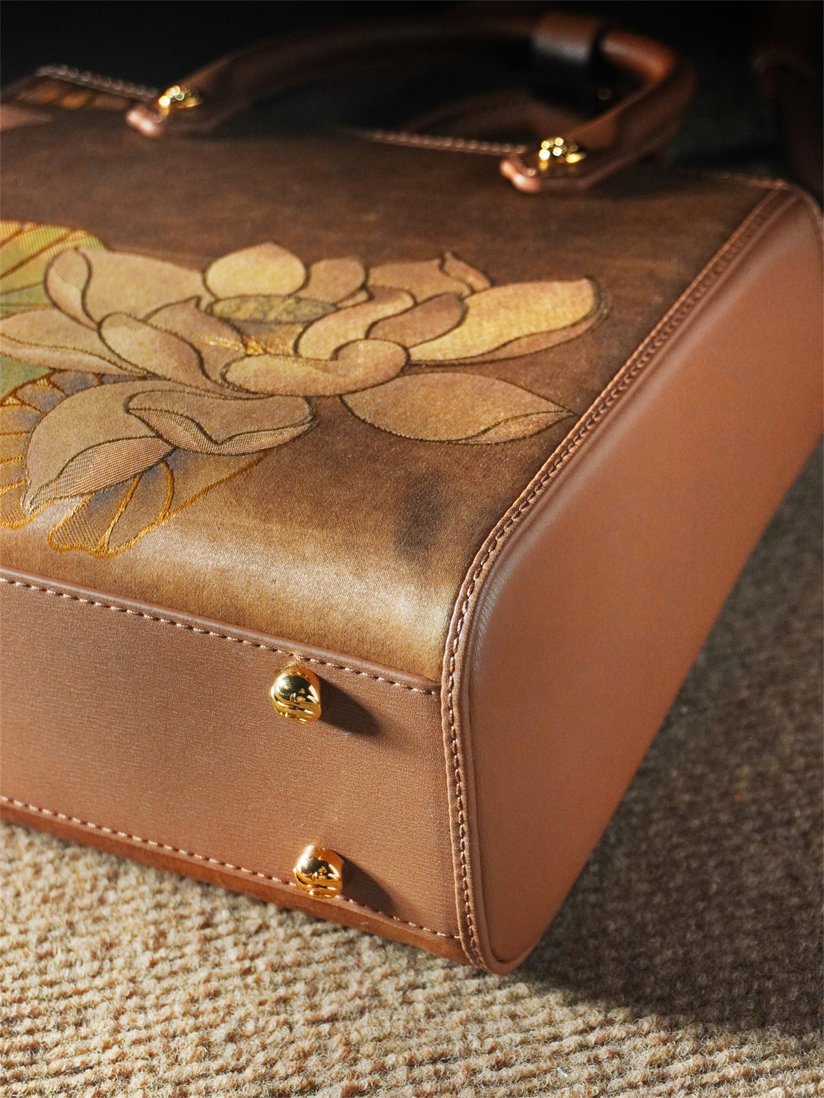 Xiangyunsha cowhide handbag, lotus crossbody commuter bag